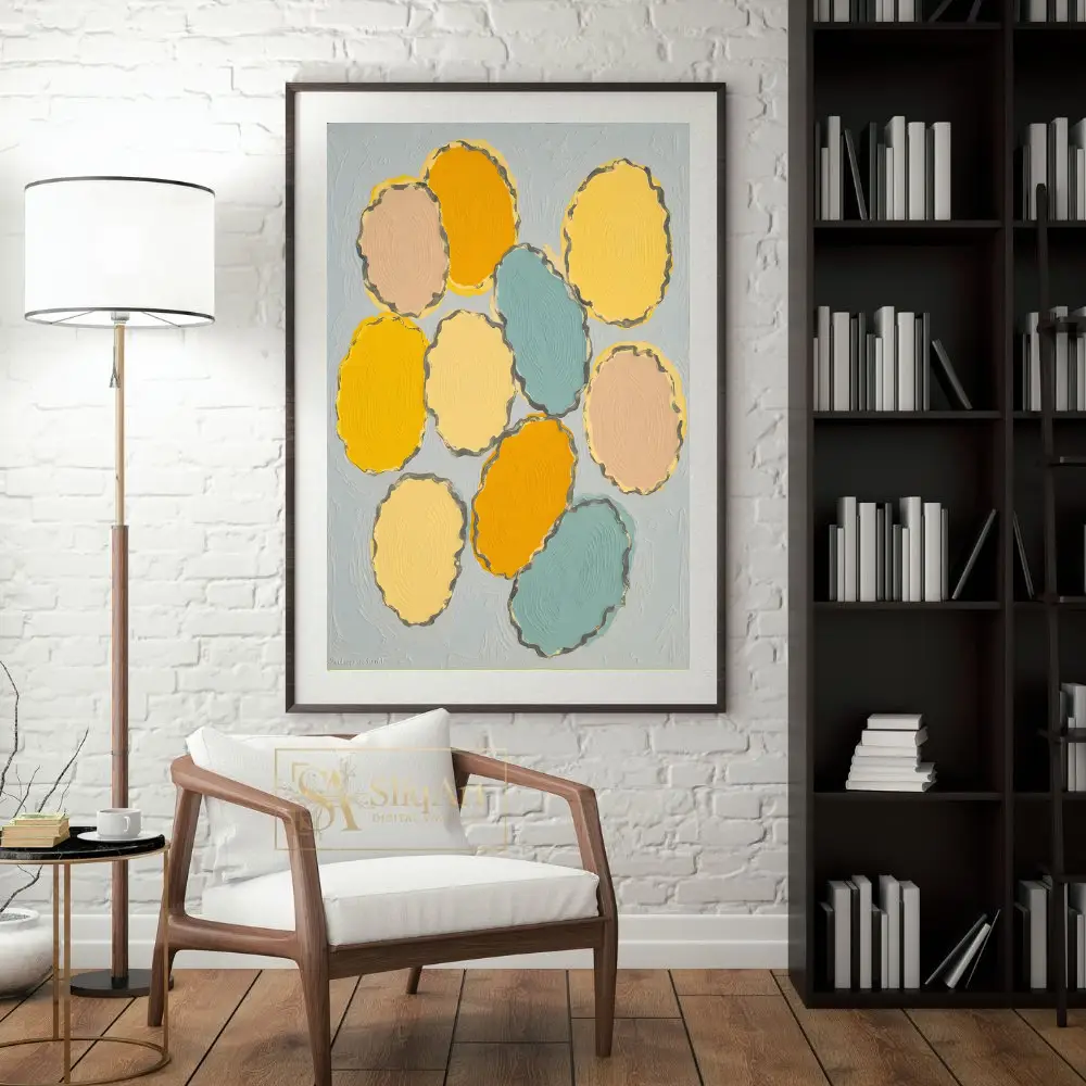 Be the first to review “Modern Textured Geode Abstract Canvas – Mustard, Teal & Grey”