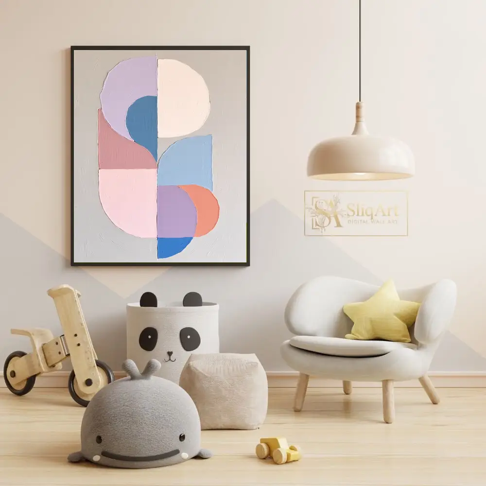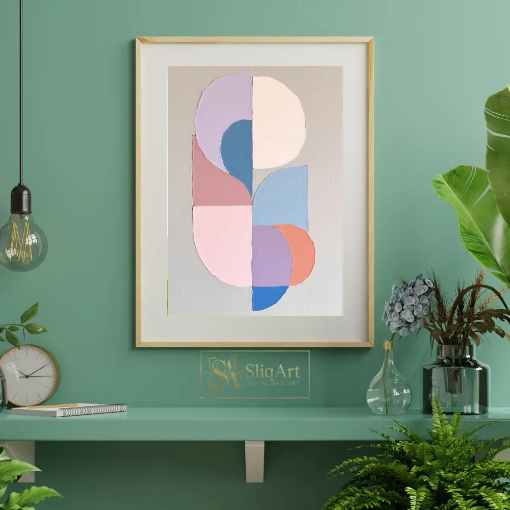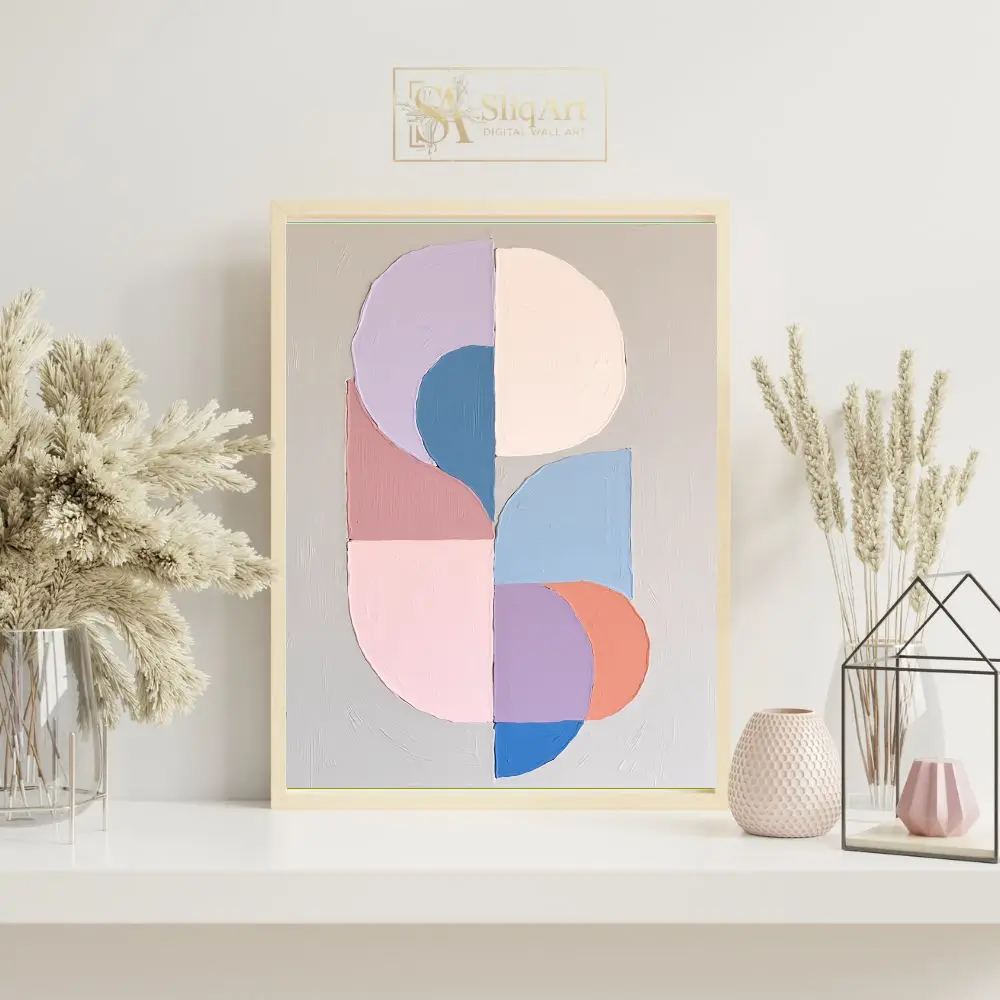 A soothing arrangement of interlocking pastel curves and geometric forms, brought to life with rich, impasto-style textures and a modern color palette.