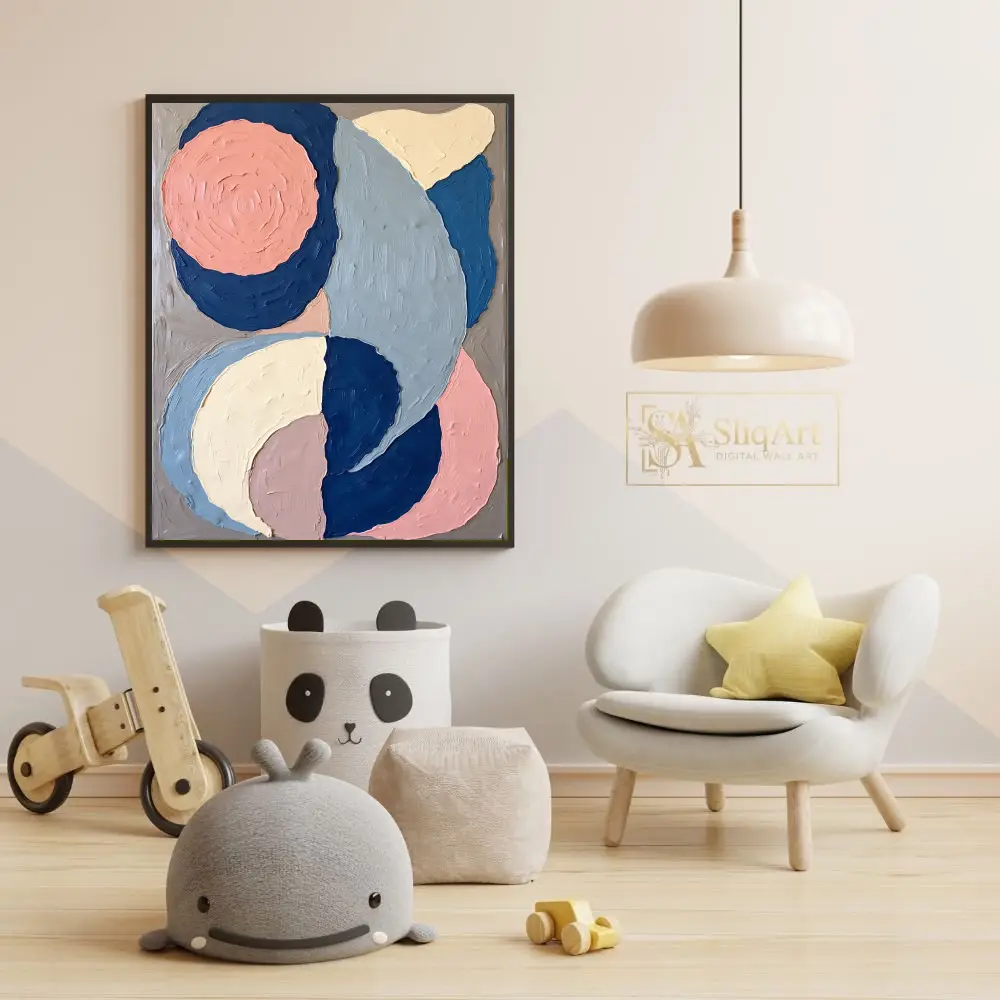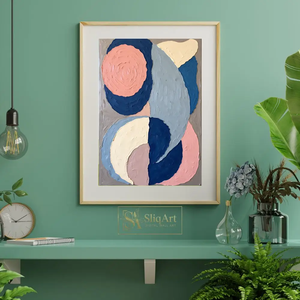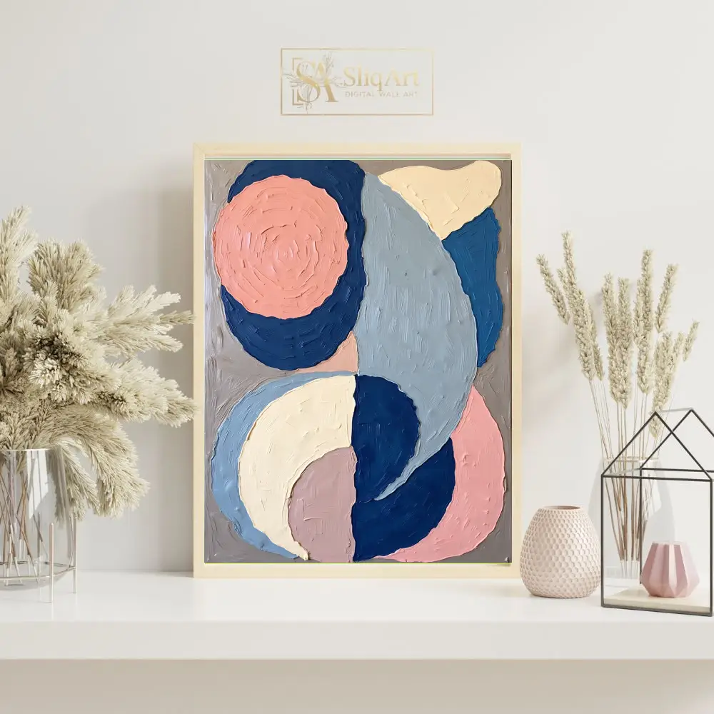 Textured Organic Shapes Abstract Wall Art – Navy, Blush, and Cream