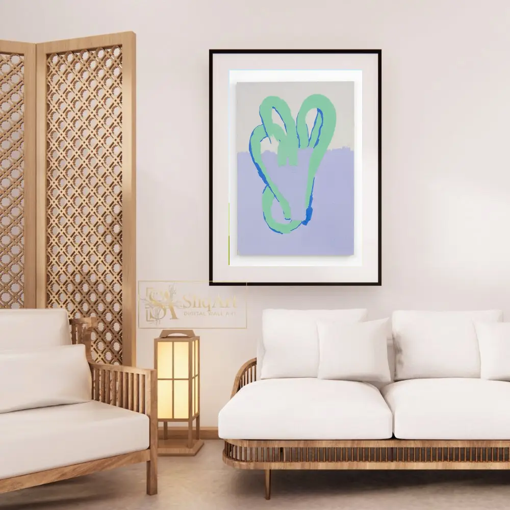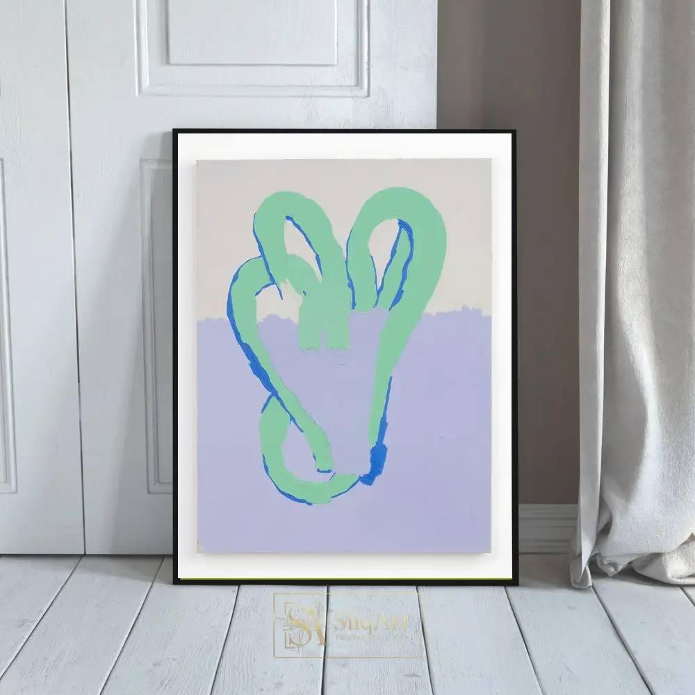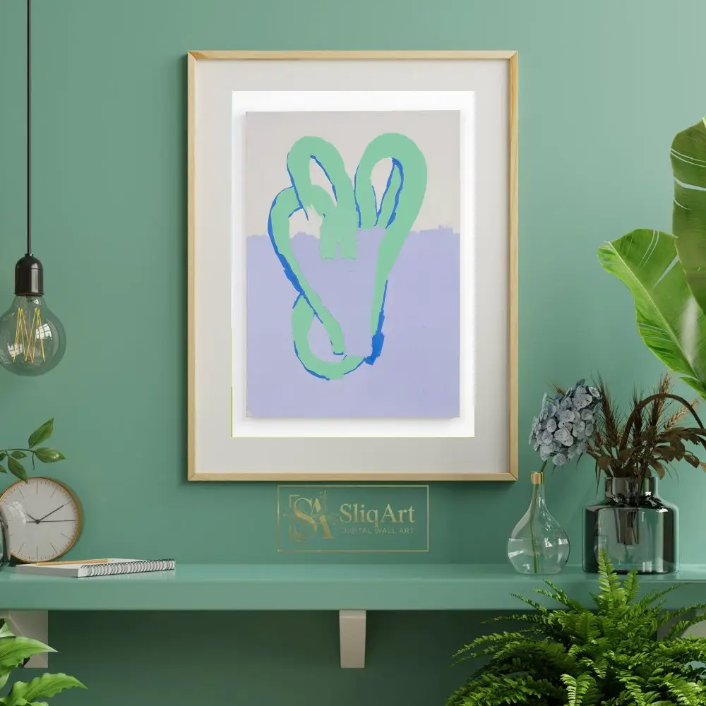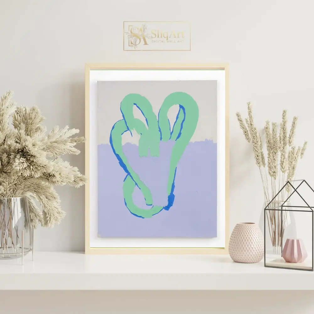 Enhance your contemporary space with this captivating abstract painting, characterized by its thick, expressive impasto texture. The artwork features a continuous, looping mint green form outlined with striking royal blue accents, creating a sense of fluid movement and tactile depth.