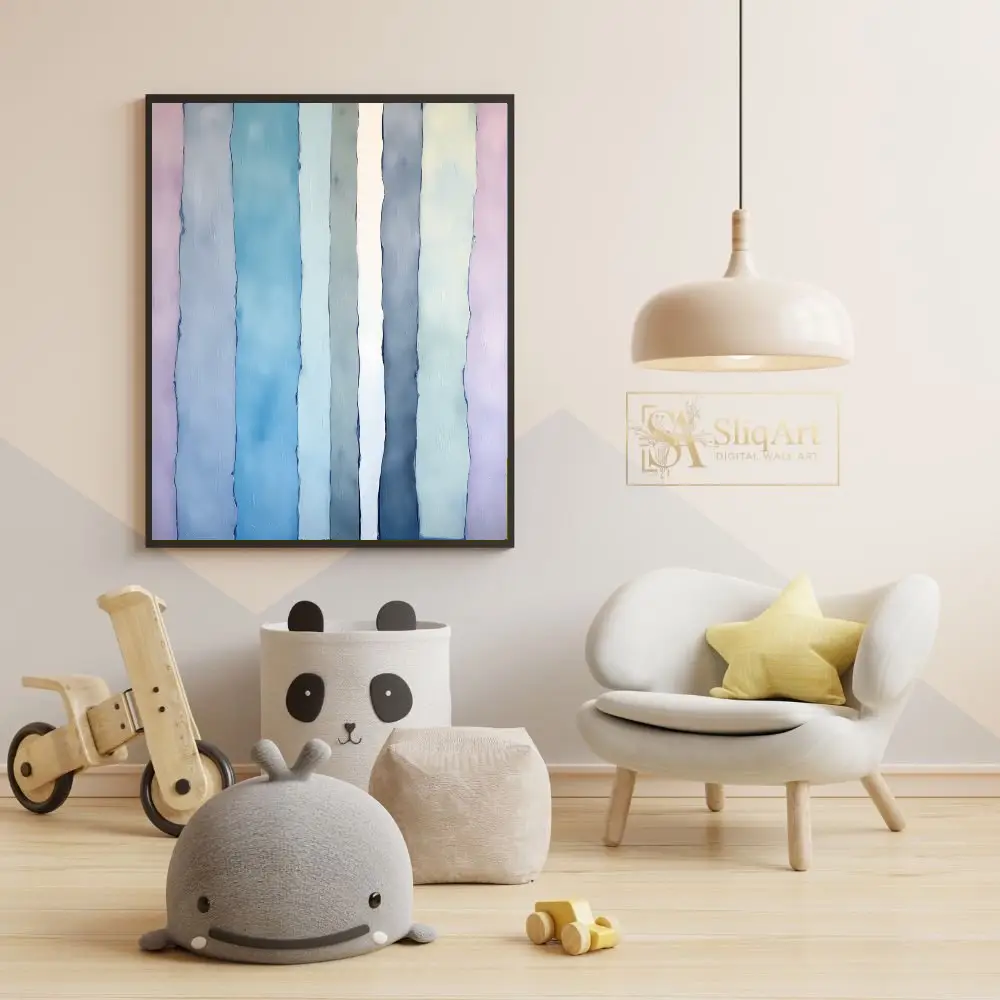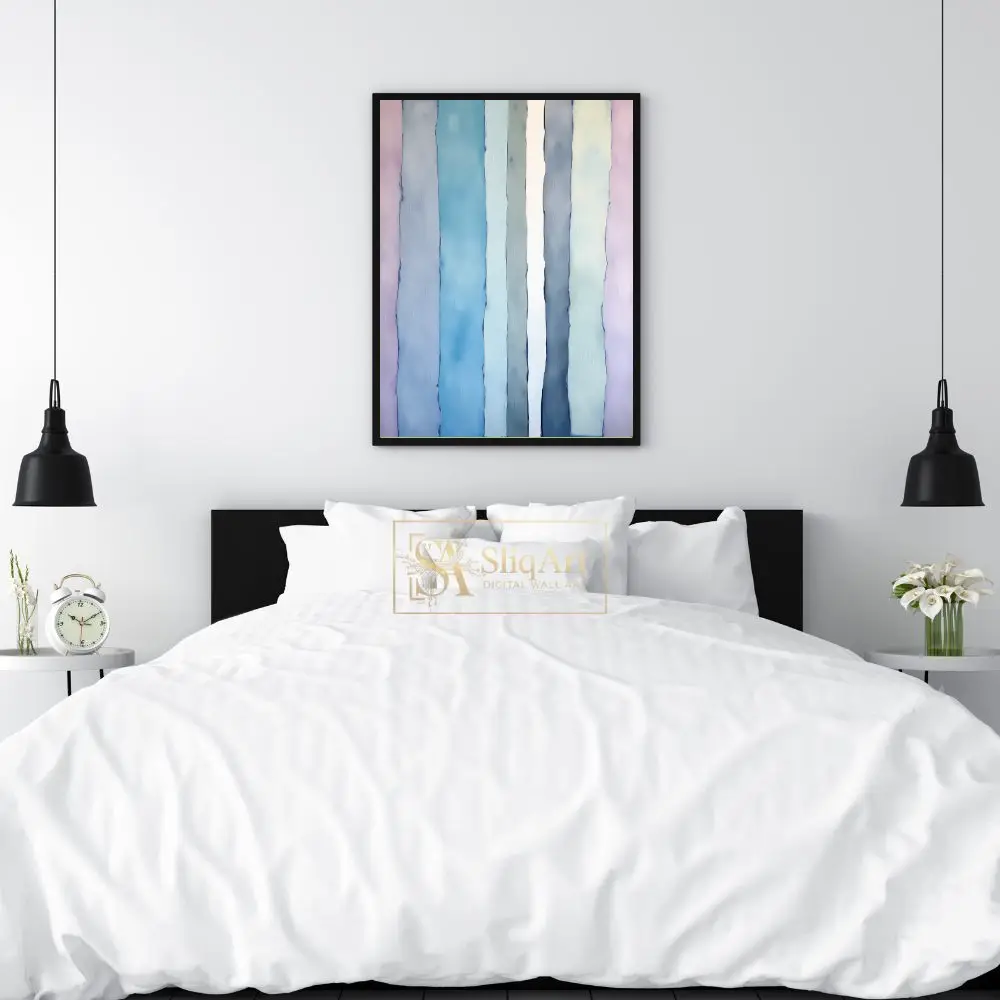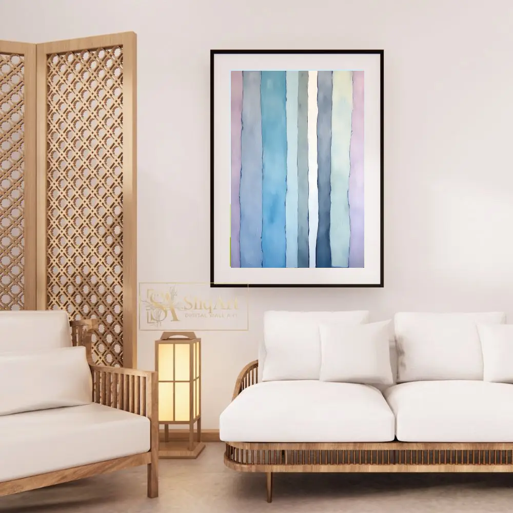 The painterly texture and irregular edges give the work a rhythmic, fluid movement that feels both contemporary and peaceful. Designed to bring a sense of verticality and calm to your walls, this artwork is a perfect balance of minimalist structure and expressive color blending.