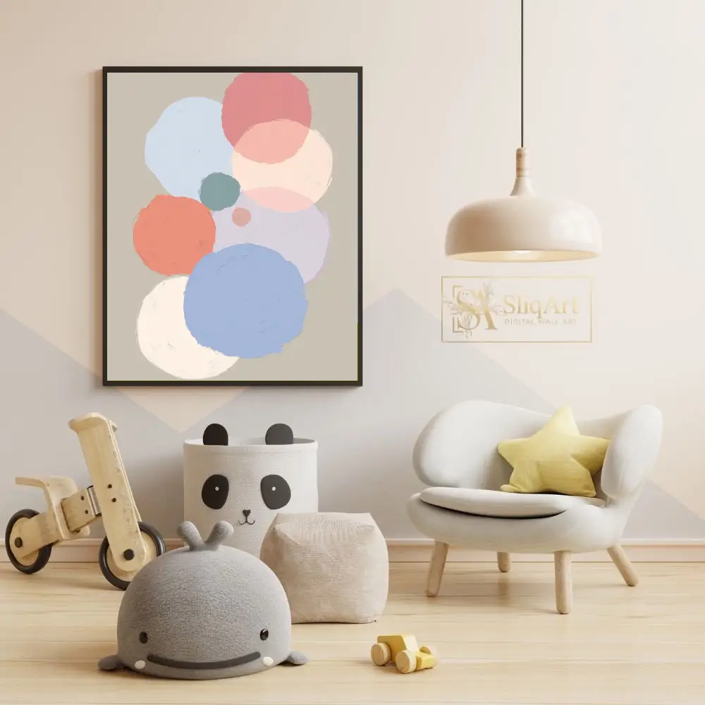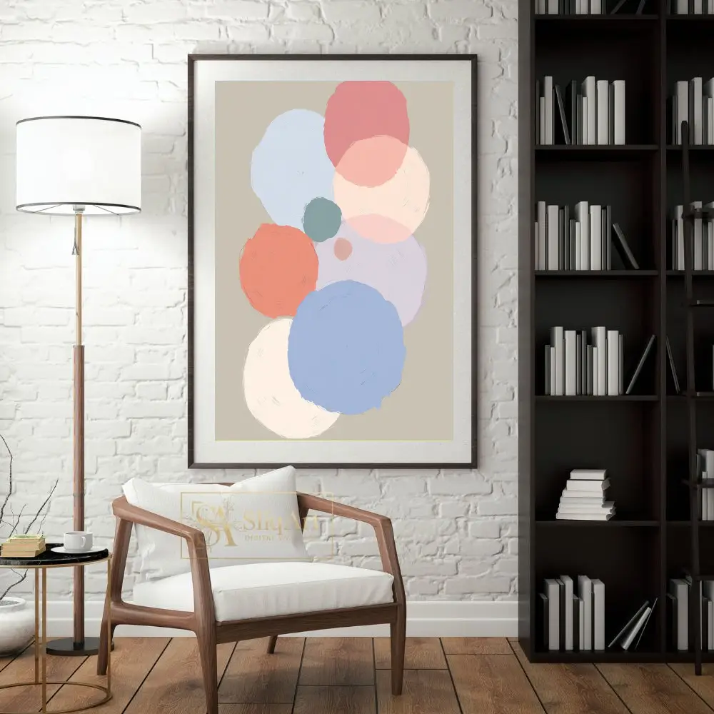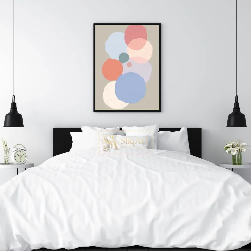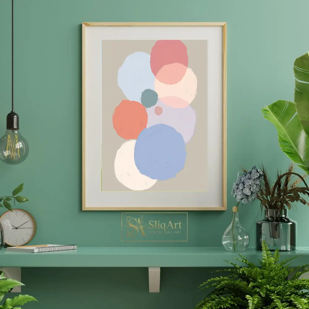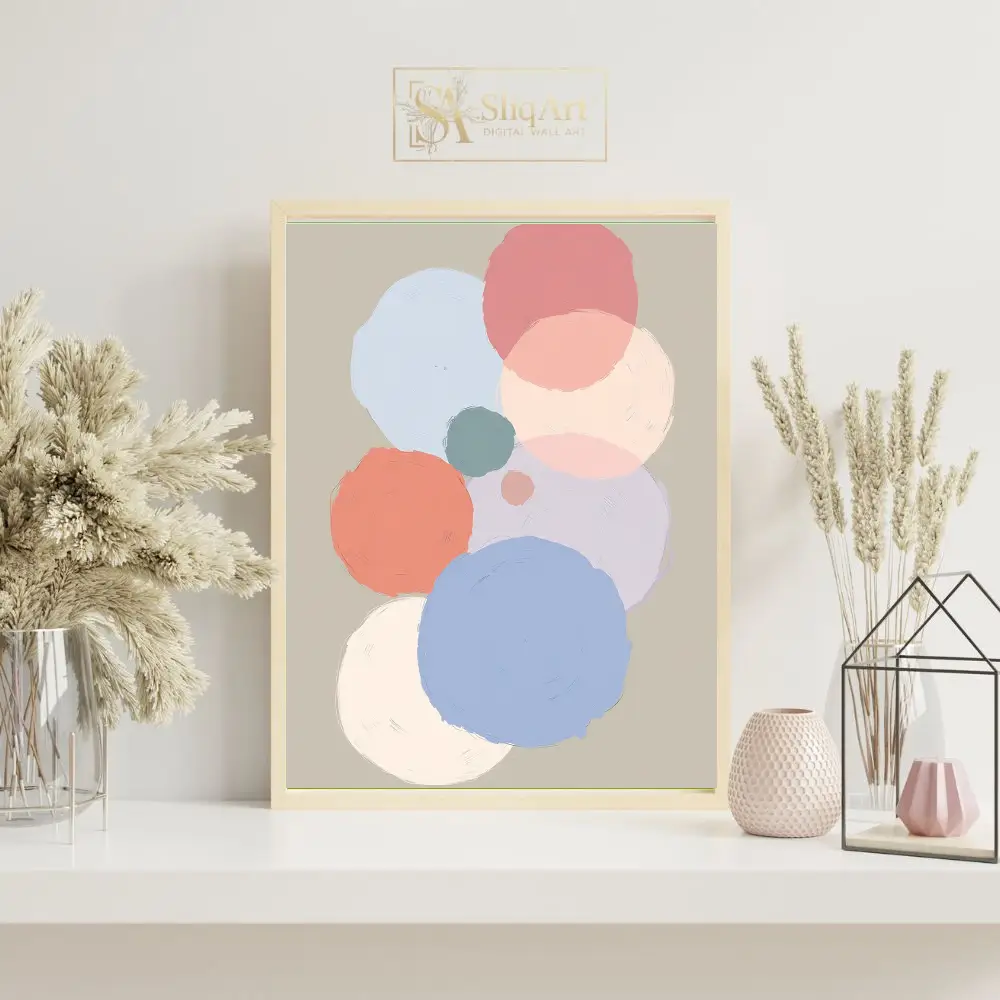 Enhance your interior decor with this sophisticated abstract art piece, featuring a series of overlapping circles in a gentle, muted palette.