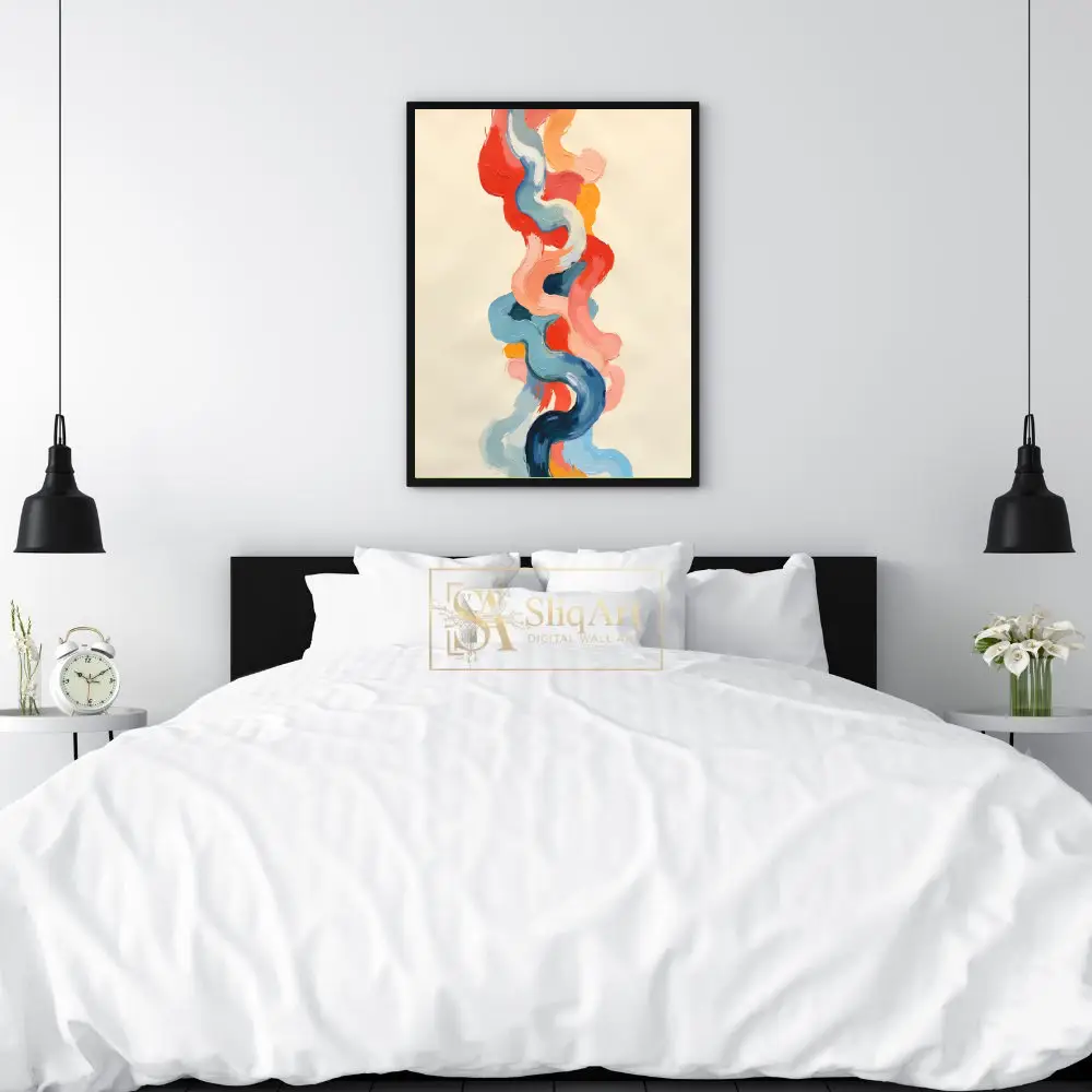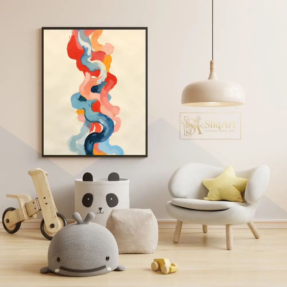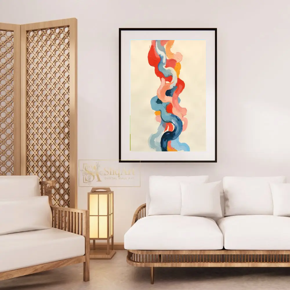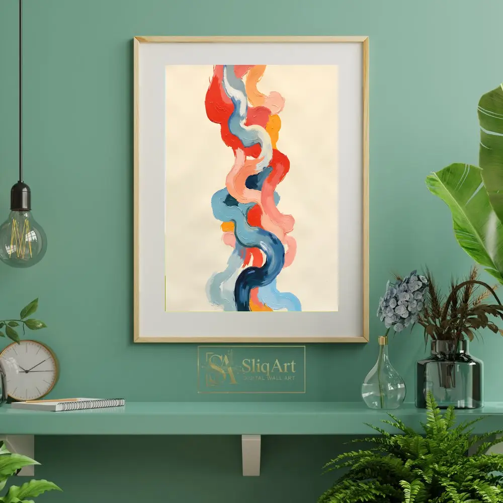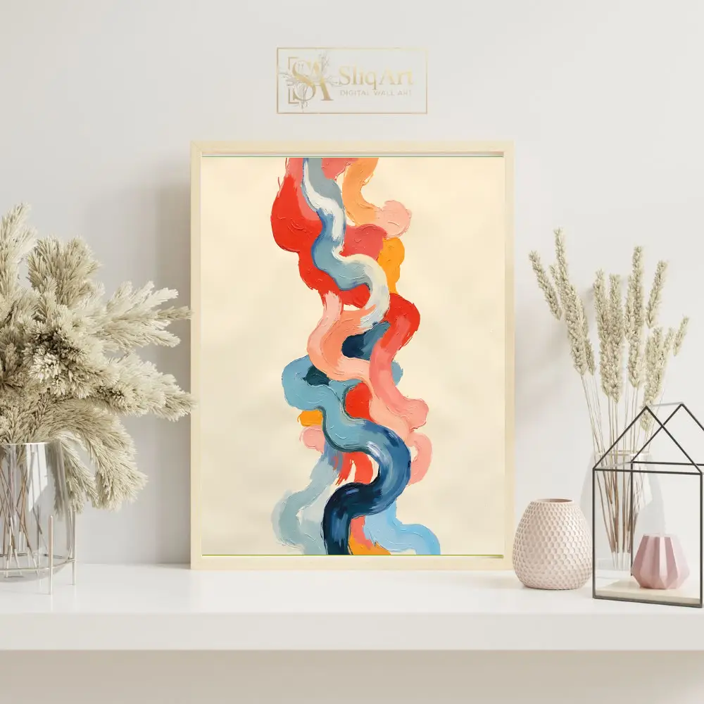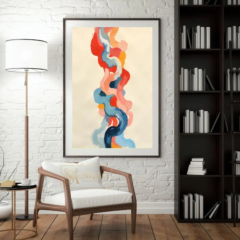 Elevate your interior with this captivating abstract piece that celebrates movement and texture. Featuring thick, impasto brushstrokes that create a tangible sense of depth, this artwork showcases a vertical cascade of intertwining ribbons.