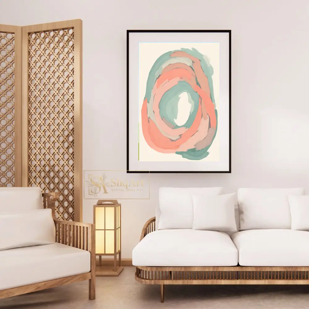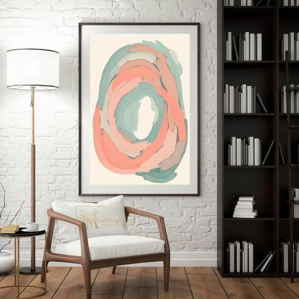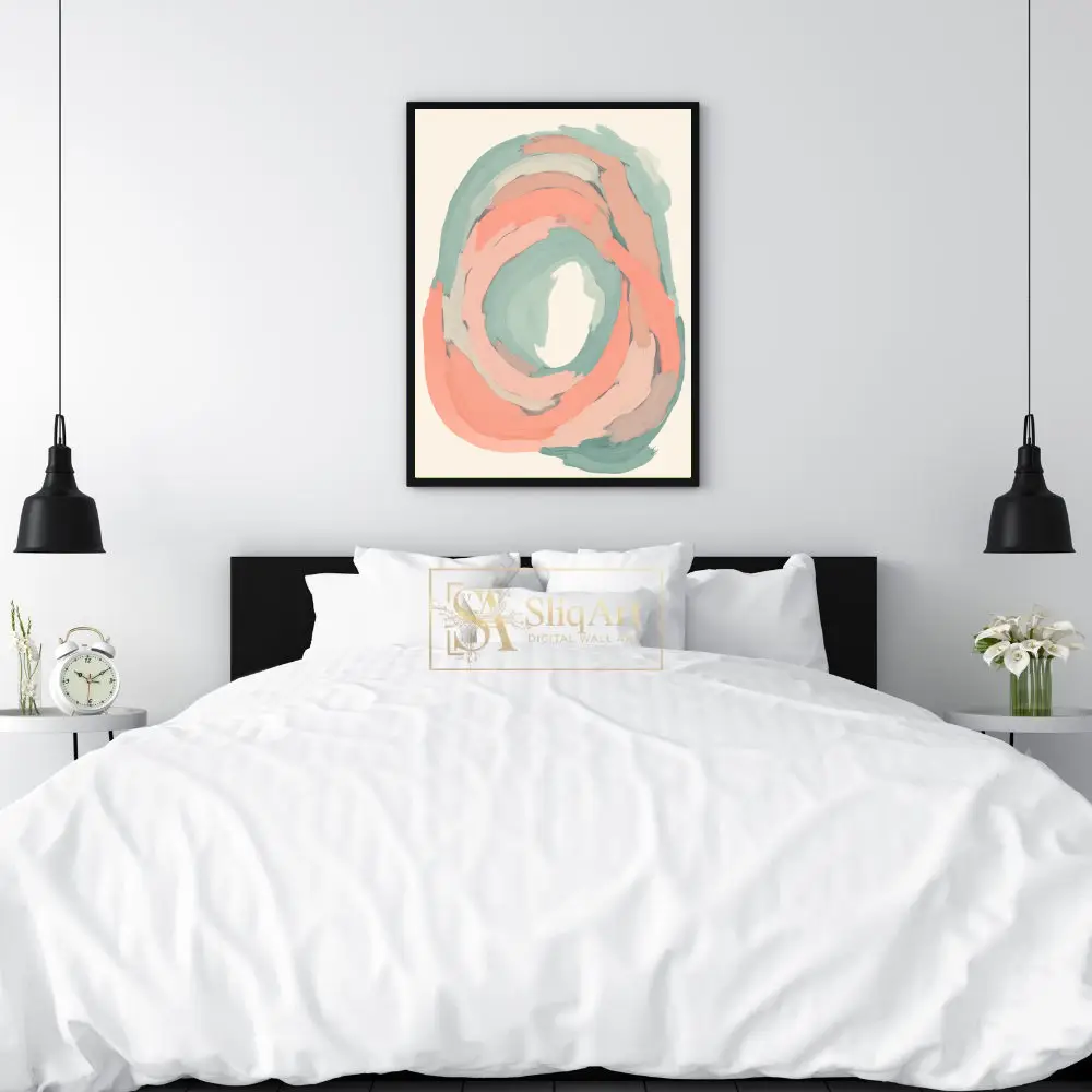 The minimalist composition against a warm off-white background makes it a versatile piece for modern interiors, bringing a sense of calm and rhythmic balance to any wall. Its gentle curves and soft pastel tones are designed to create a focal point that is both visually engaging and emotionally grounding.