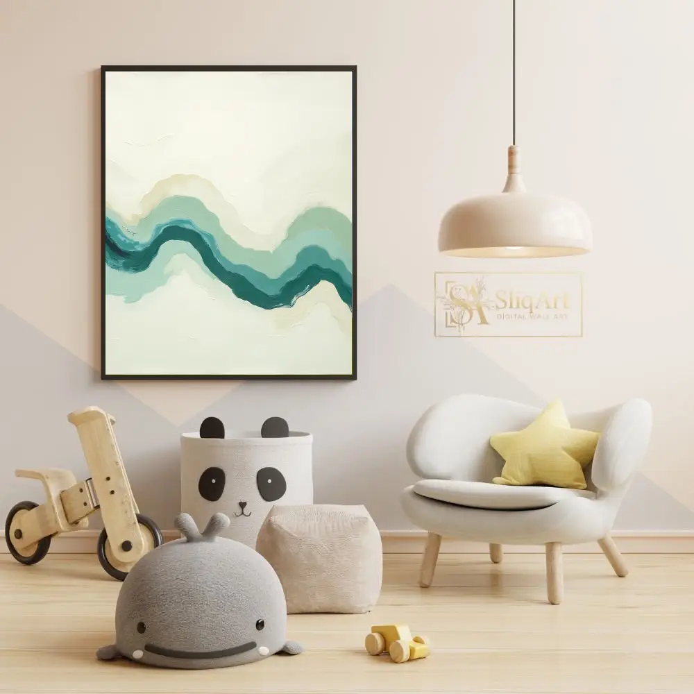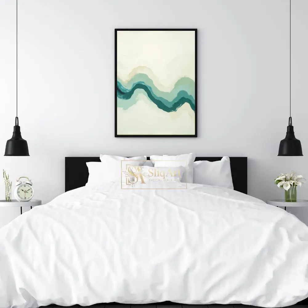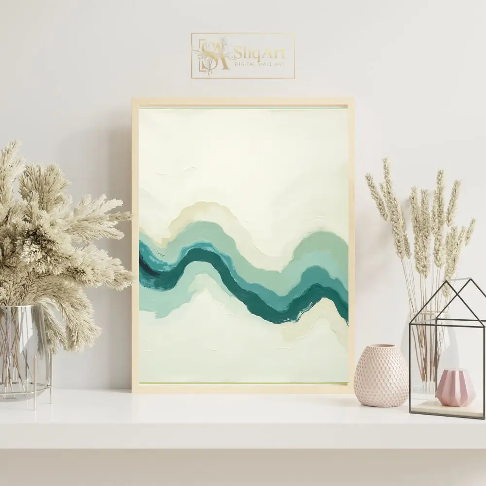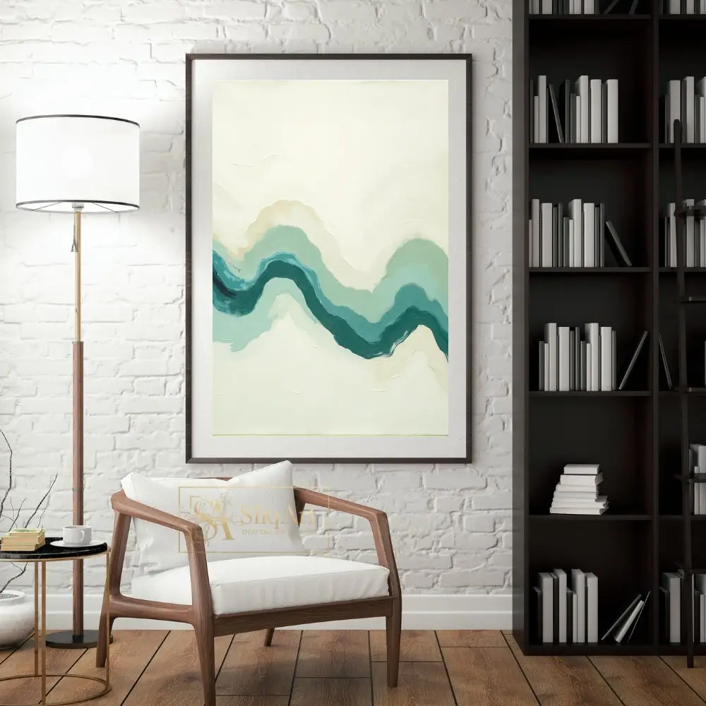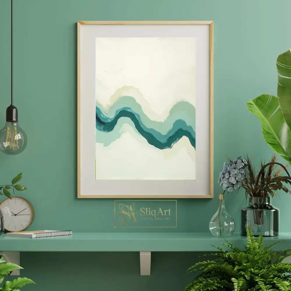 Be the first to review “Minimalist Teal Abstract Wave Wall Art – Textured Cream and Green Canvas”