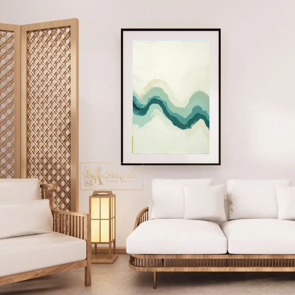 This minimalist piece brings a touch of nature-inspired modernism to any wall, blending beautifully with contemporary, Scandinavian, or coastal decor styles. The soft palette and rhythmic lines promote a peaceful atmosphere, making it a sophisticated addition to a refined home setting.