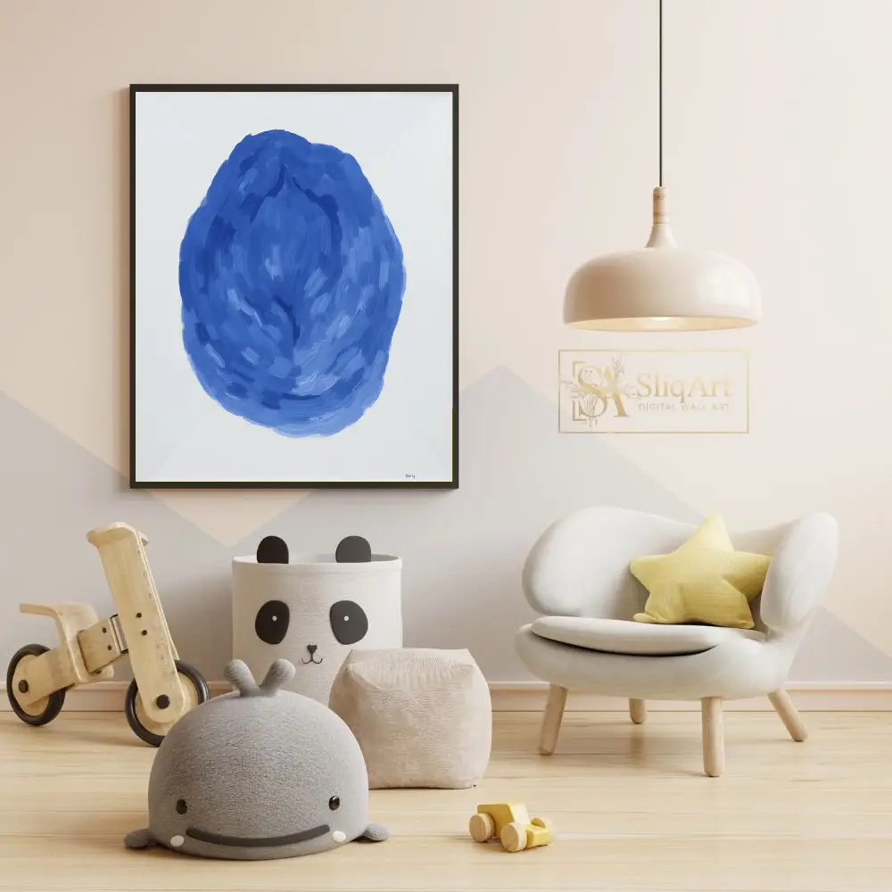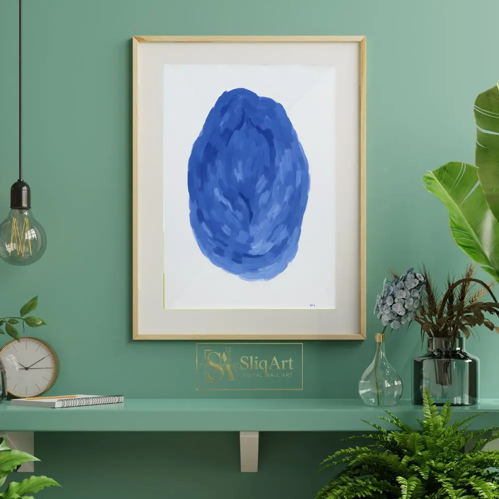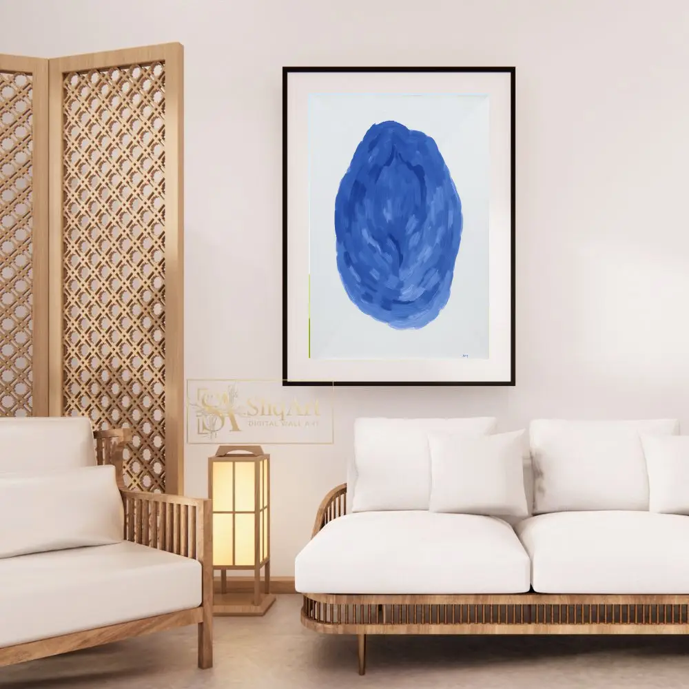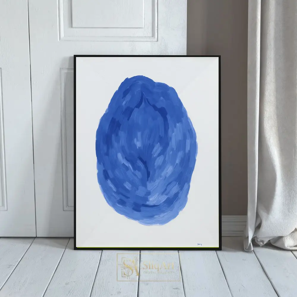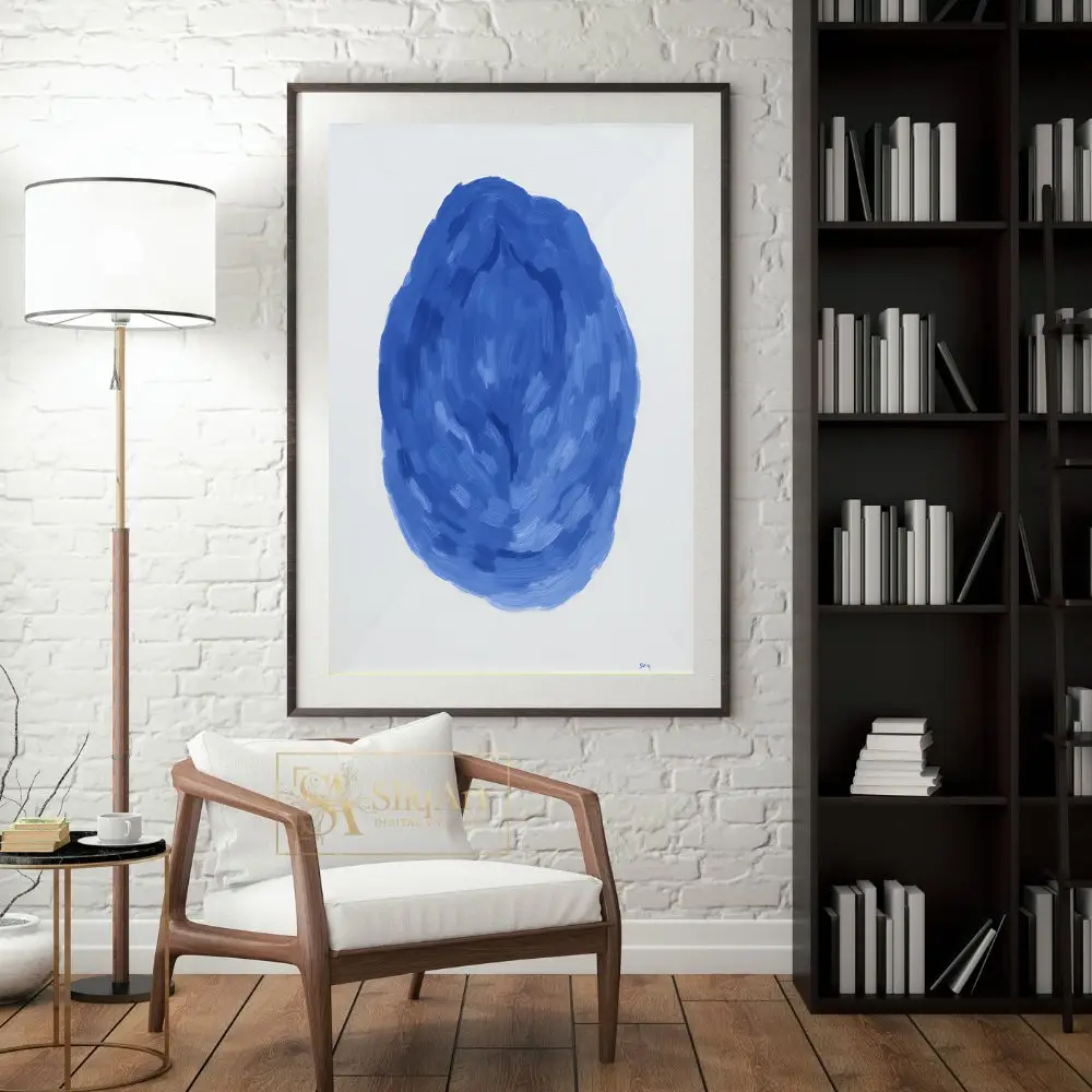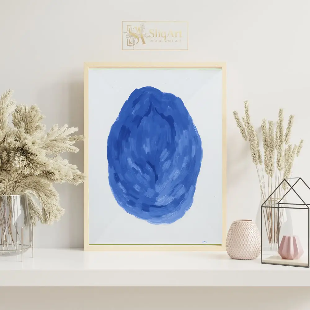 Be the first to review “Modern Blue Abstract Brushstroke Wall Art – Minimalist Oval Canvas Print”