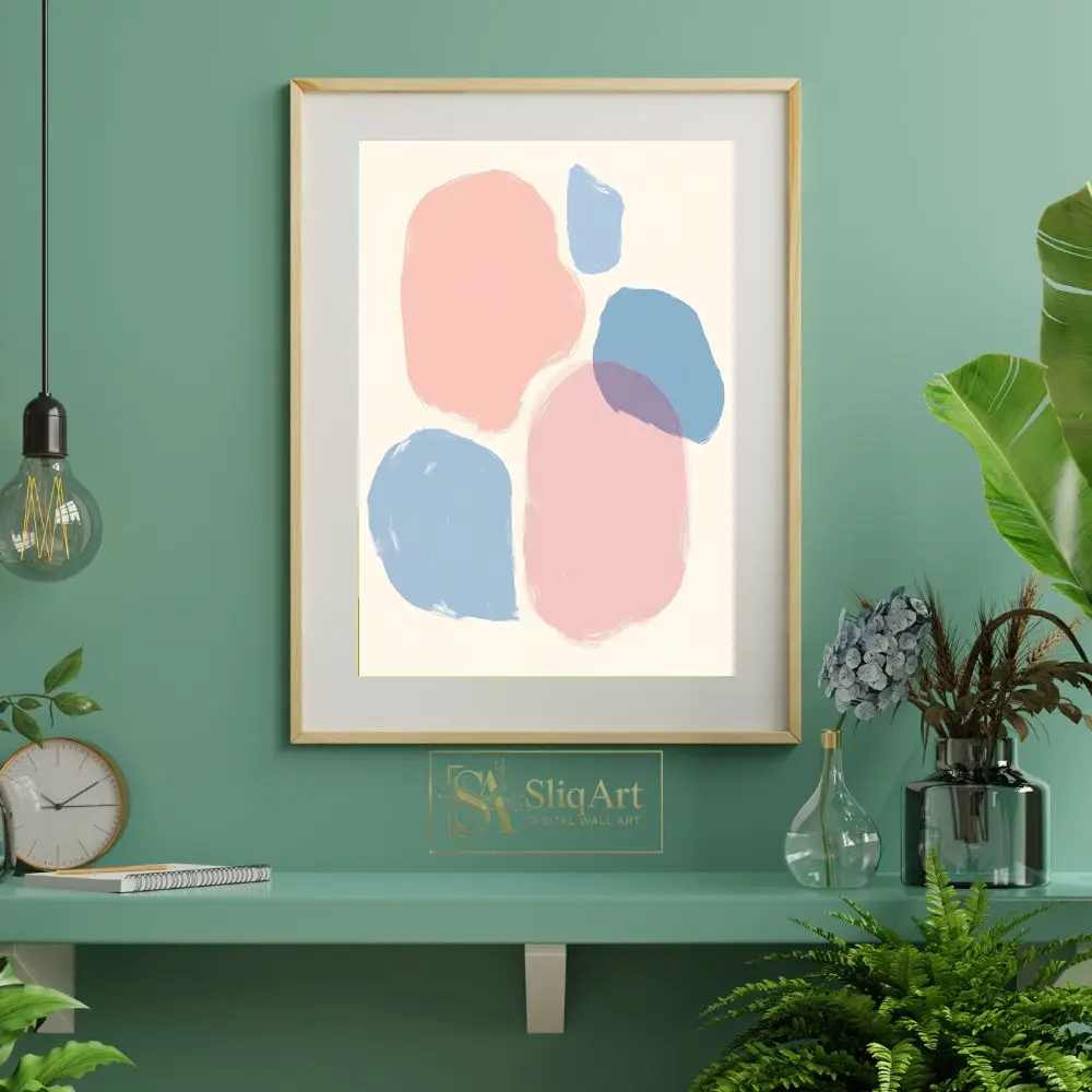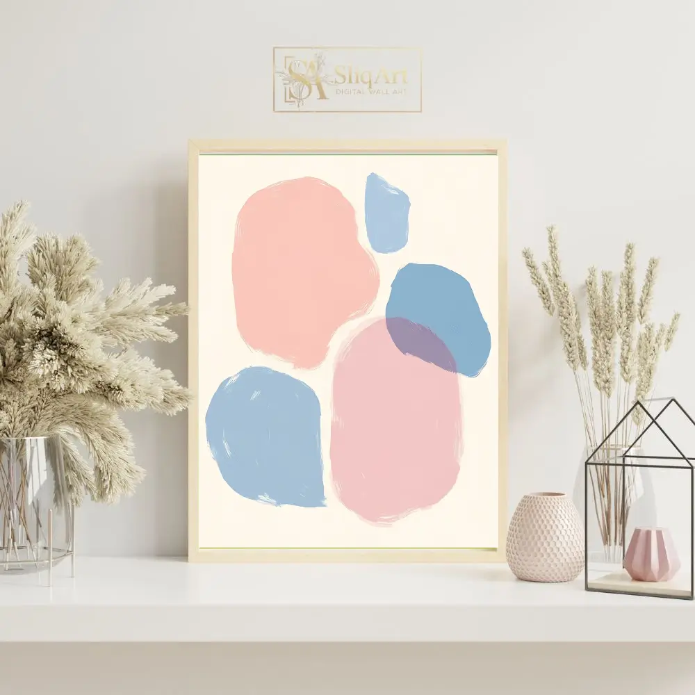Be the first to review “Minimalist Pastel Abstract Art – Blush Pink & Powder Blue Shapes”