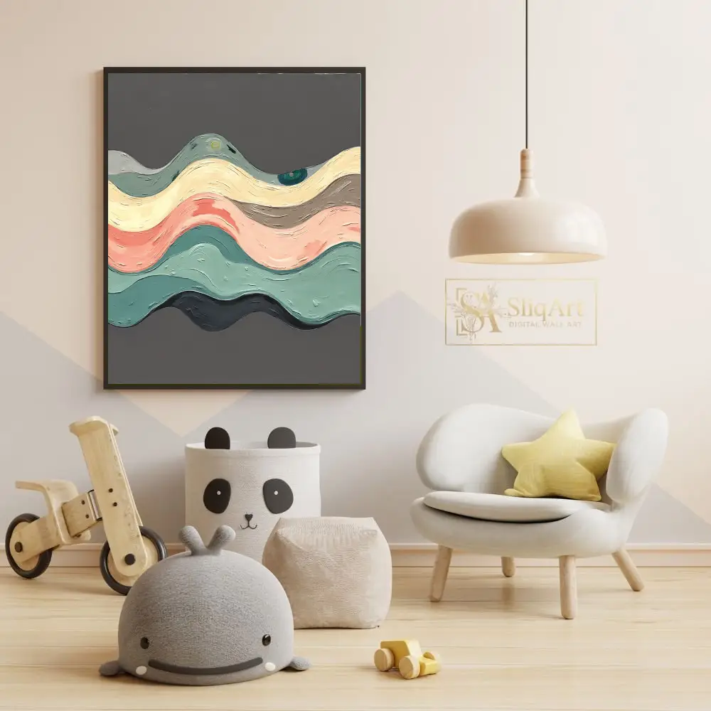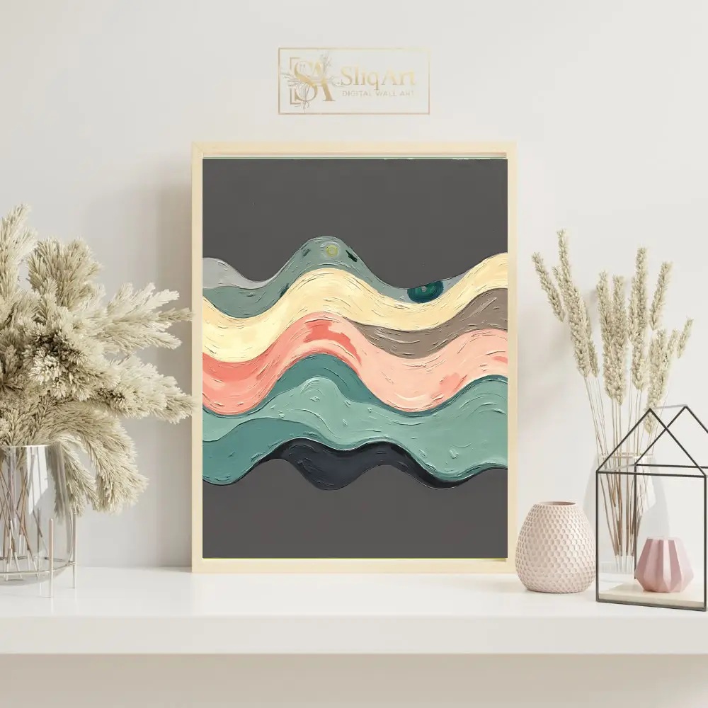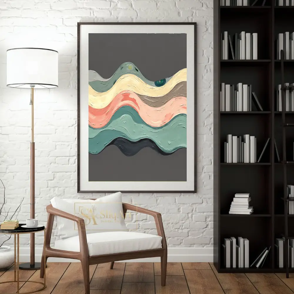 Transform your walls with this captivating abstract piece, characterized by its heavy impasto texture and organic, undulating waves.