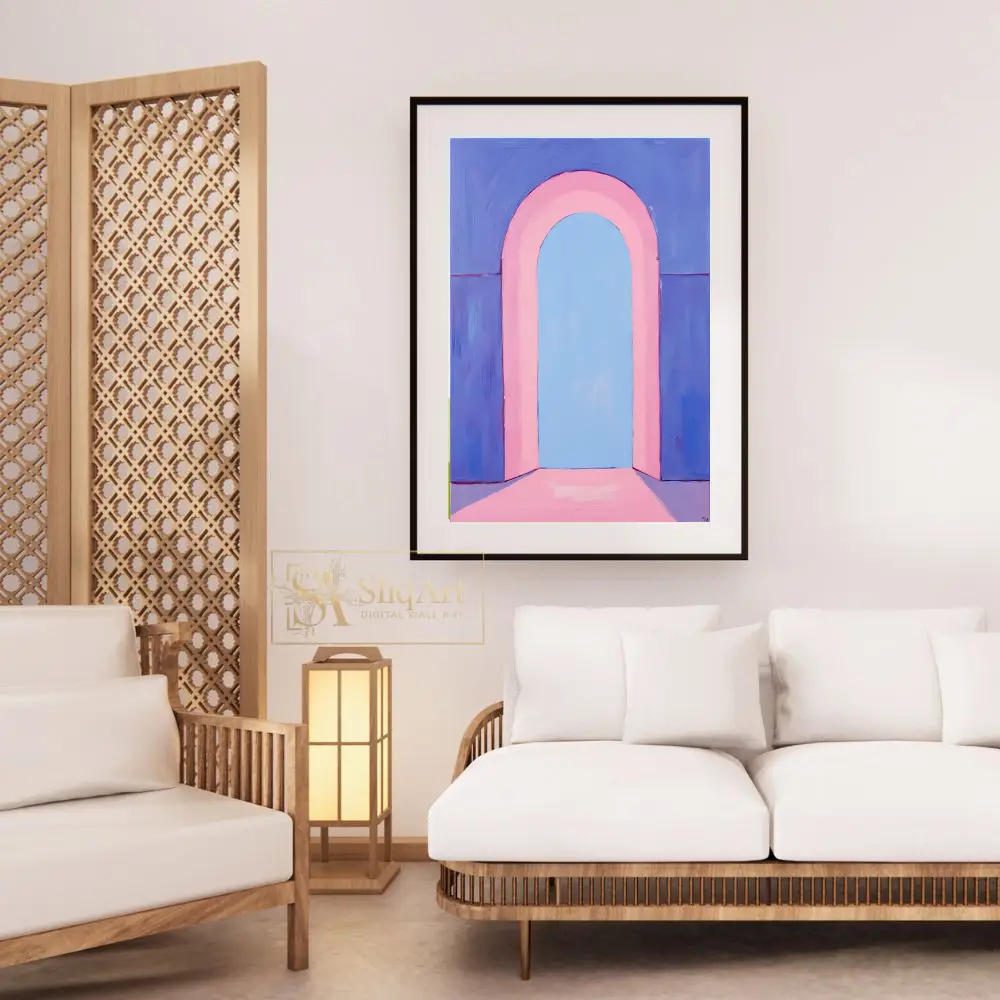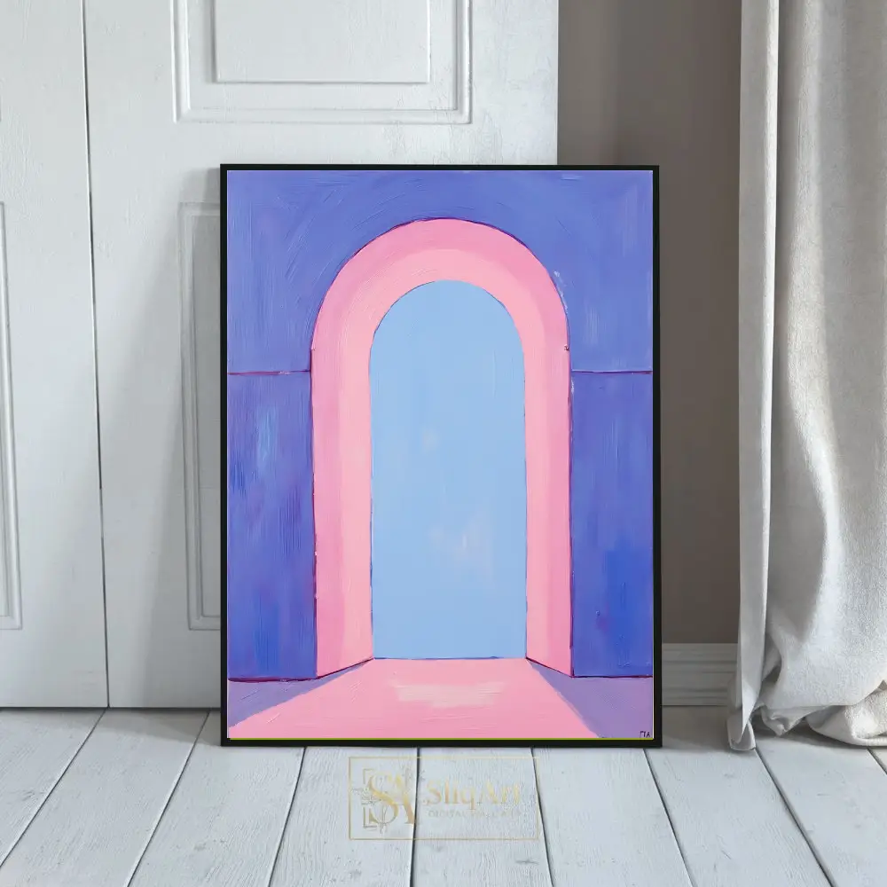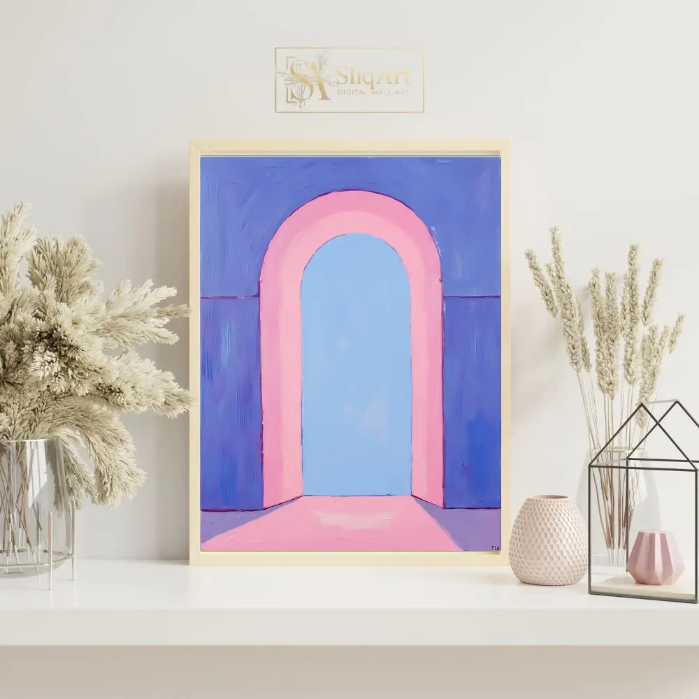 This captivating piece of minimalist art features a soft, pastel-toned arched portal that invites the viewer into a serene, ethereal space.