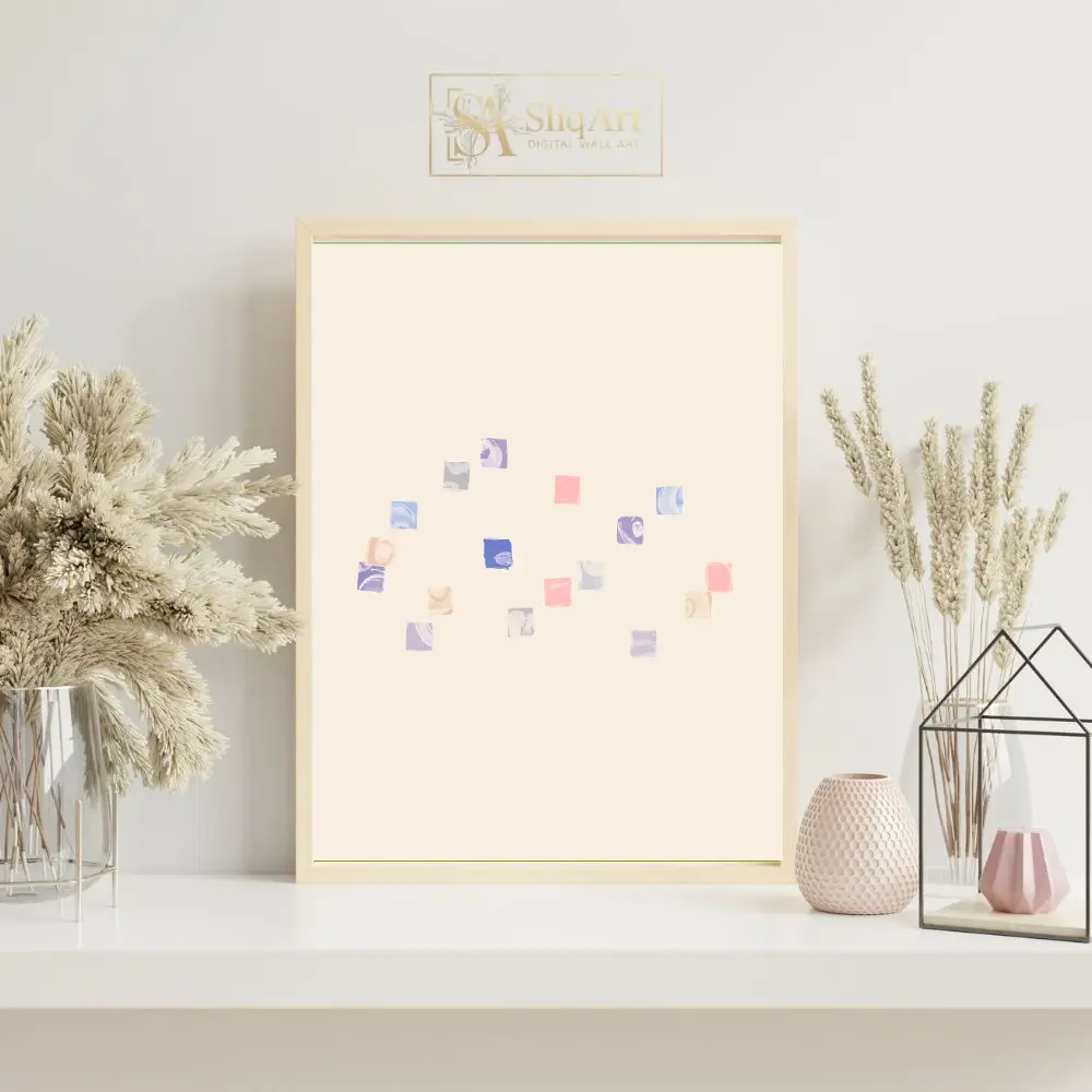 Infuse your home with a sense of peace and modern elegance. Our Minimalist Pastel Abstract Square Art features a delicate composition of textured squares in soft lavender, blush, and blue tones.