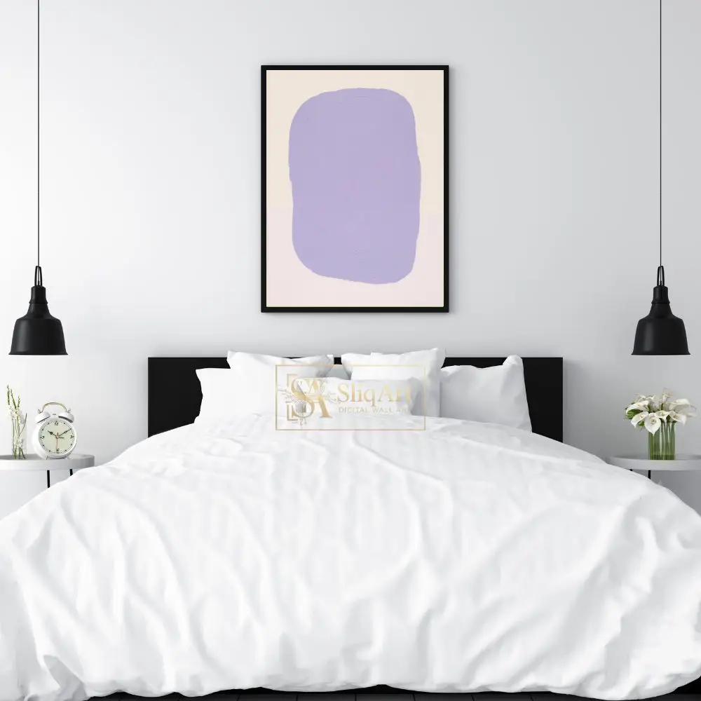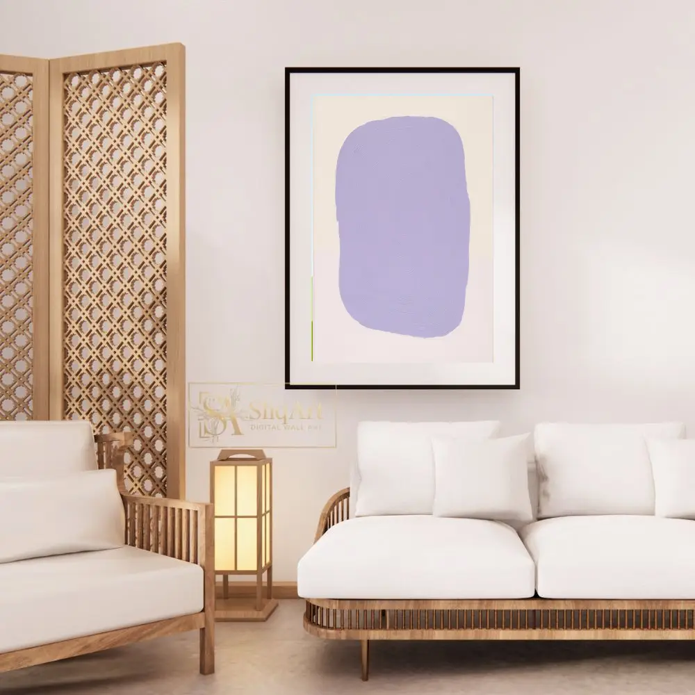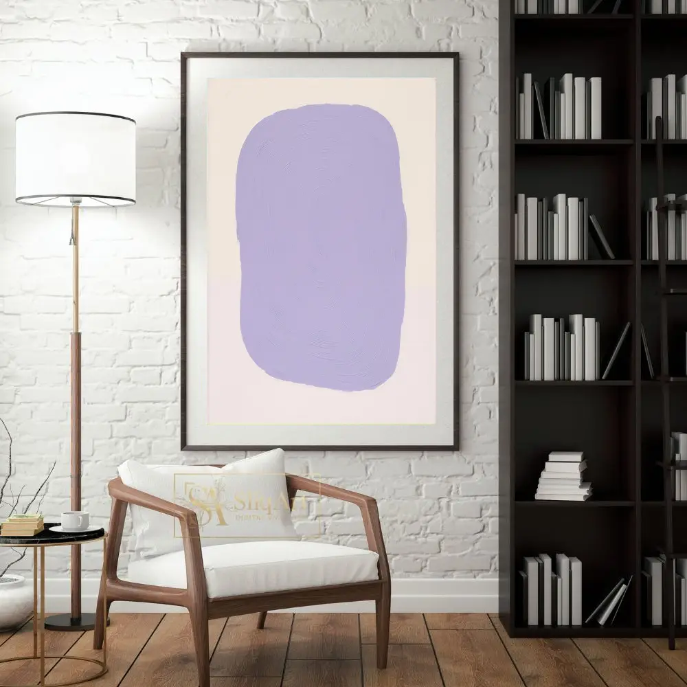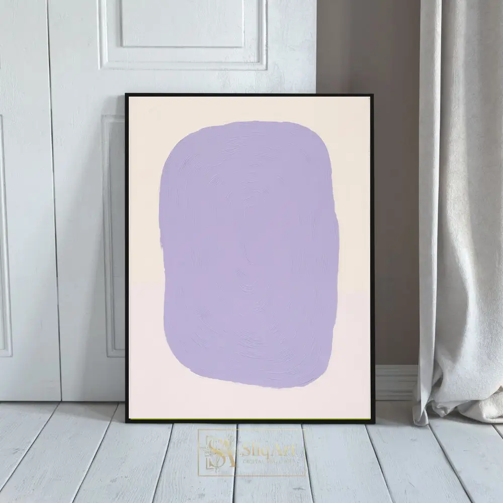 Elevate your interior with this serene minimalist abstract painting. Featuring a bold yet soothing lavender organic shape centered on a creamy off-white backdrop, this piece emphasizes texture through its concentric, impasto-style brushwork.
