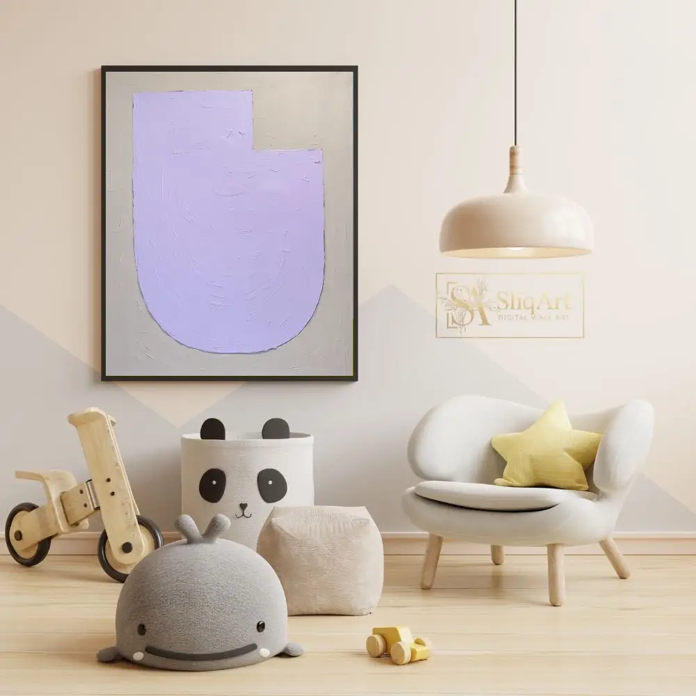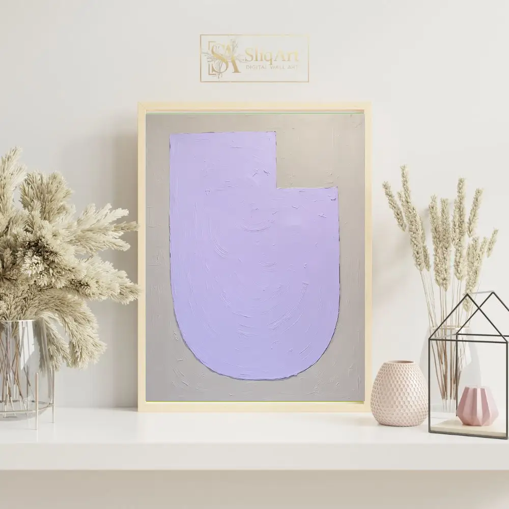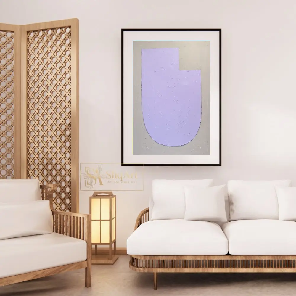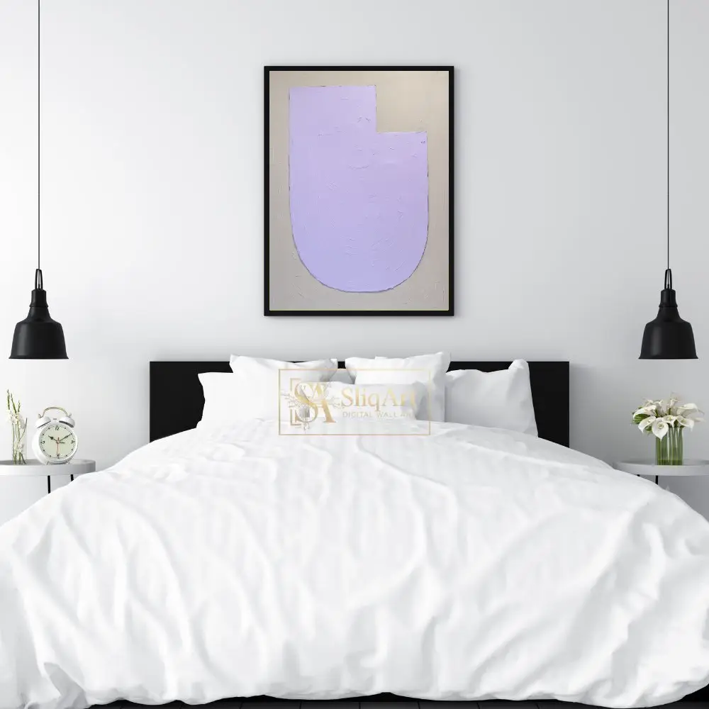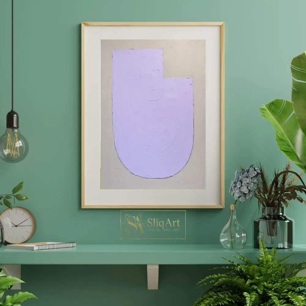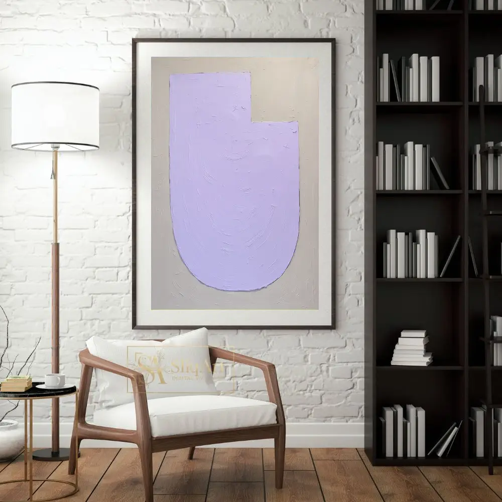 Elevate your interior with this captivating minimalist abstract piece featuring a bold, textured lavender silhouette. The heavy impasto technique creates a dynamic surface, with swirling brushstrokes that catch the light and add depth to the serene purple hue.