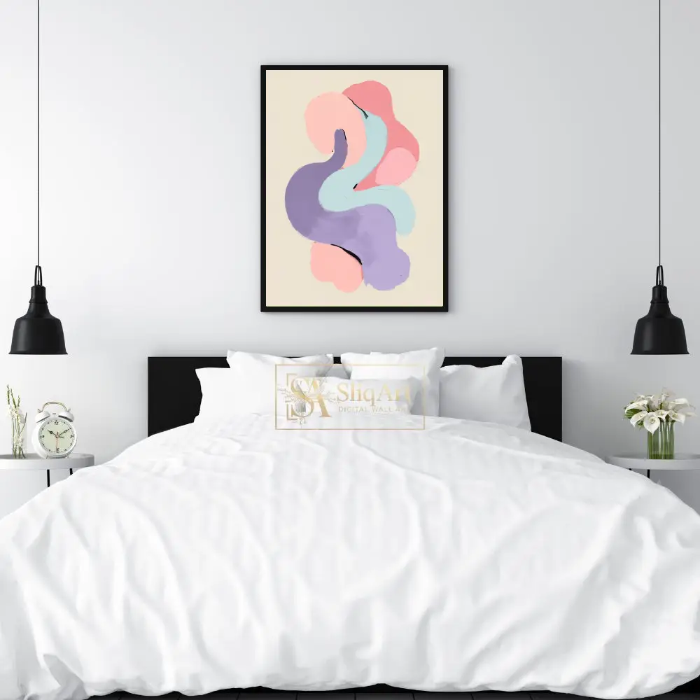 The organic, serpentine shapes weave together seamlessly against a warm cream background, creating a sense of gentle movement and modern elegance. The visible texture of the strokes adds a tactile dimension, making it a sophisticated centerpiece for any contemporary space looking for a touch of soft color and artistic depth.