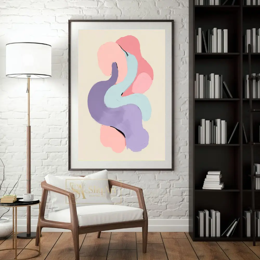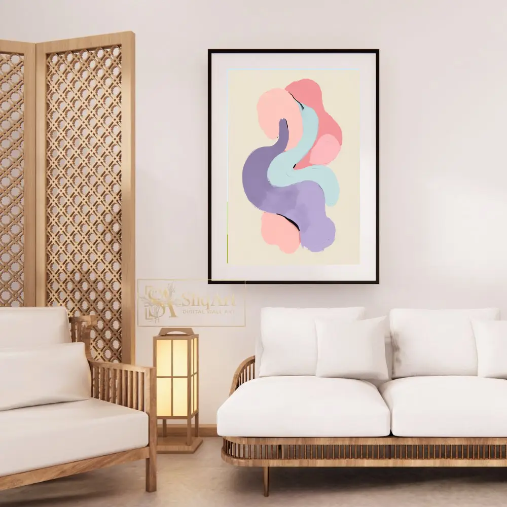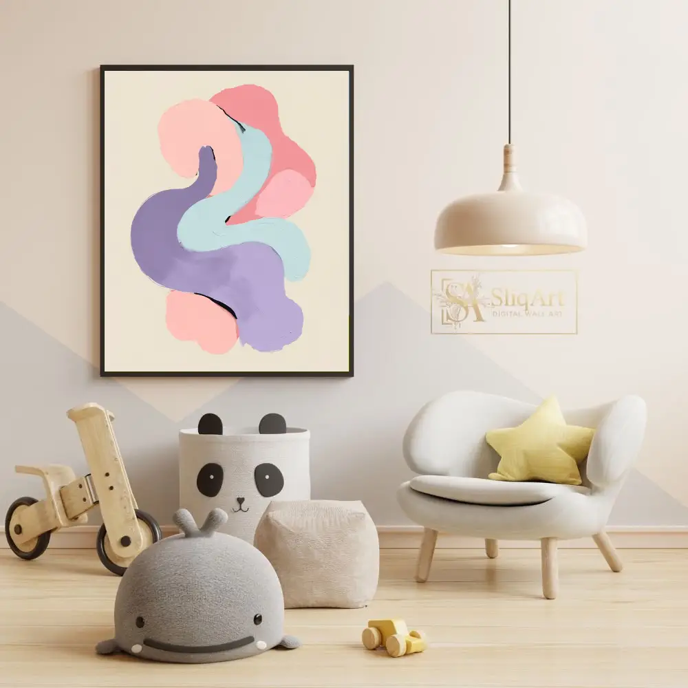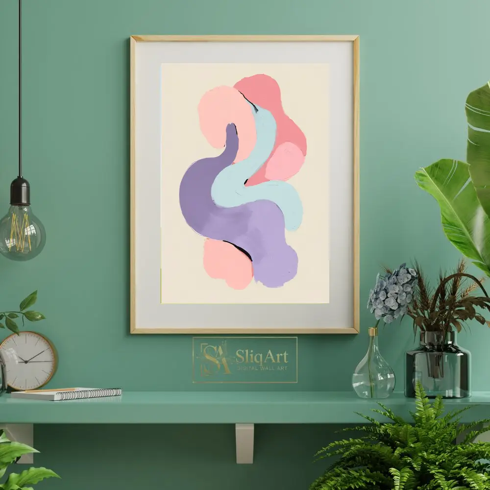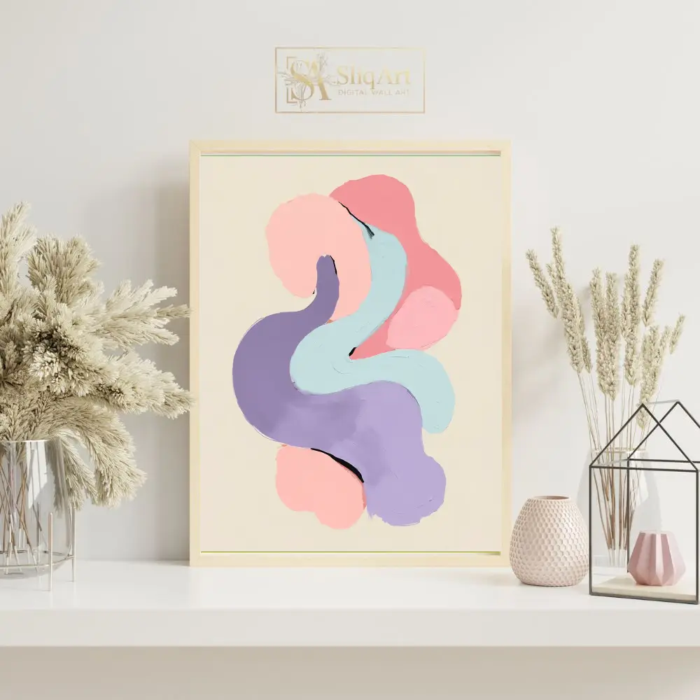Experience the calming rhythm of ‘Serene Pastel Fluidity,’ an abstract digital painting that celebrates texture and form. This piece features thick, impasto-style brushstrokes in a harmonious palette of soft pink, lavender, and mint blue.