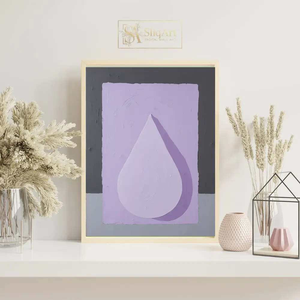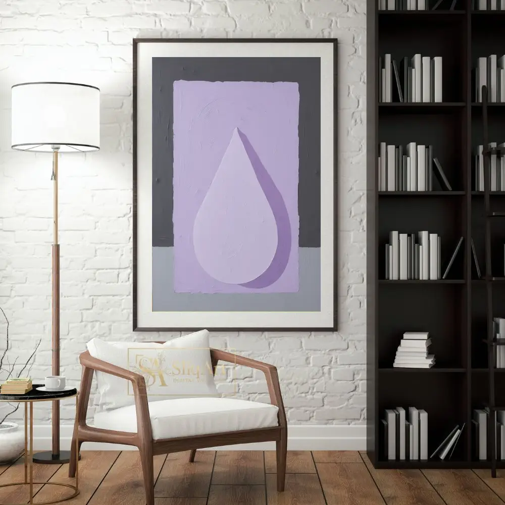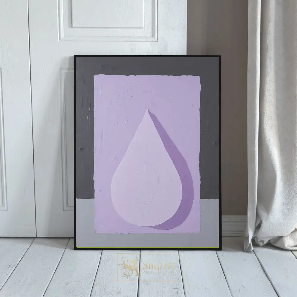 Immerse yourself in the serene simplicity of this minimalist abstract masterpiece. Centered within the composition is a beautifully rendered teardrop in a calming lavender tone, brought to life through thick, expressive impasto brushstrokes.