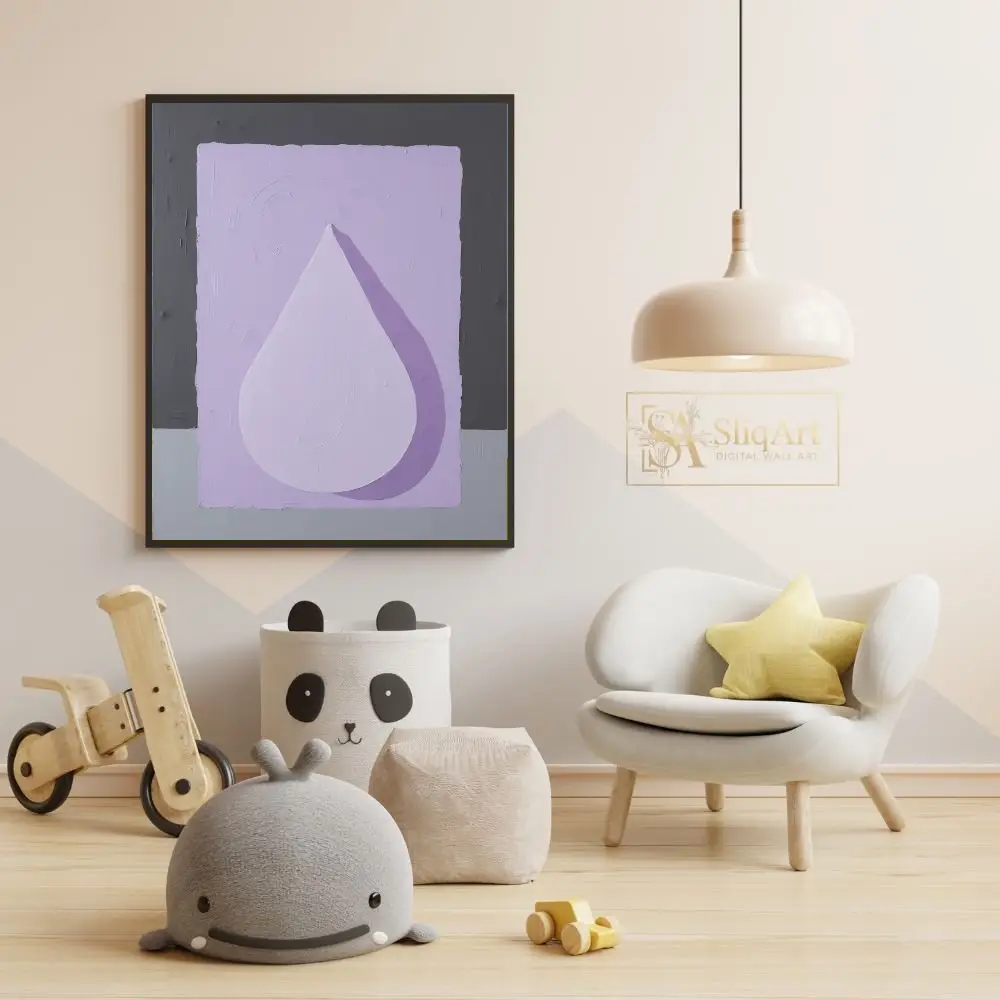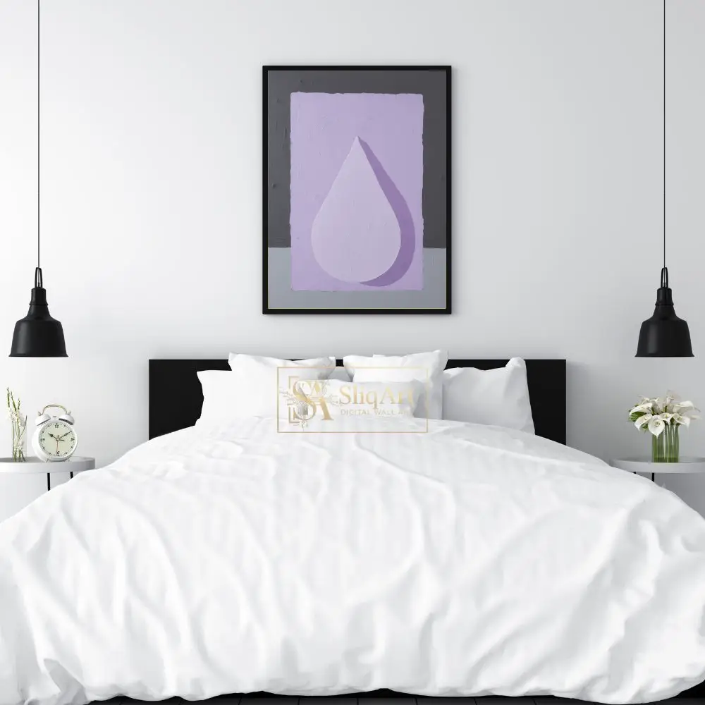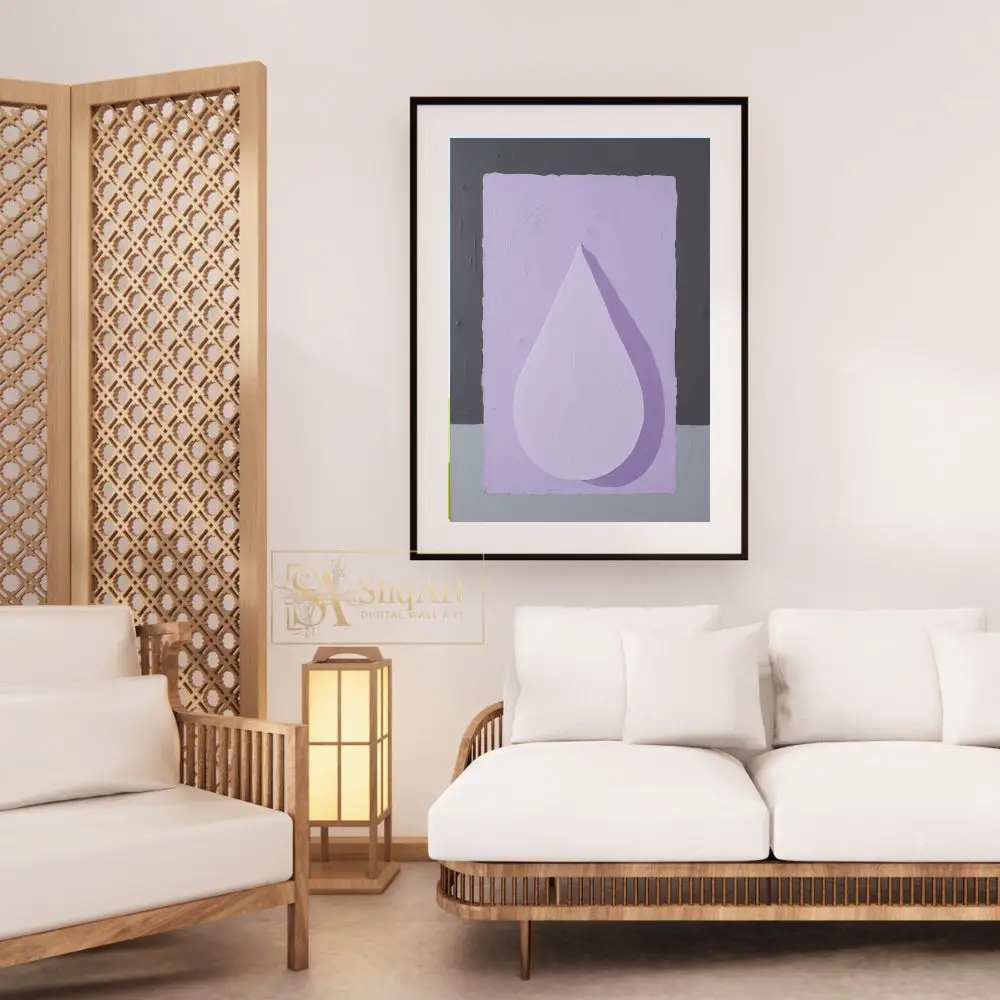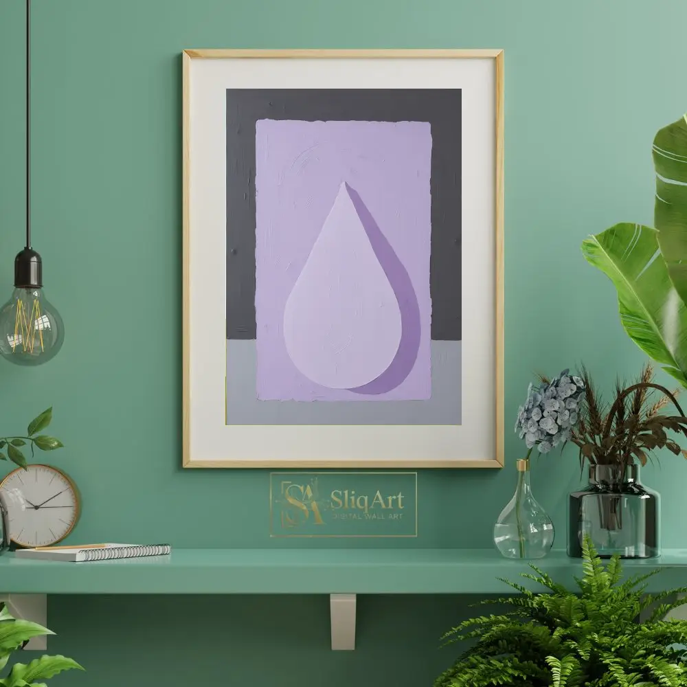 Immerse yourself in the serene simplicity of this minimalist abstract masterpiece. Centered within the composition is a beautifully rendered teardrop in a calming lavender tone, brought to life through thick, expressive impasto brushstrokes.