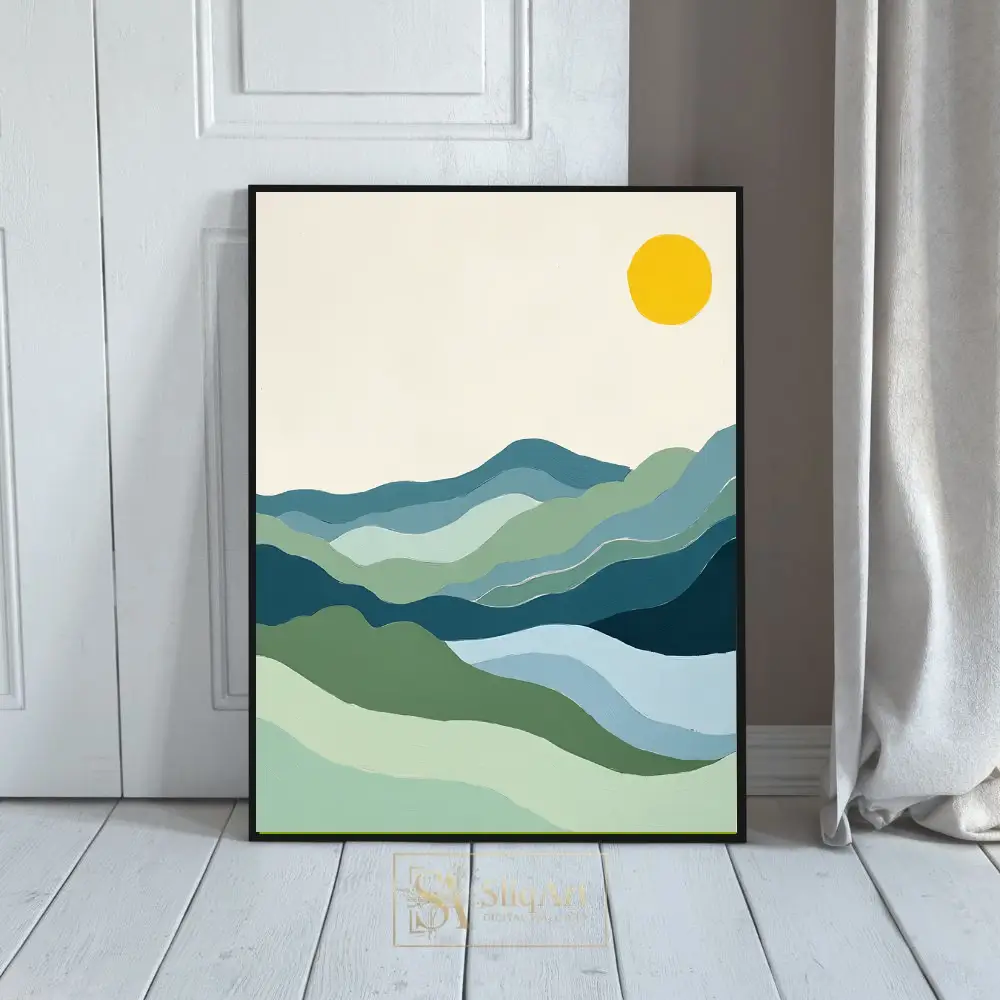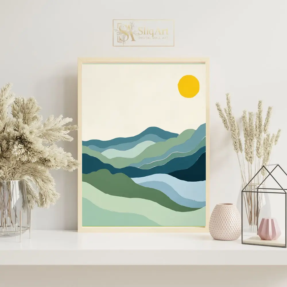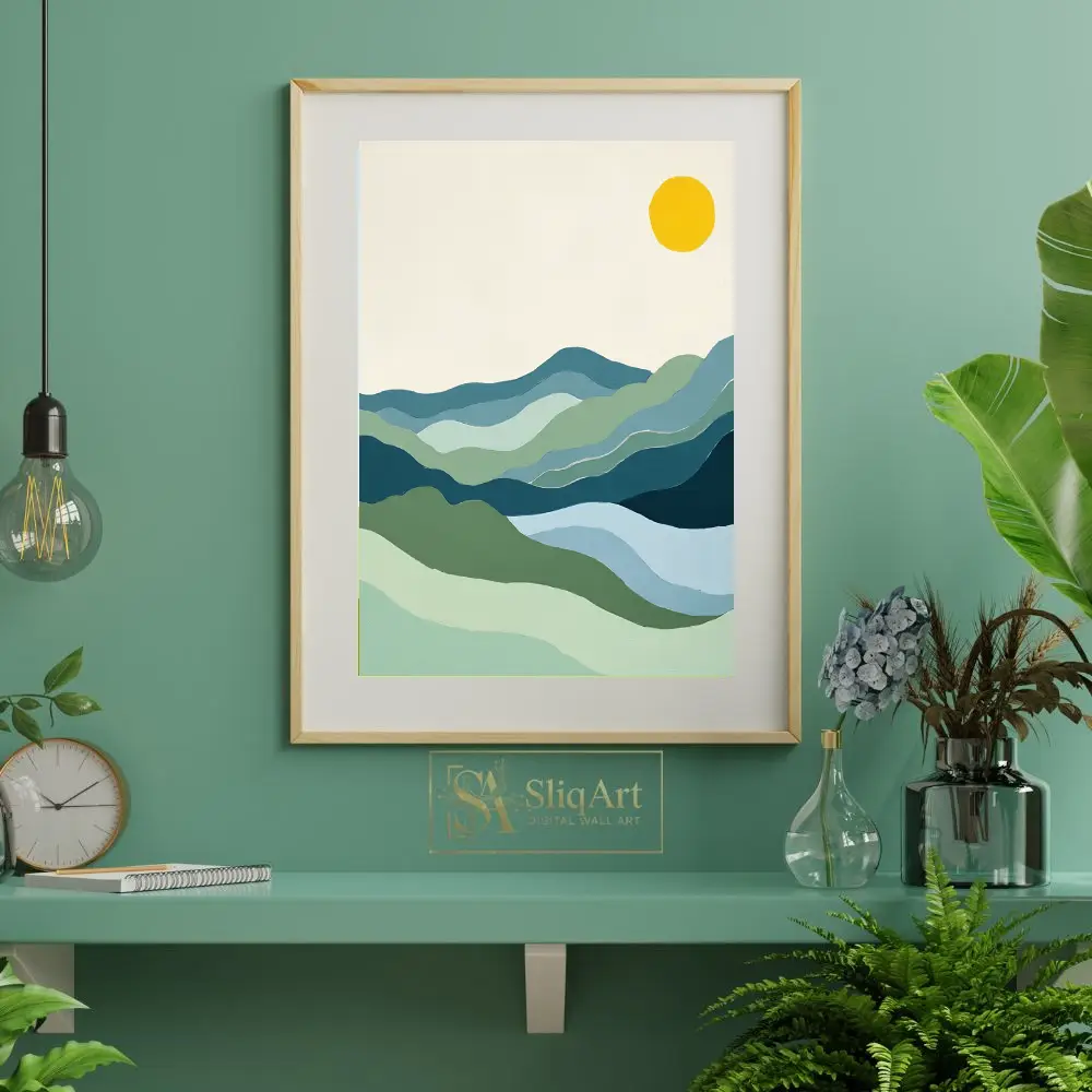 Be the first to review “Minimalist Mountain Landscape Art | Abstract Blue & Green Hills”