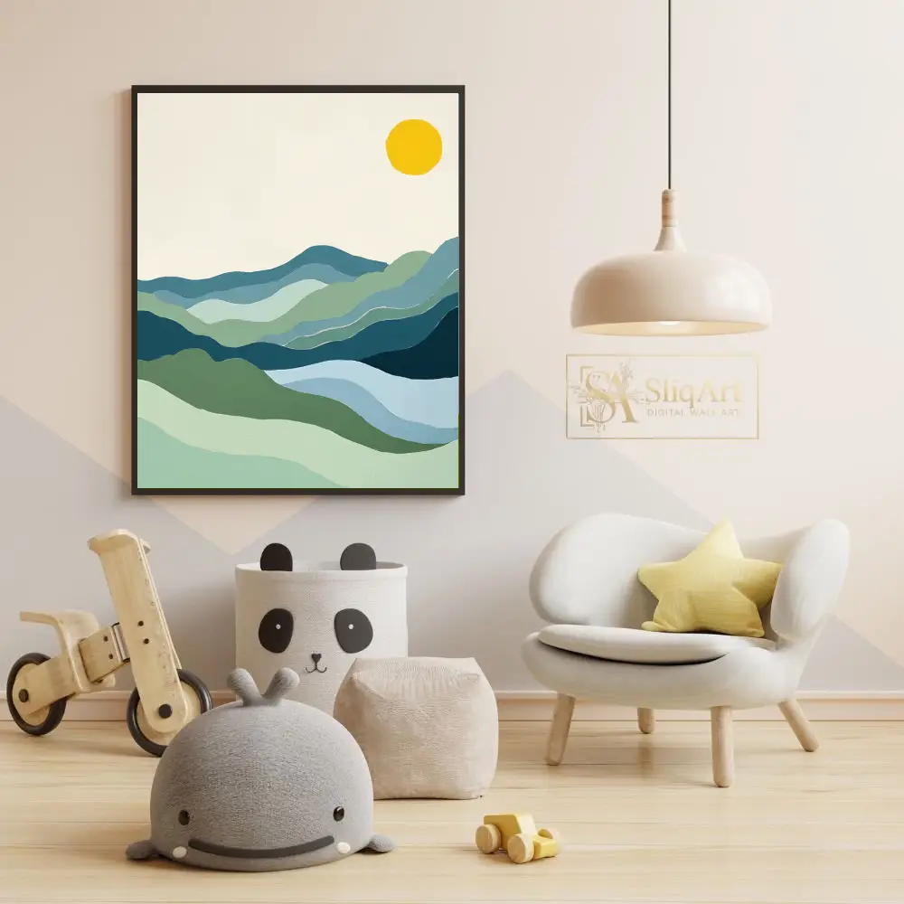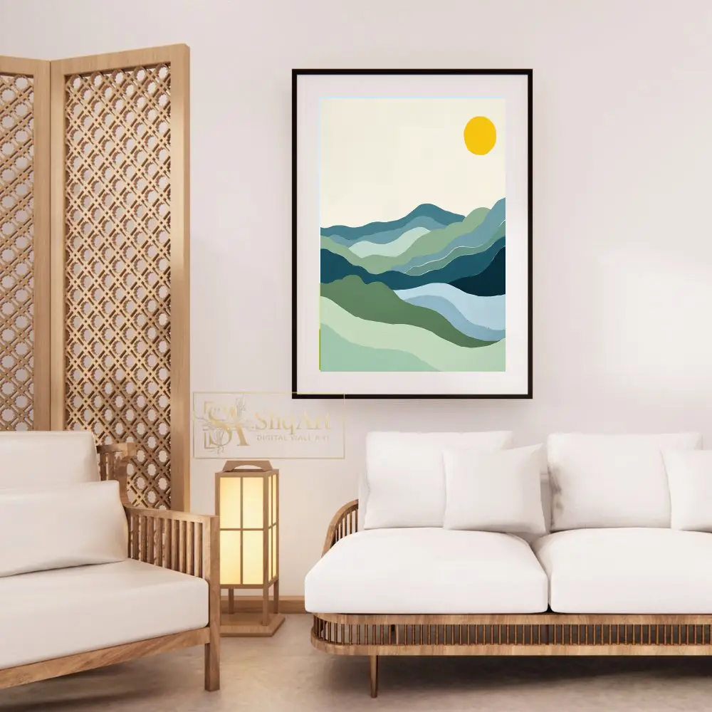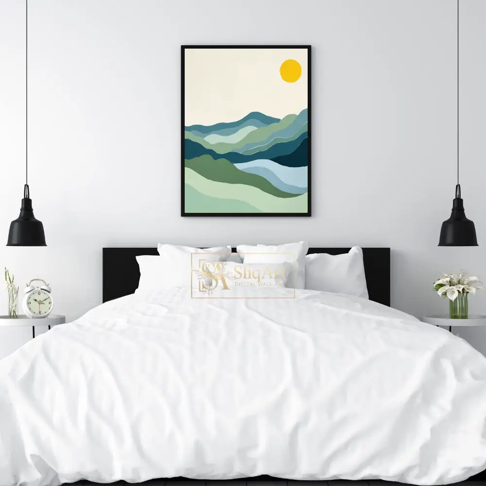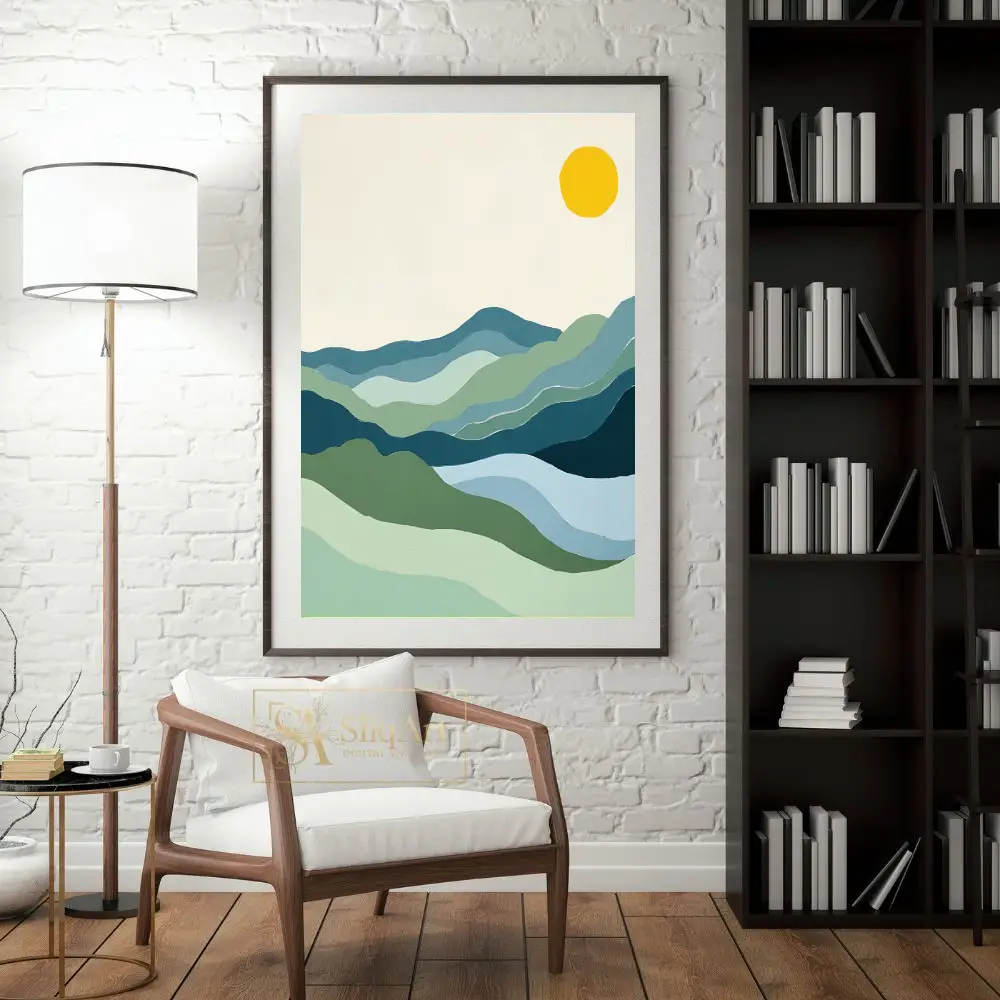 Be the first to review “Minimalist Mountain Landscape Art | Abstract Blue & Green Hills”