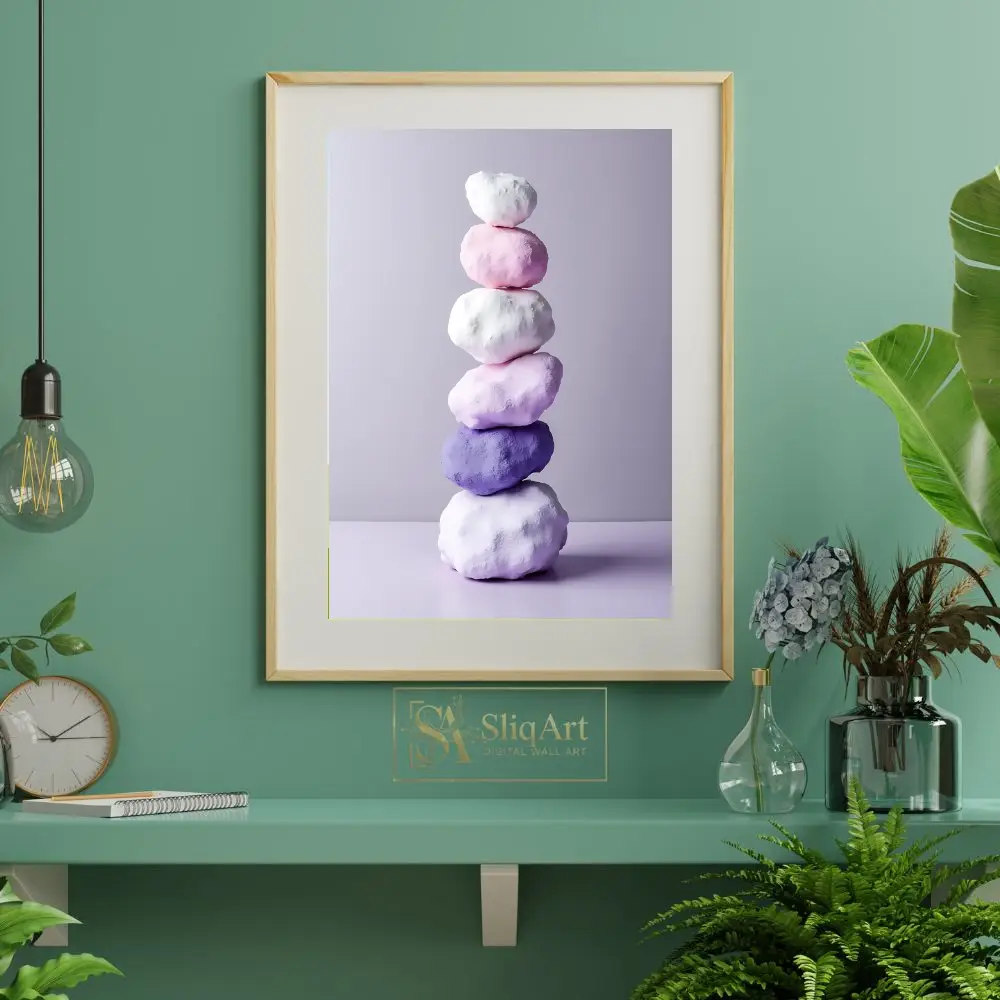 Find your center with this ethereal minimalist artwork featuring a delicately balanced stack of stones.