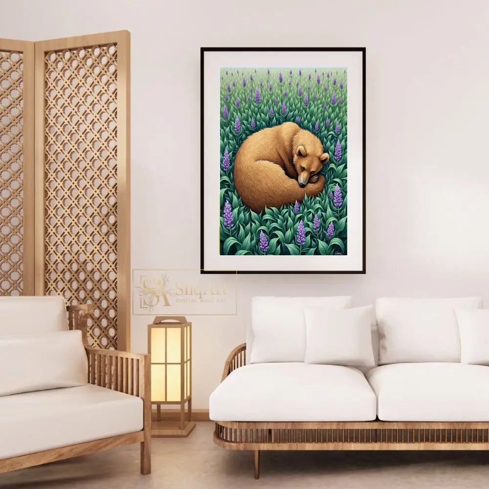 Sleeping Bear in Lavender Field – Nature & Wildlife Wall Art