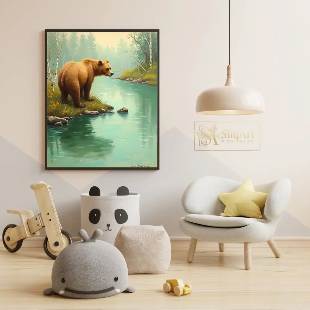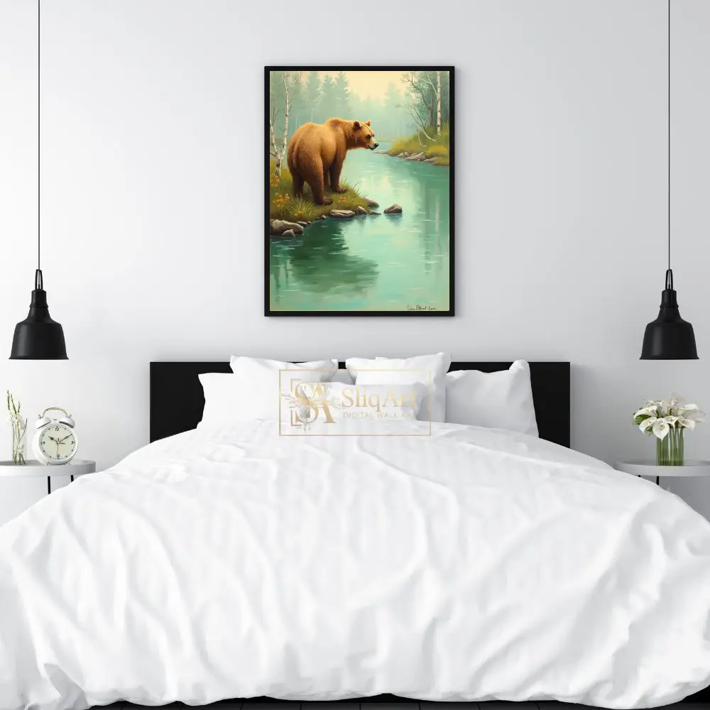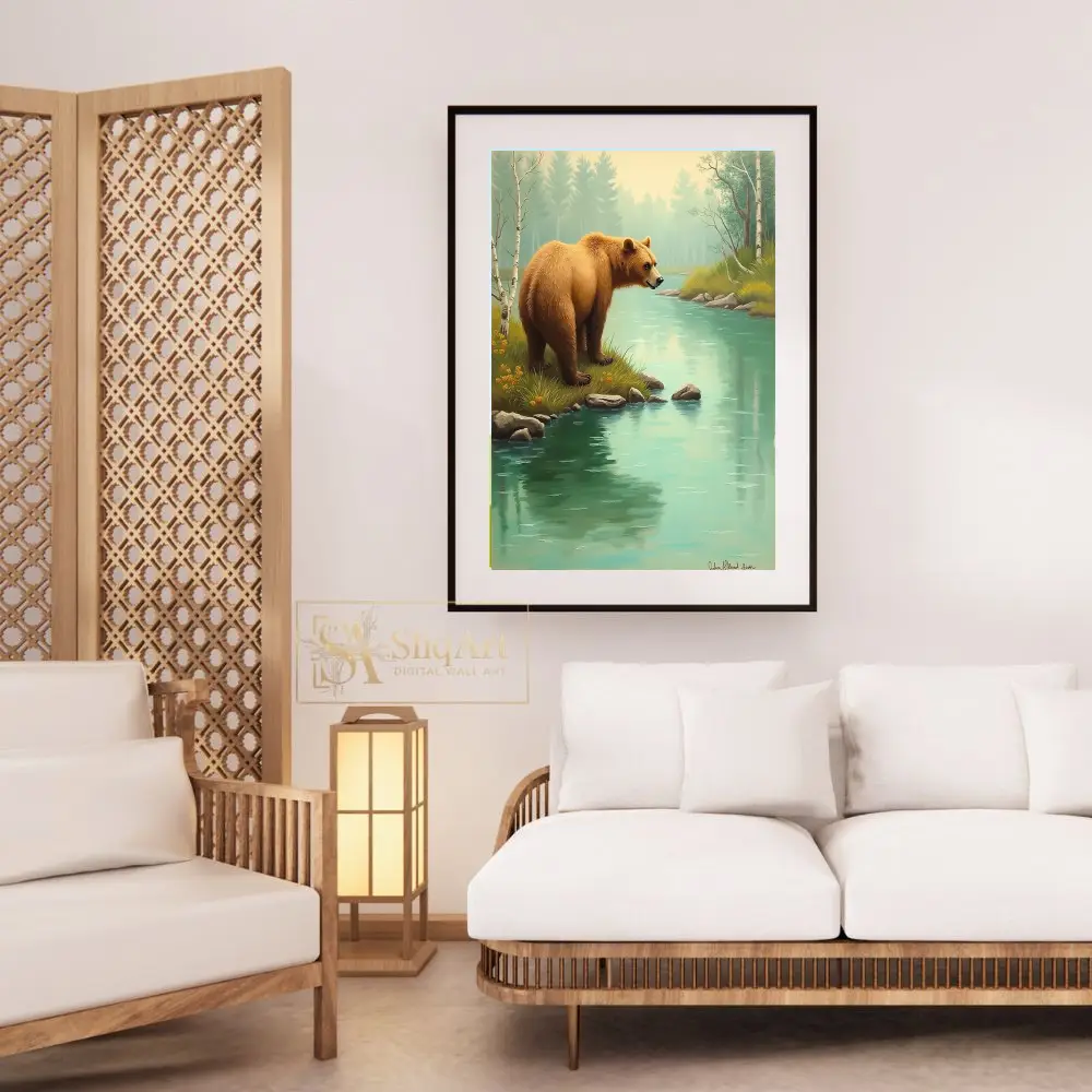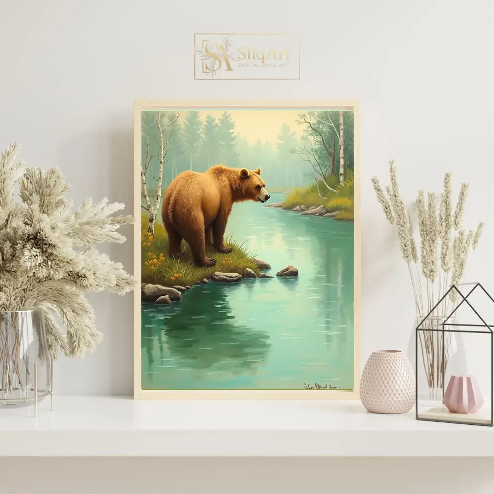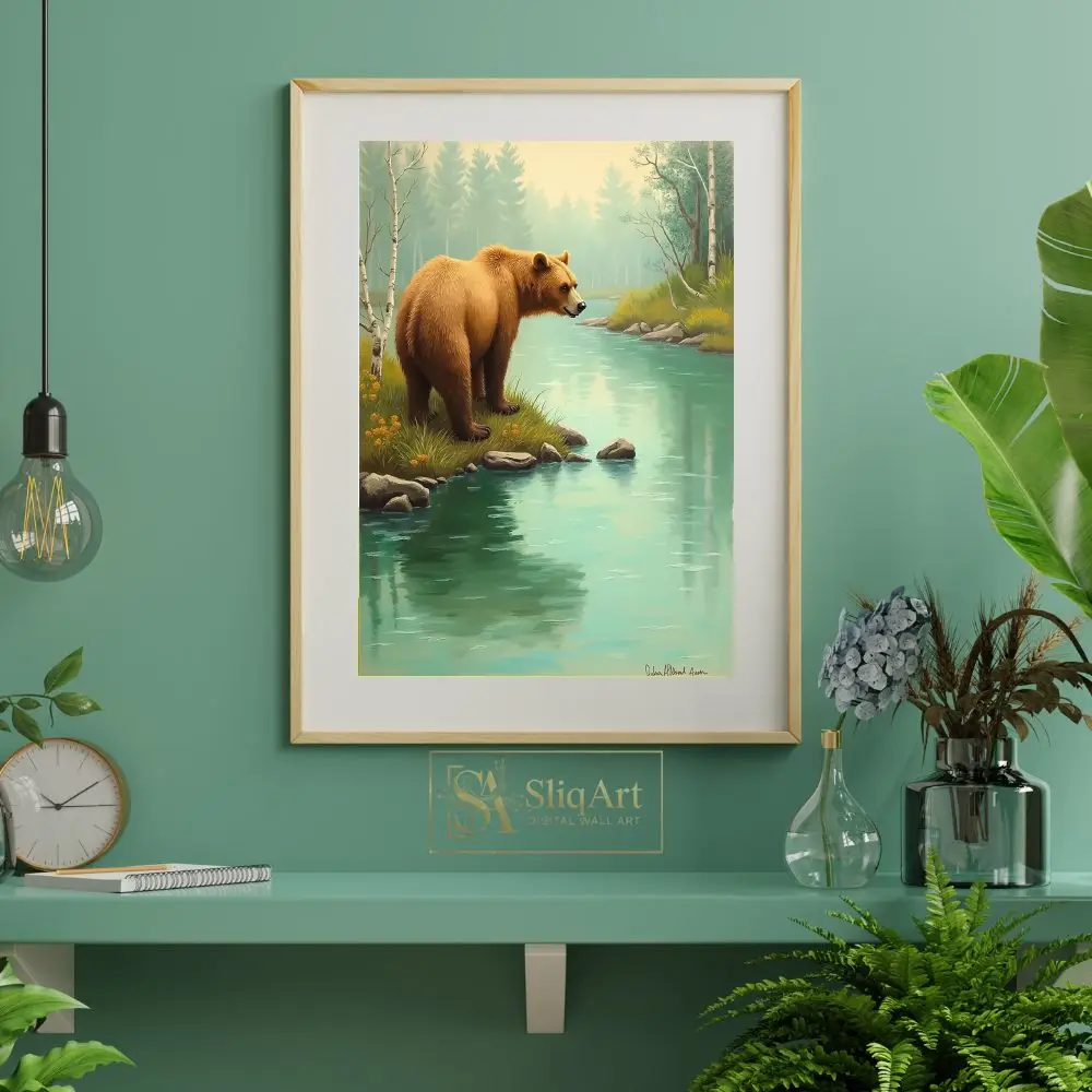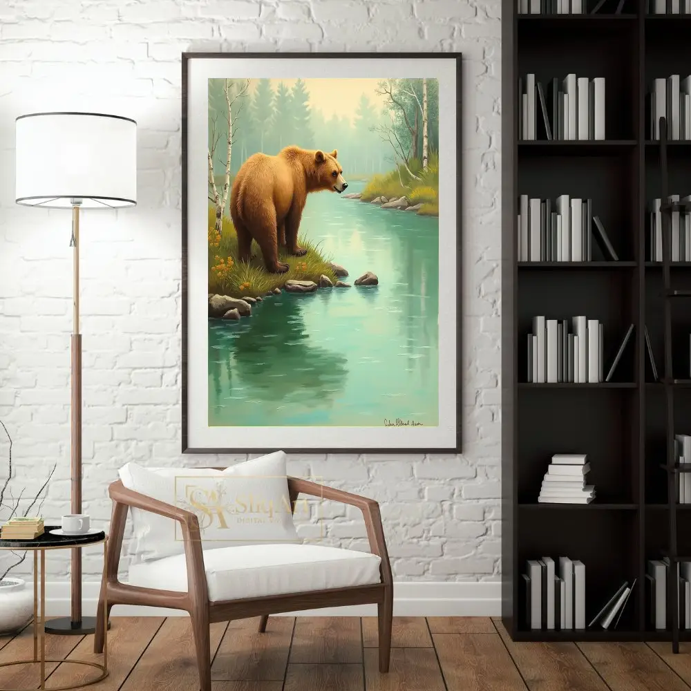 Majestic Brown Bear by the River – Forest Wildlife Wall Art