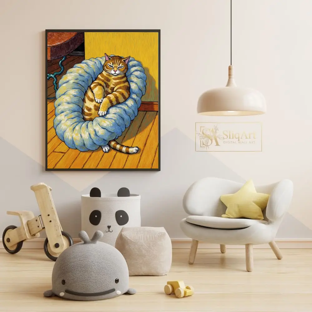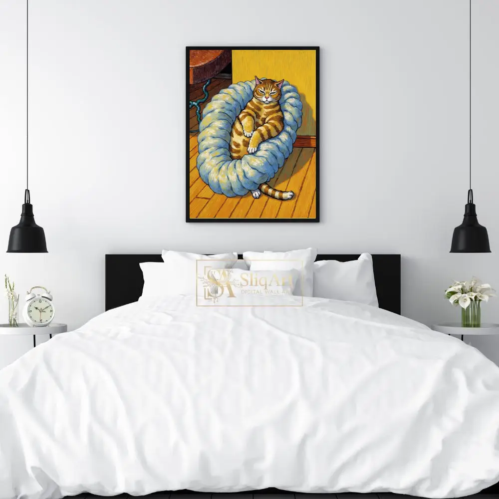 Be the first to review “Cozy Ginger Tabby Cat in Blue Bed Illustration Art Print”