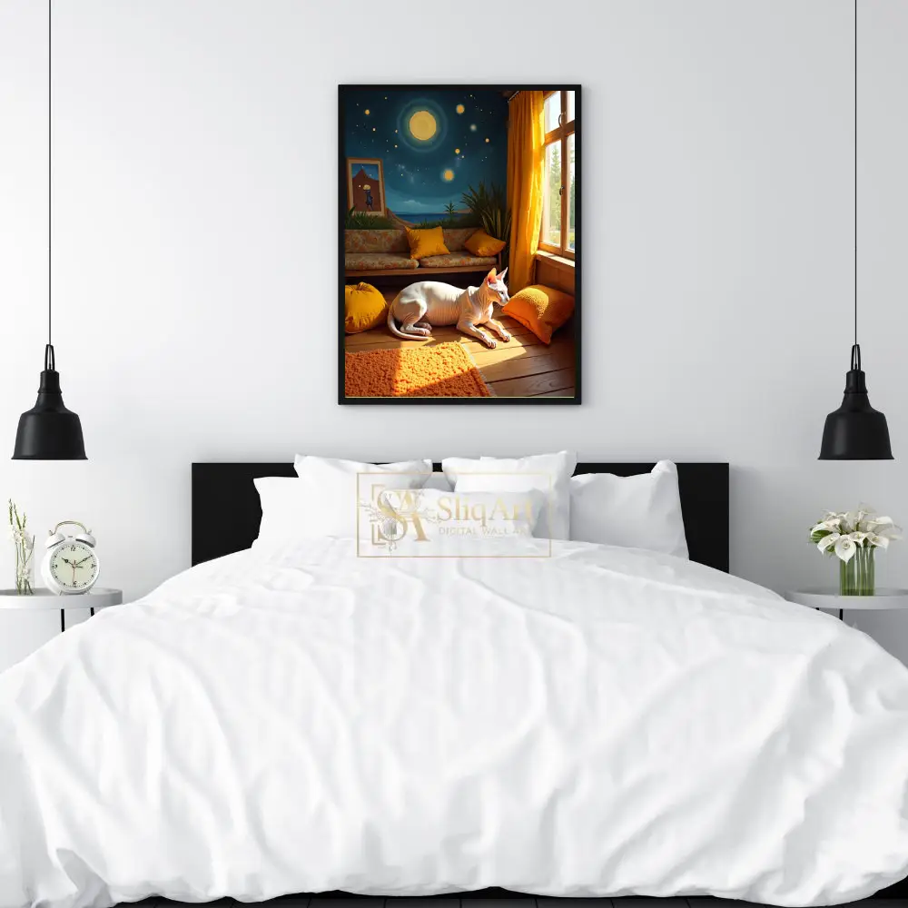 Sphynx Cat in Sunlit Starry Night Mural Room Art Print