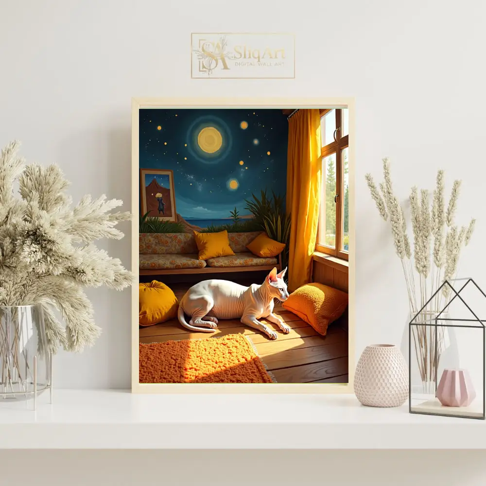 Be the first to review “Sphynx Cat in Sunlit Starry Night Mural Room Art Print”
