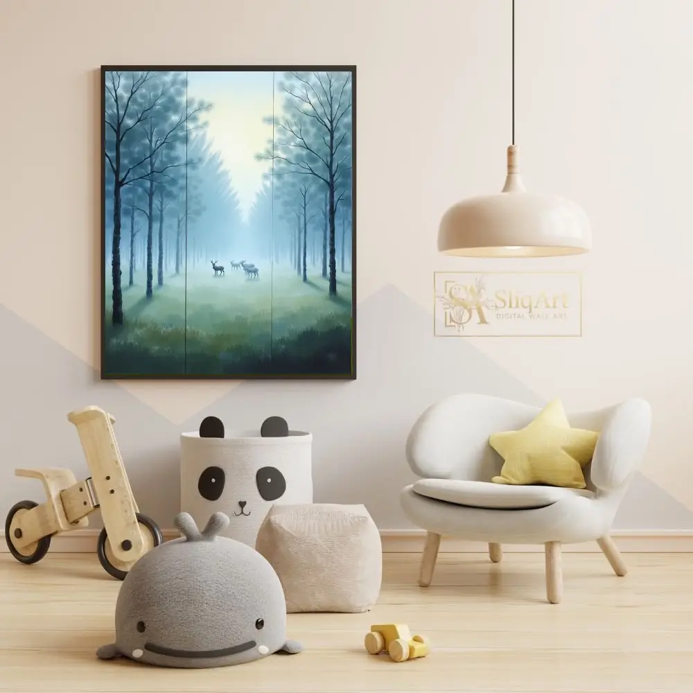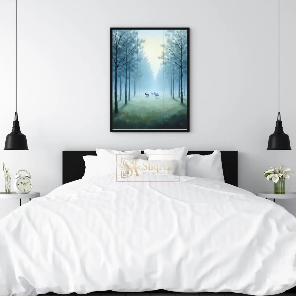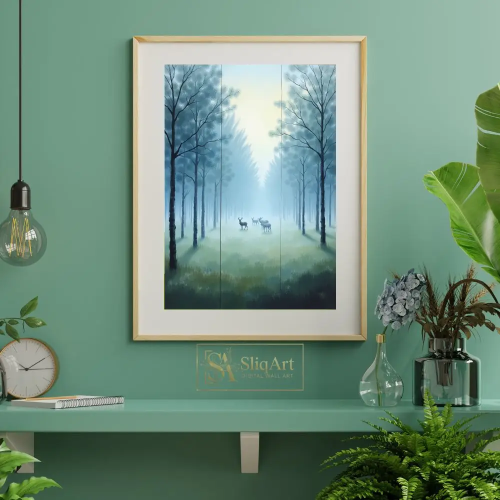 Be the first to review “Serene Misty Forest & Deer Triptych Wall Art | SliqArt”