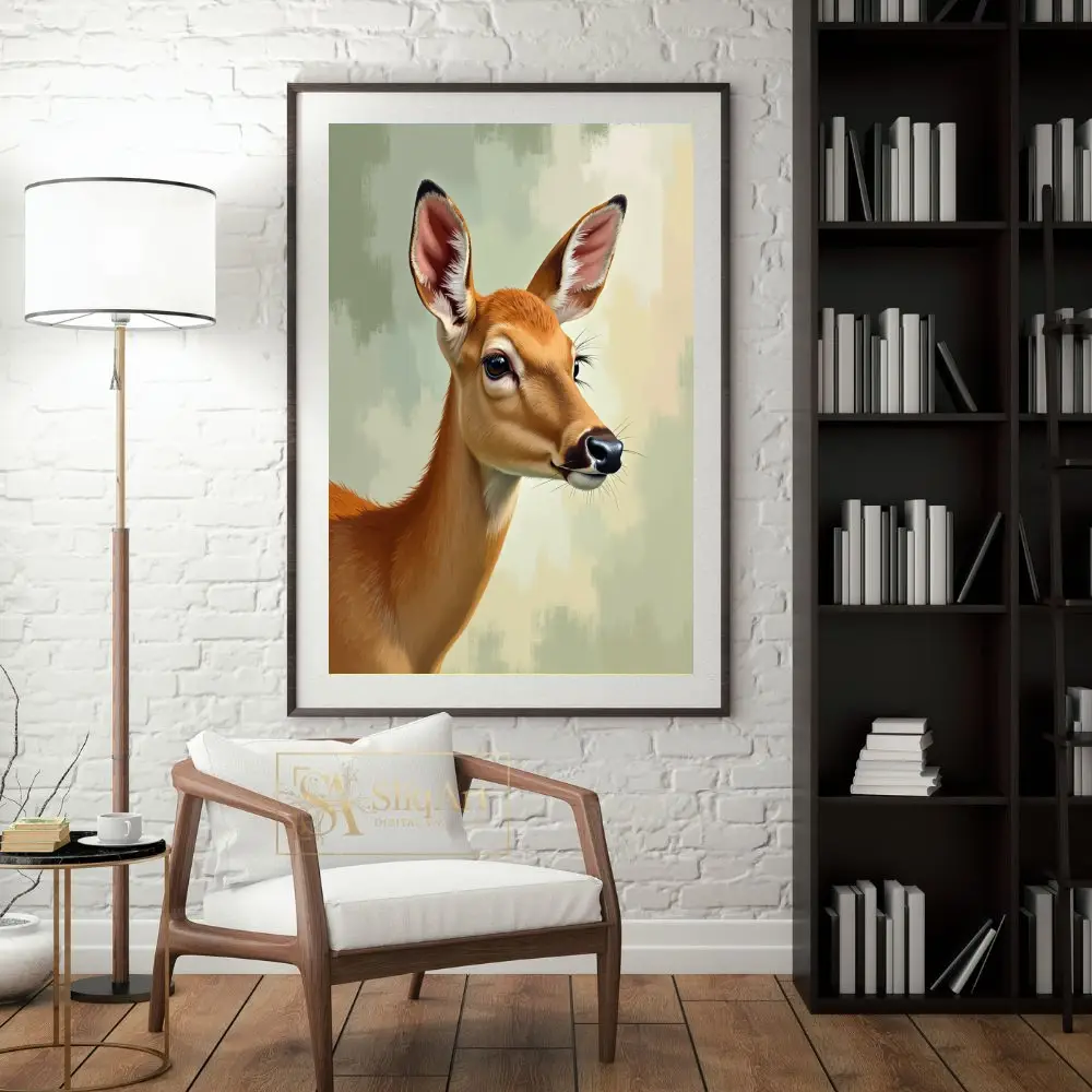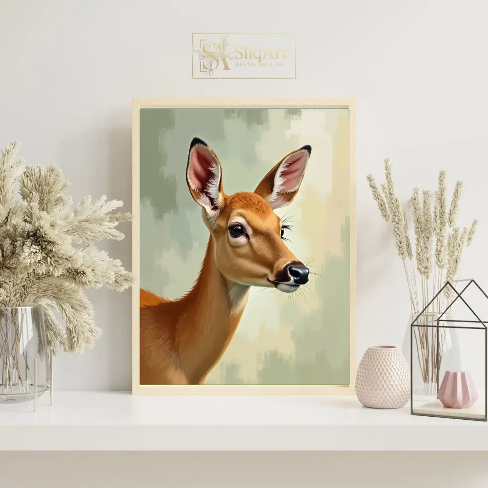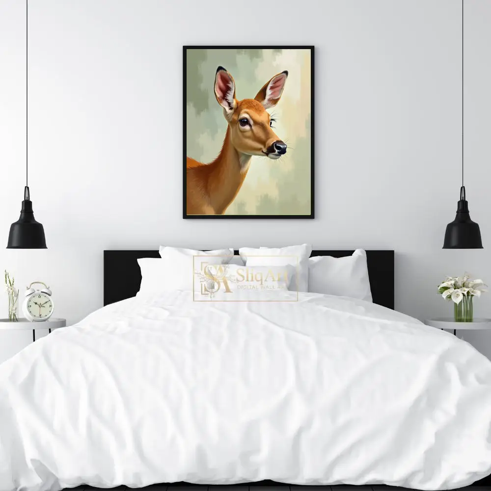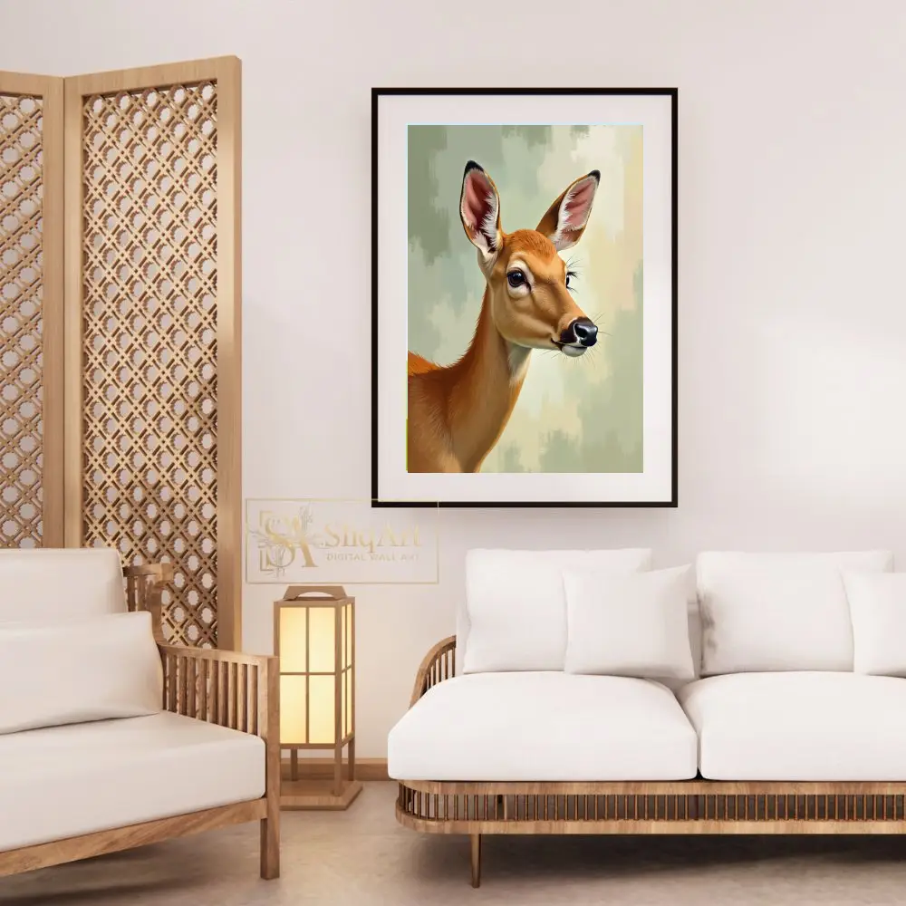 Serene Doe Portrait – Nature-Inspired Digital Art Print