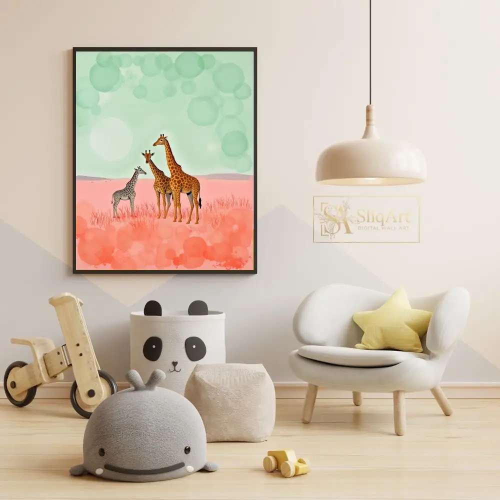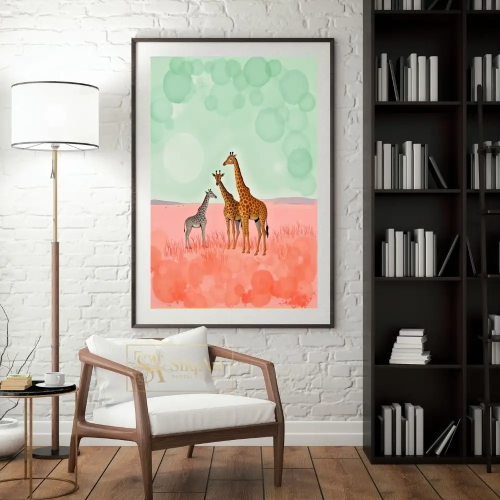 Be the first to review “Whimsical Giraffe Family Surreal Savannah Art Print”