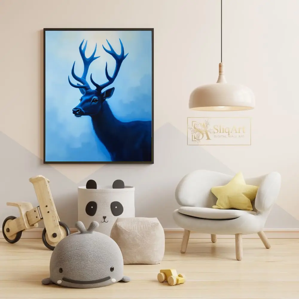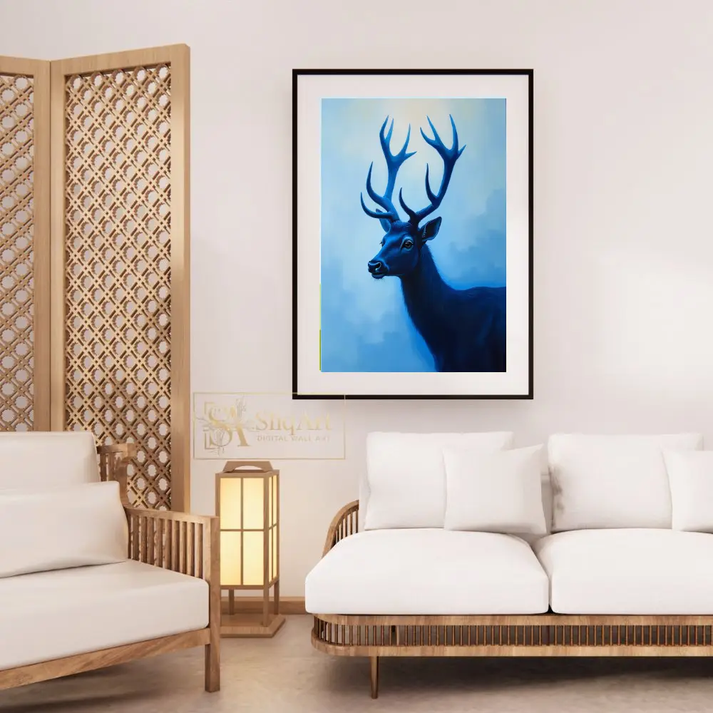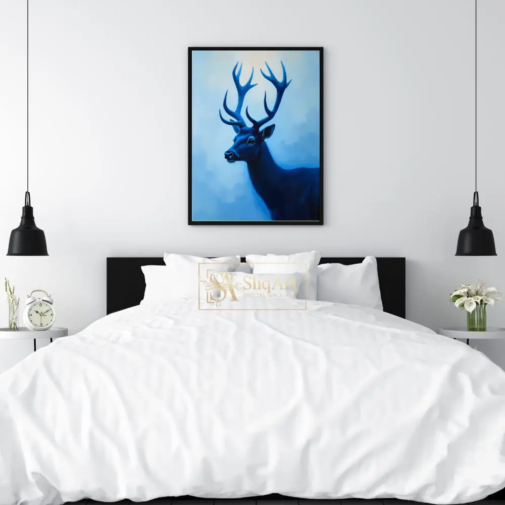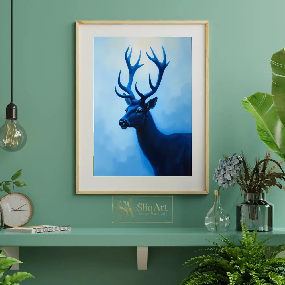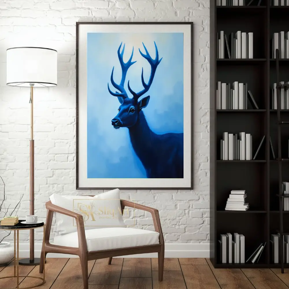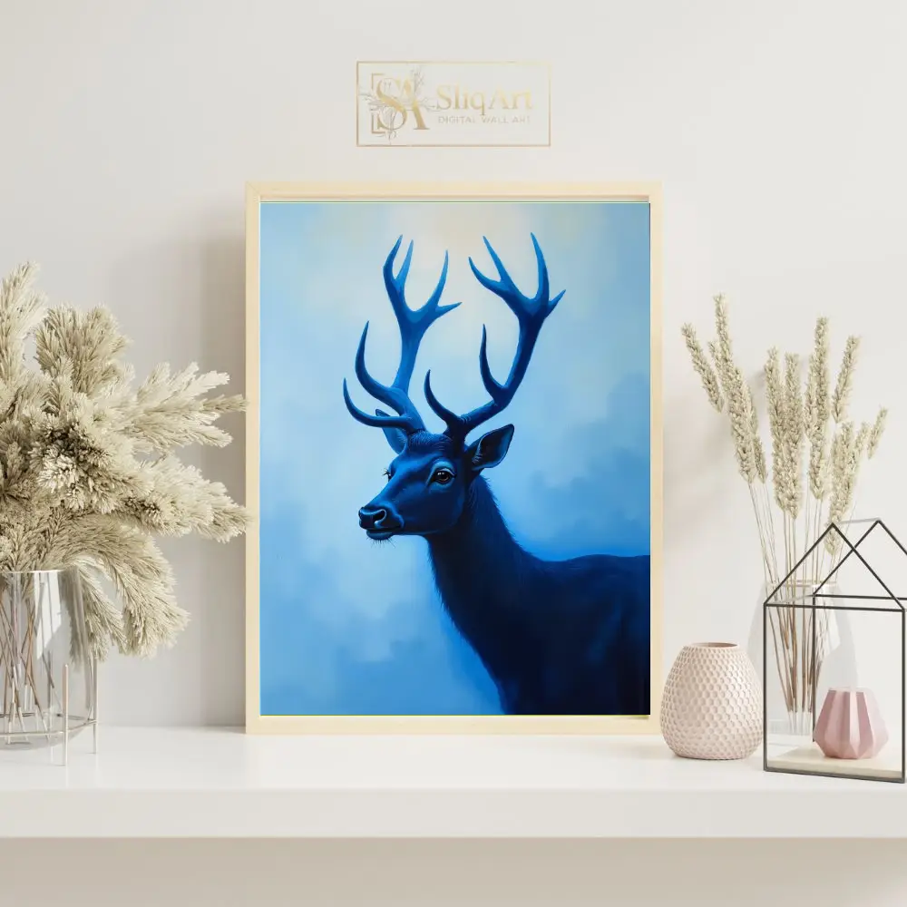 Be the first to review “Majestic Blue Stag Wall Art – Modern Monochromatic Nature Canvas”