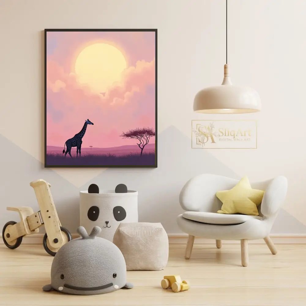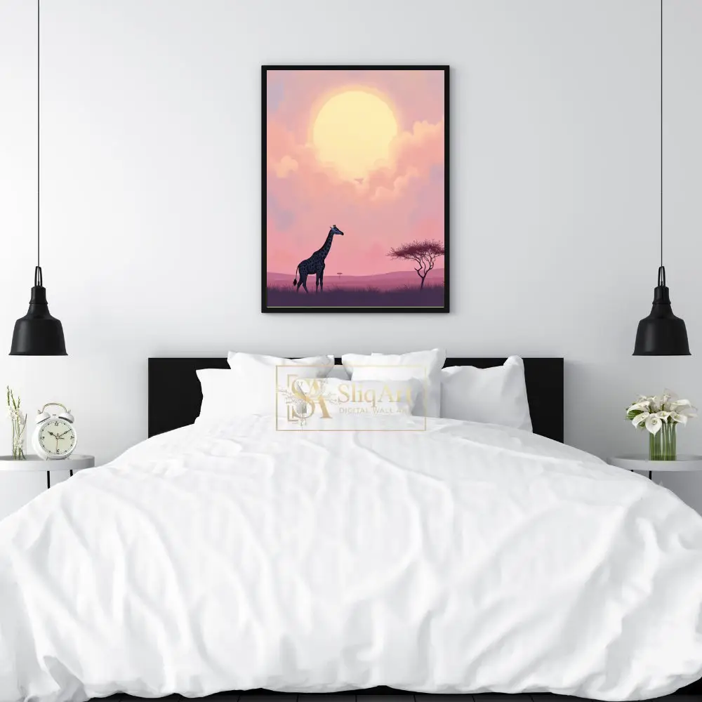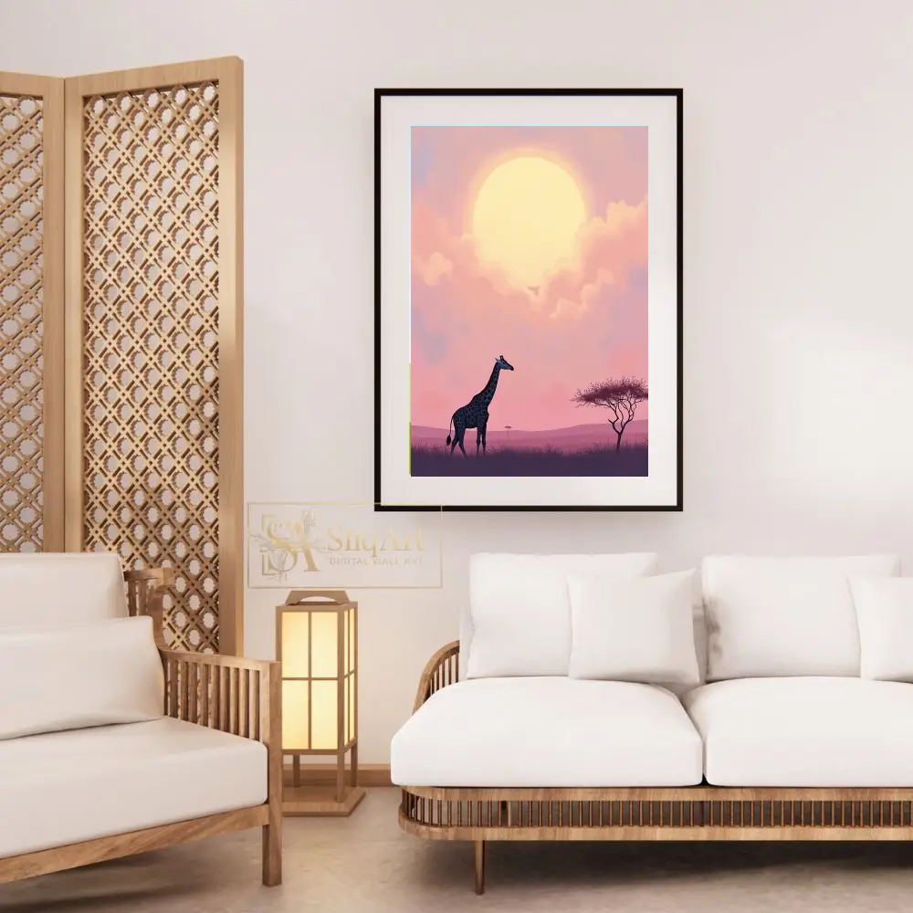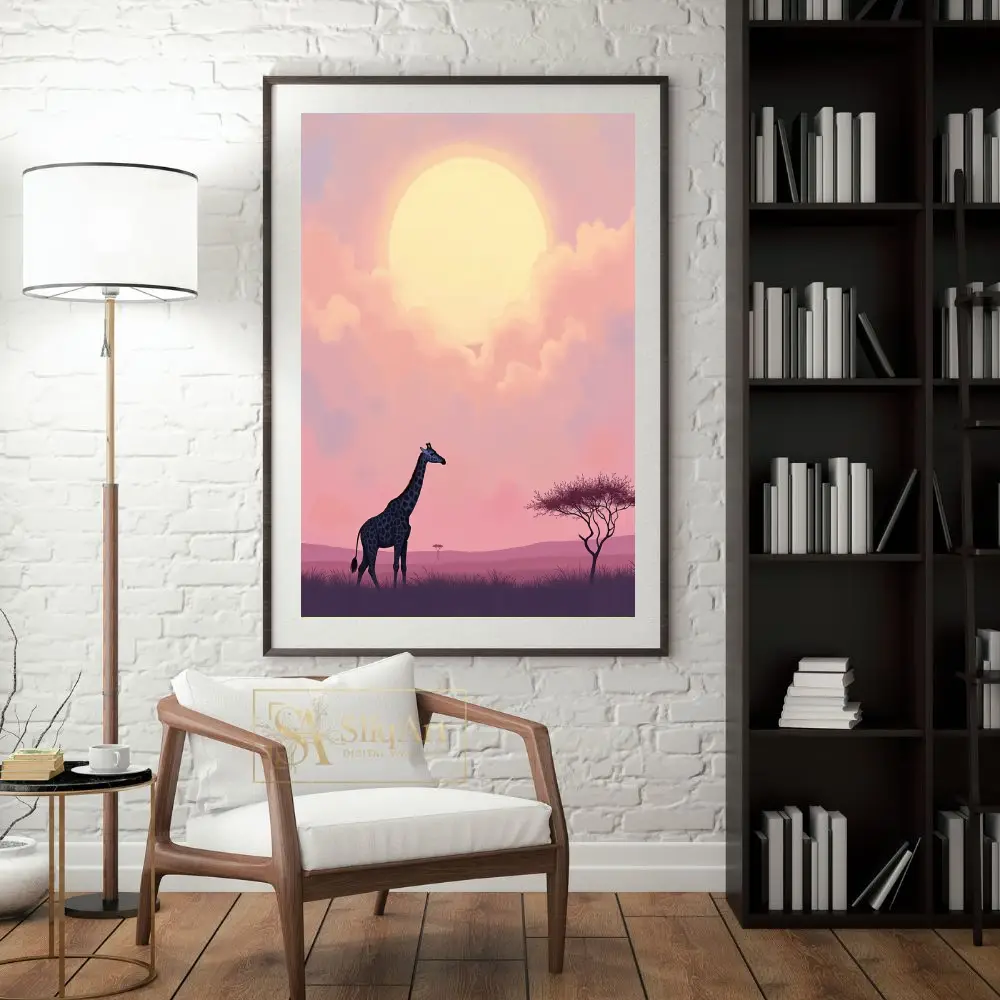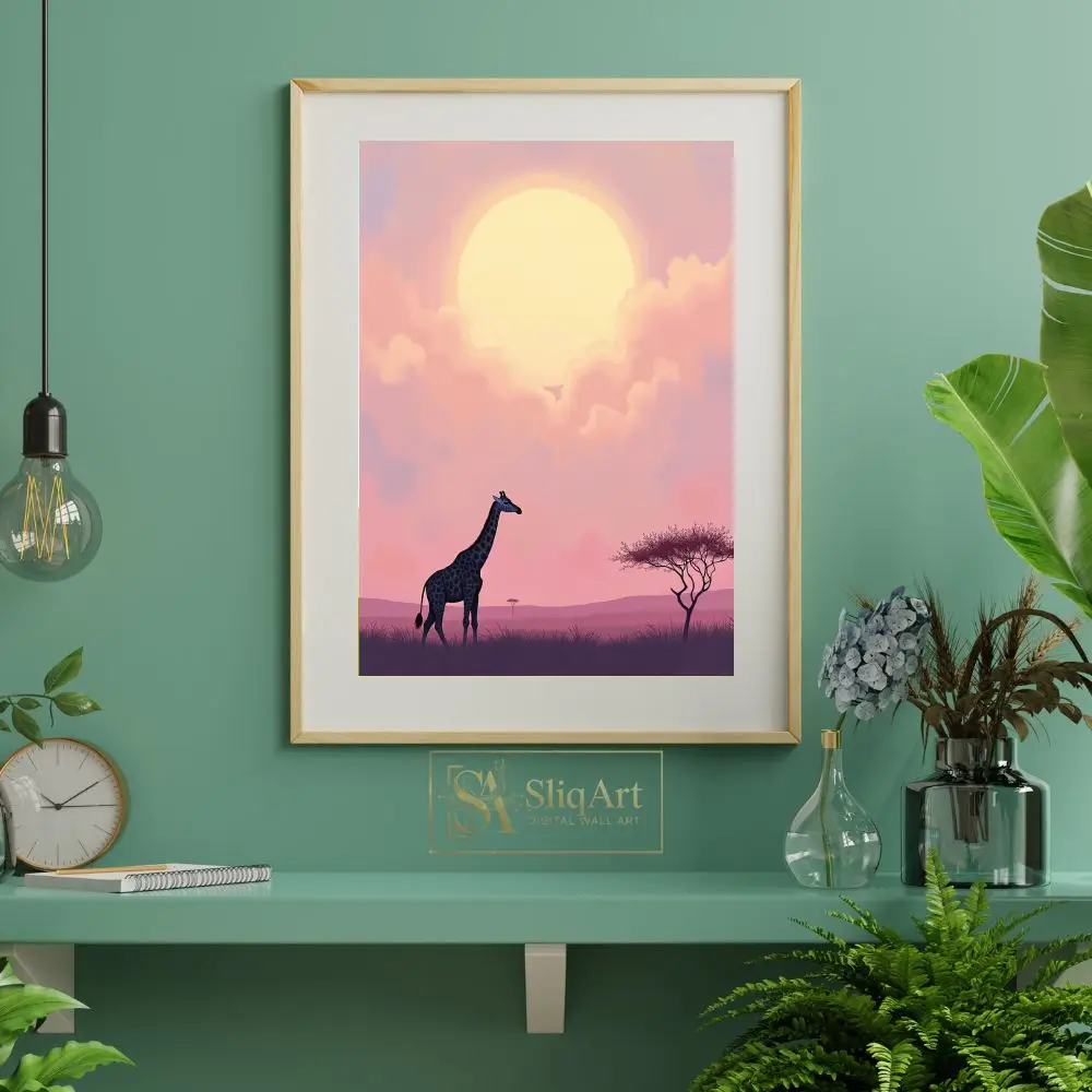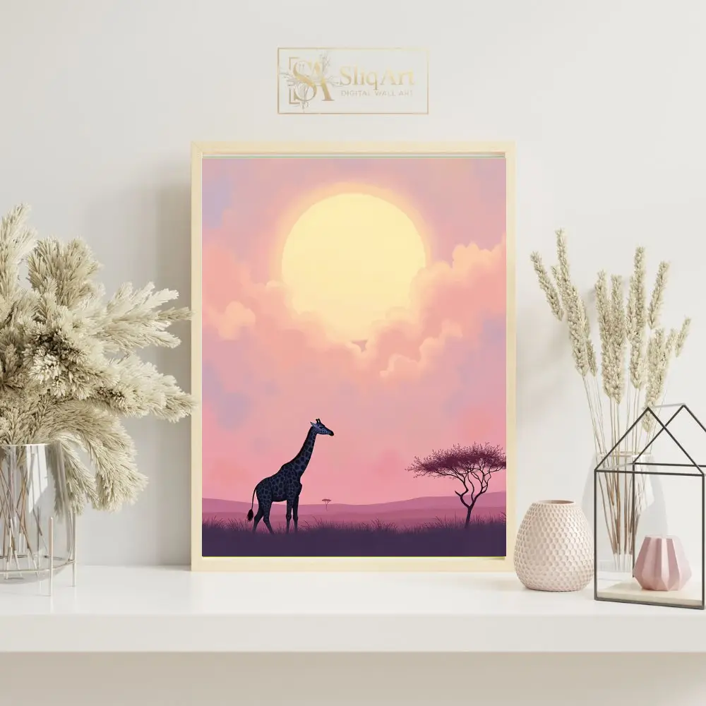 Be the first to review “Serene Giraffe Silhouette under Golden Sun Pink Safari Art”