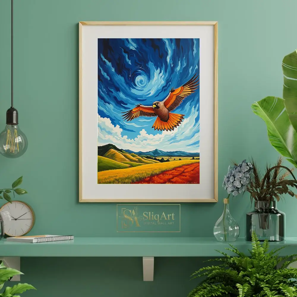 Be the first to review “Majestic Soaring Hawk Landscape Art – Post-Impressionist Nature Wall Decor”