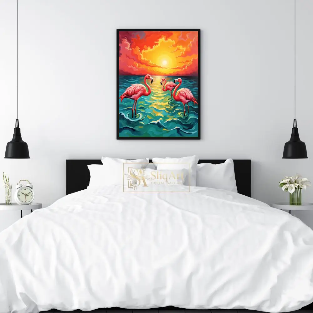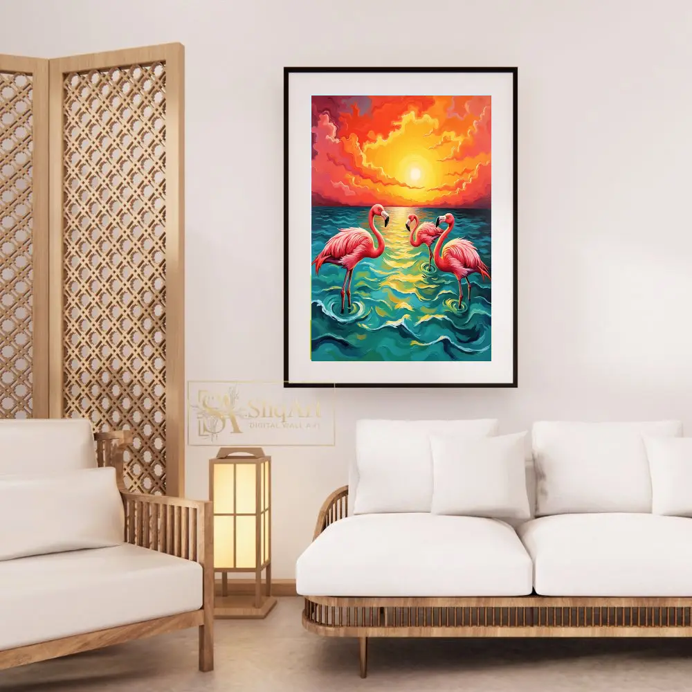 Be the first to review “Tropical Flamingo Sunset Canvas Wall Art – Impressionist Beach Decor”