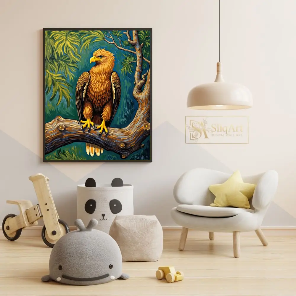 Majestic Golden Eagle Wall Art – Illustrative Nature Decor