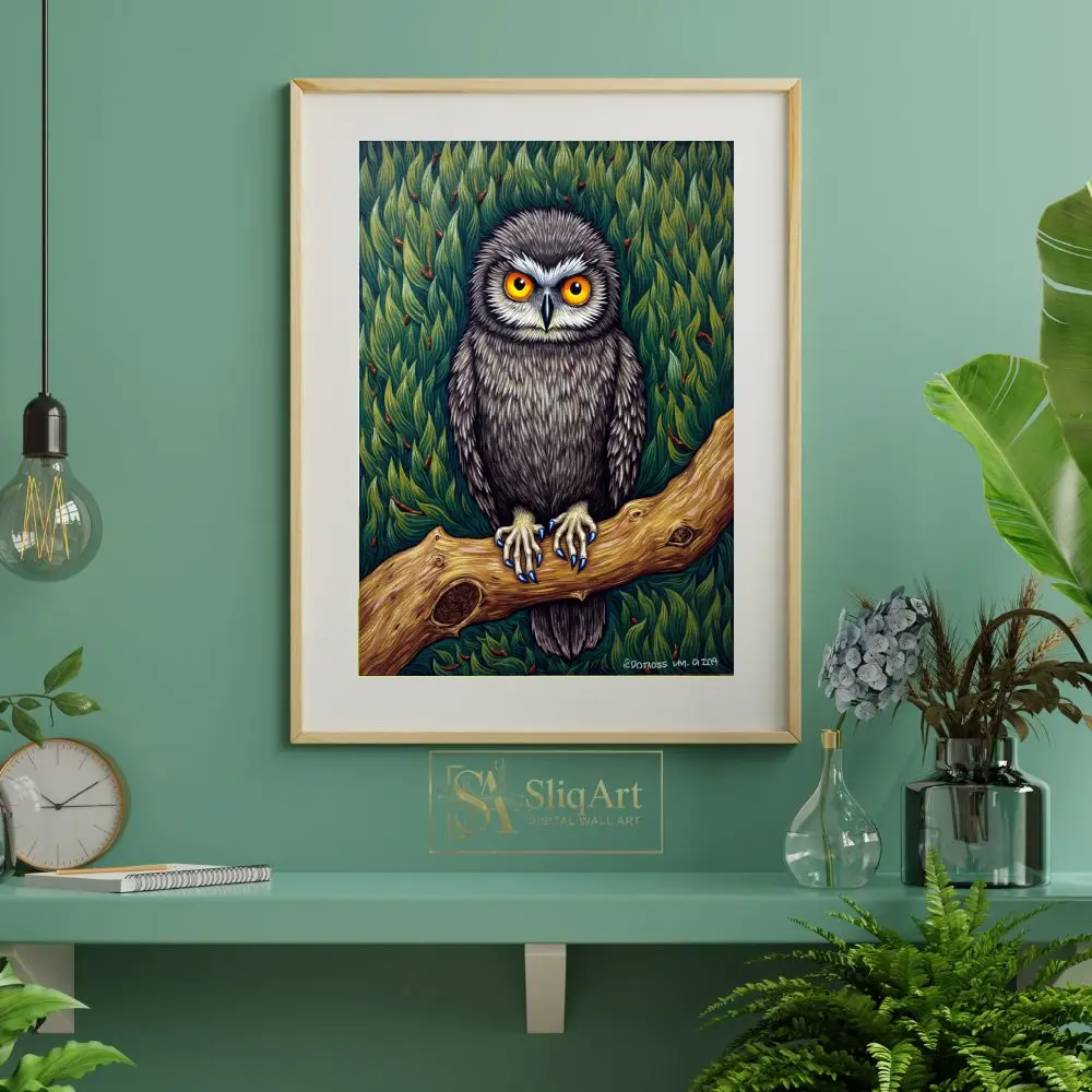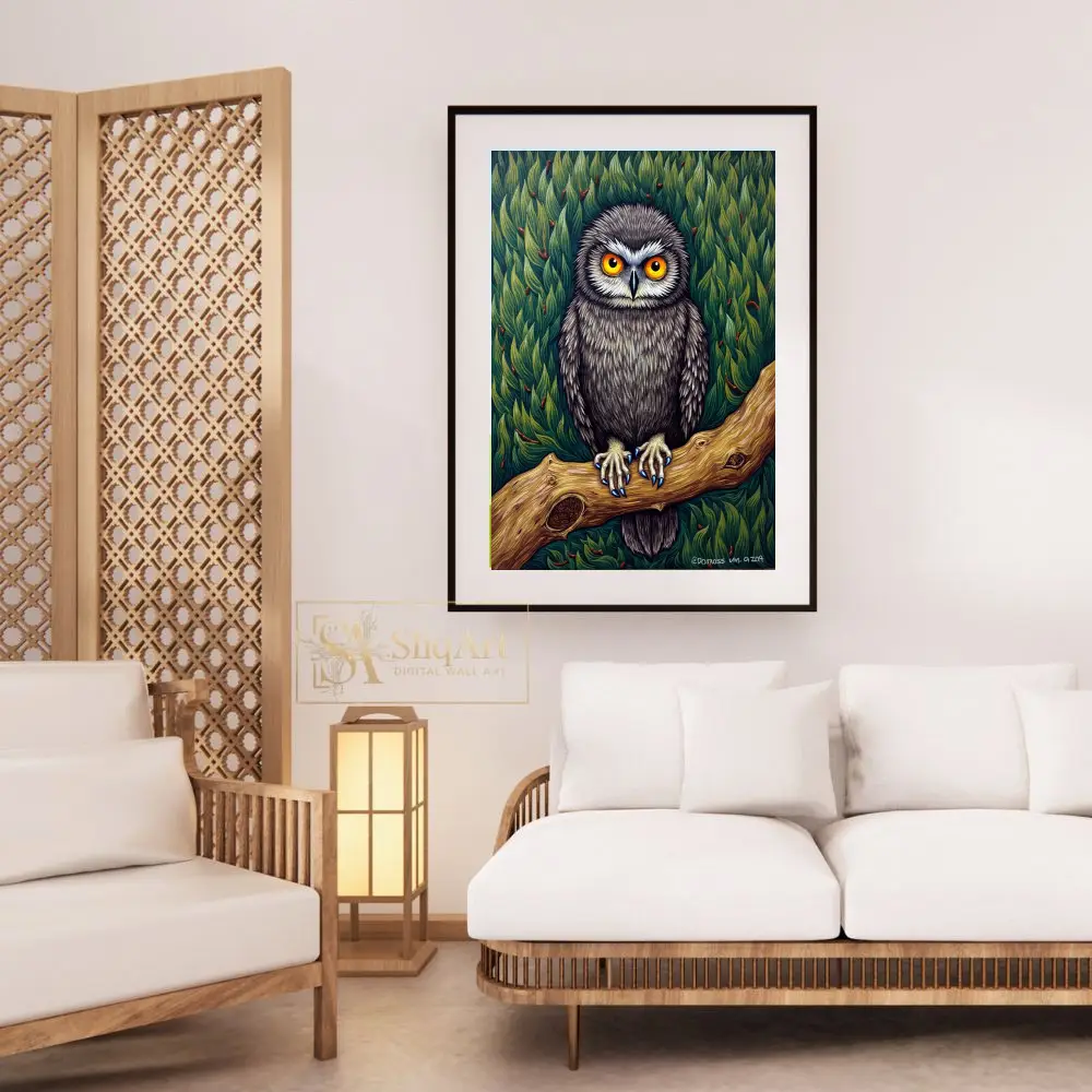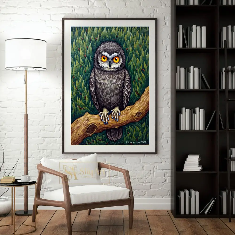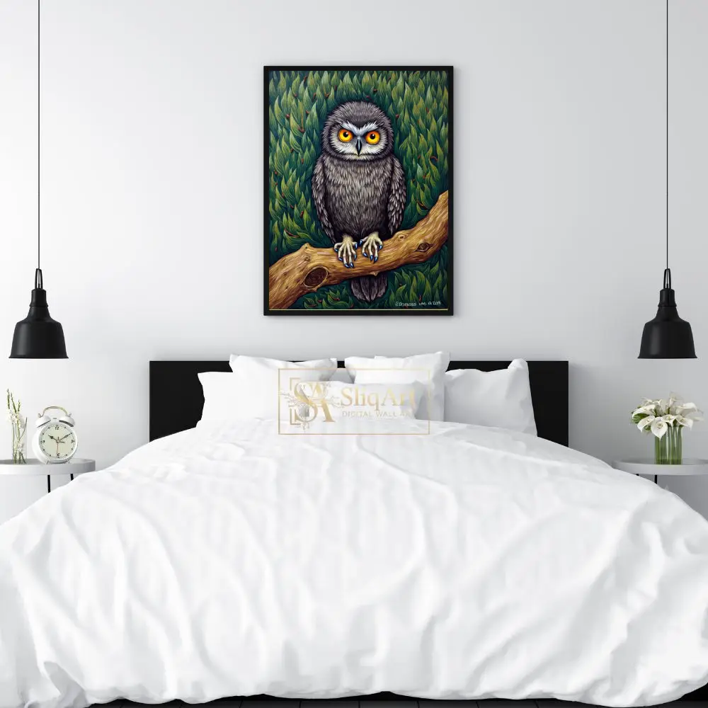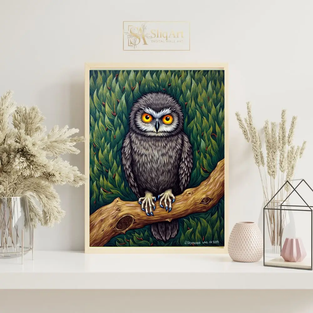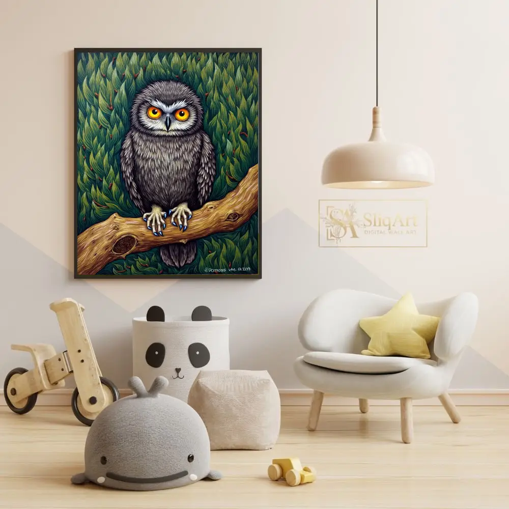 Mystic Owl Forest Guardian Wall Art – Detailed Nature Illustration