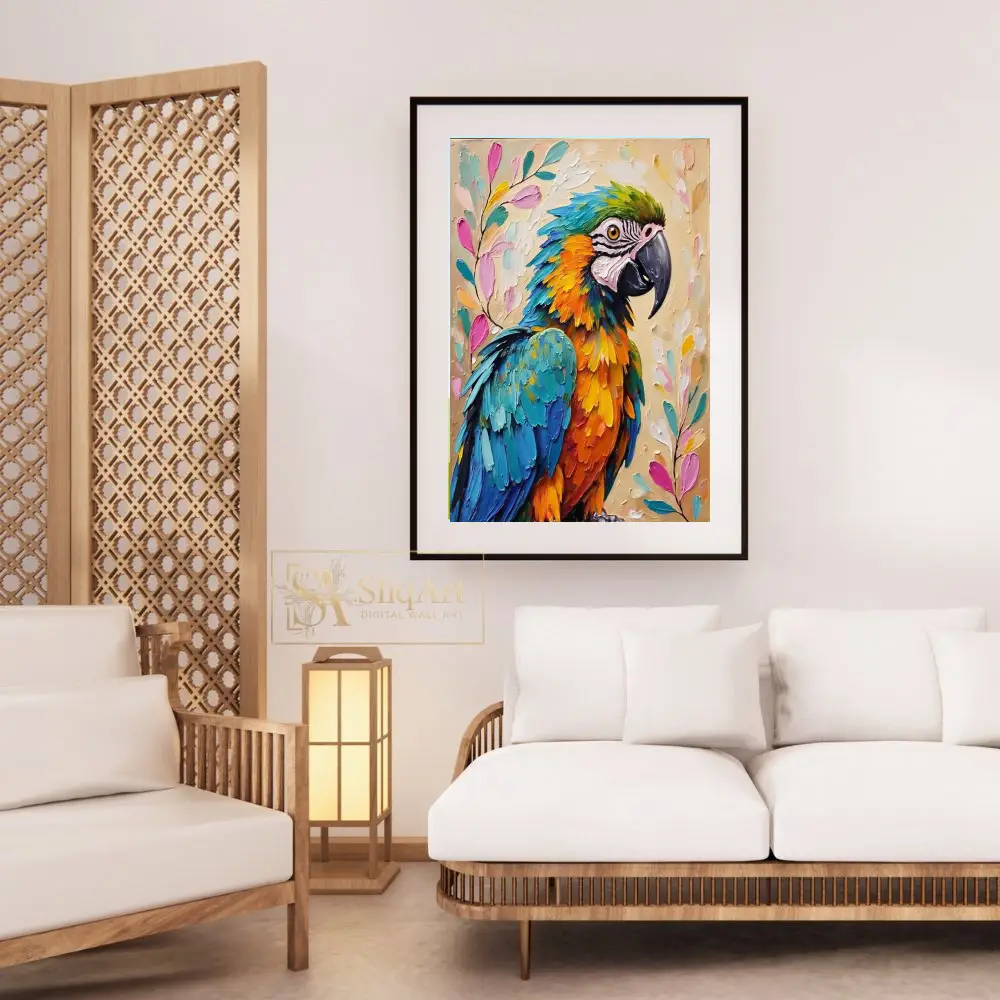 Vibrant Macaw Parrot Impasto Oil Painting – Colorful Tropical Bird Wall Art