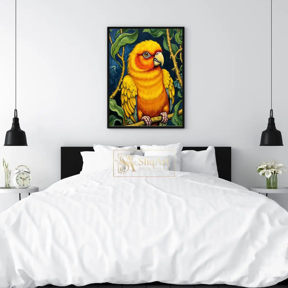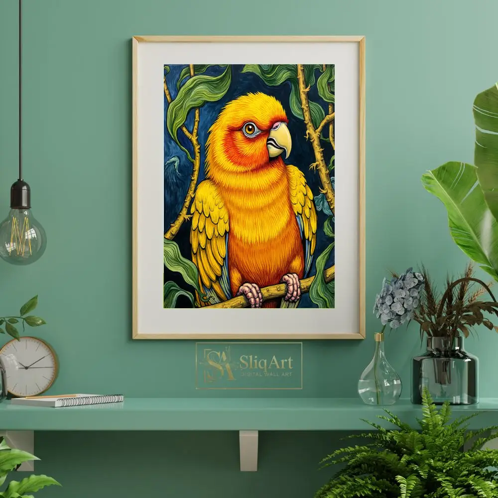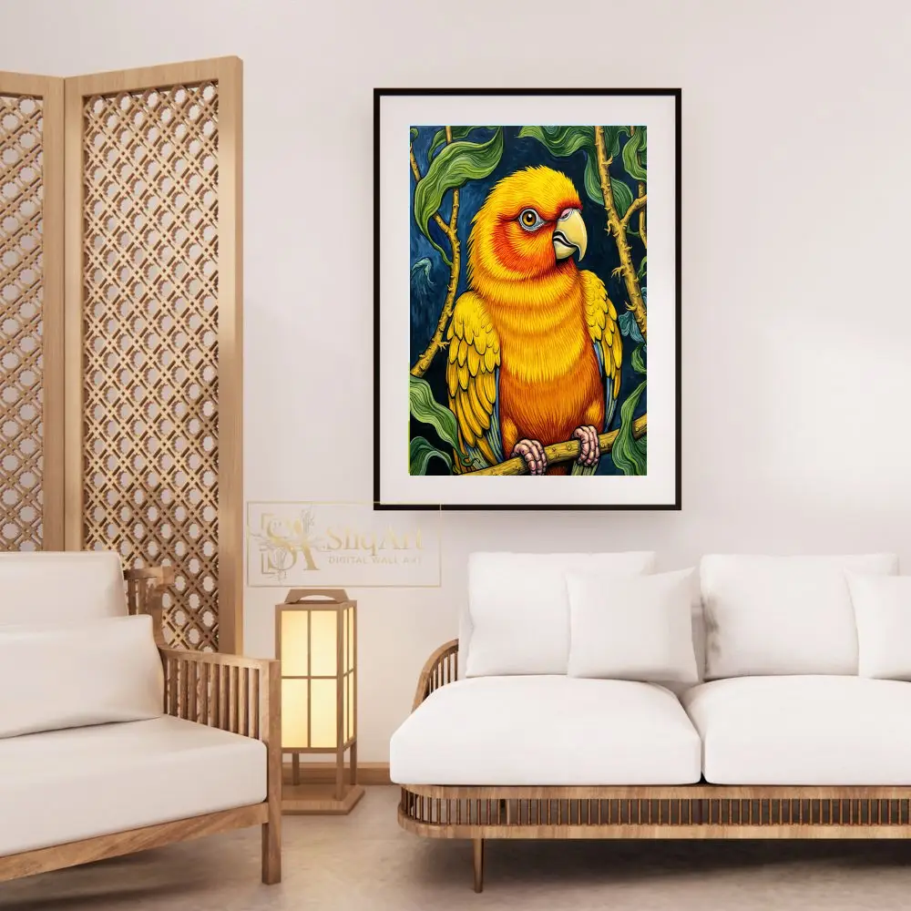Vibrant Sun Conure Parrot Illustration Wall Art