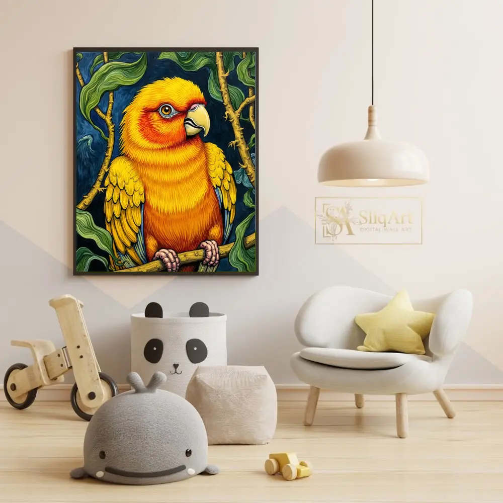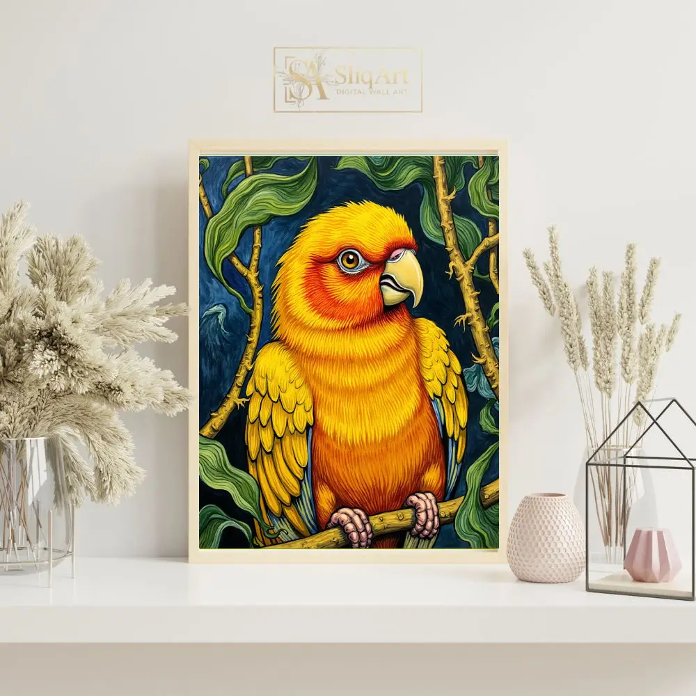 Be the first to review “Vibrant Sun Conure Parrot Illustration Wall Art”