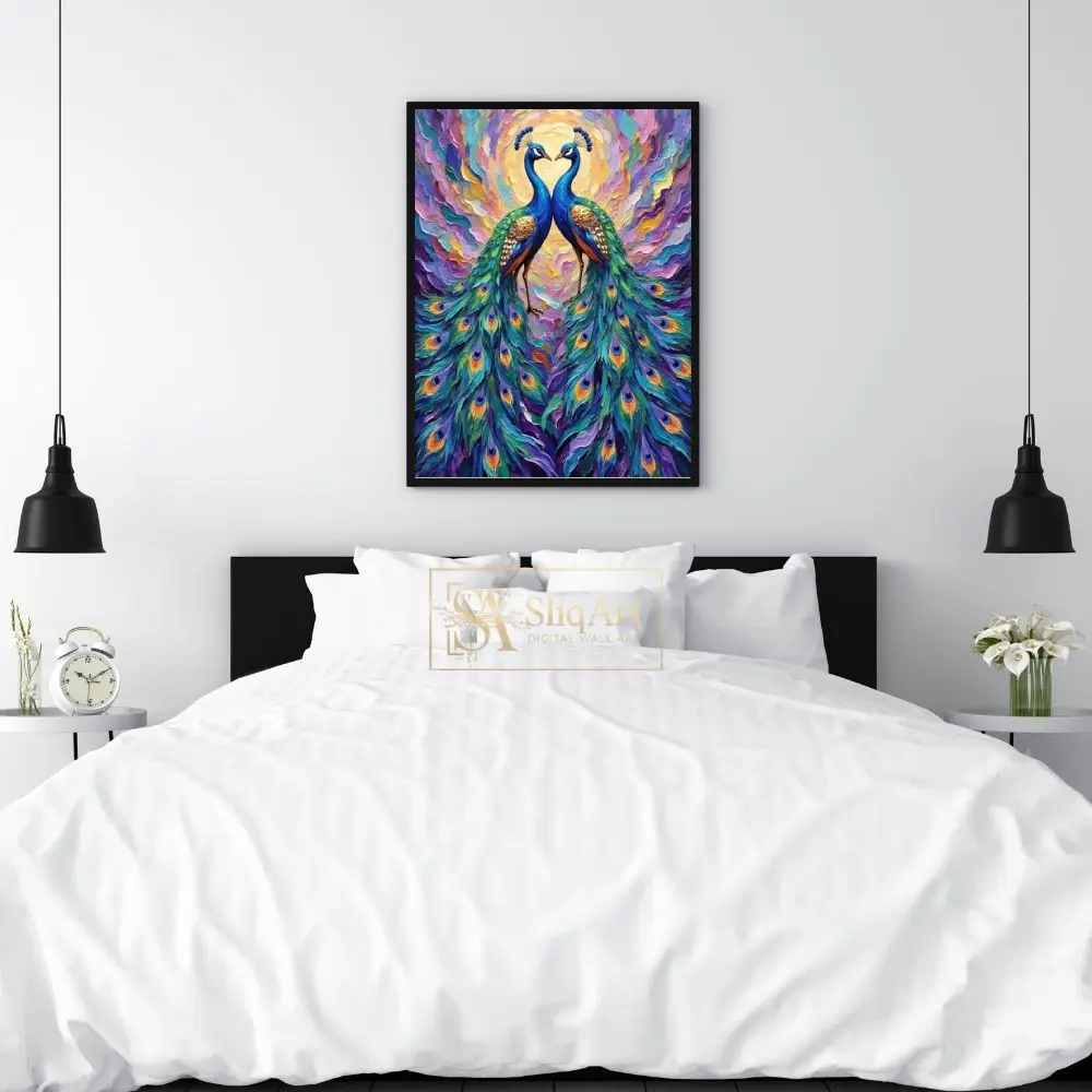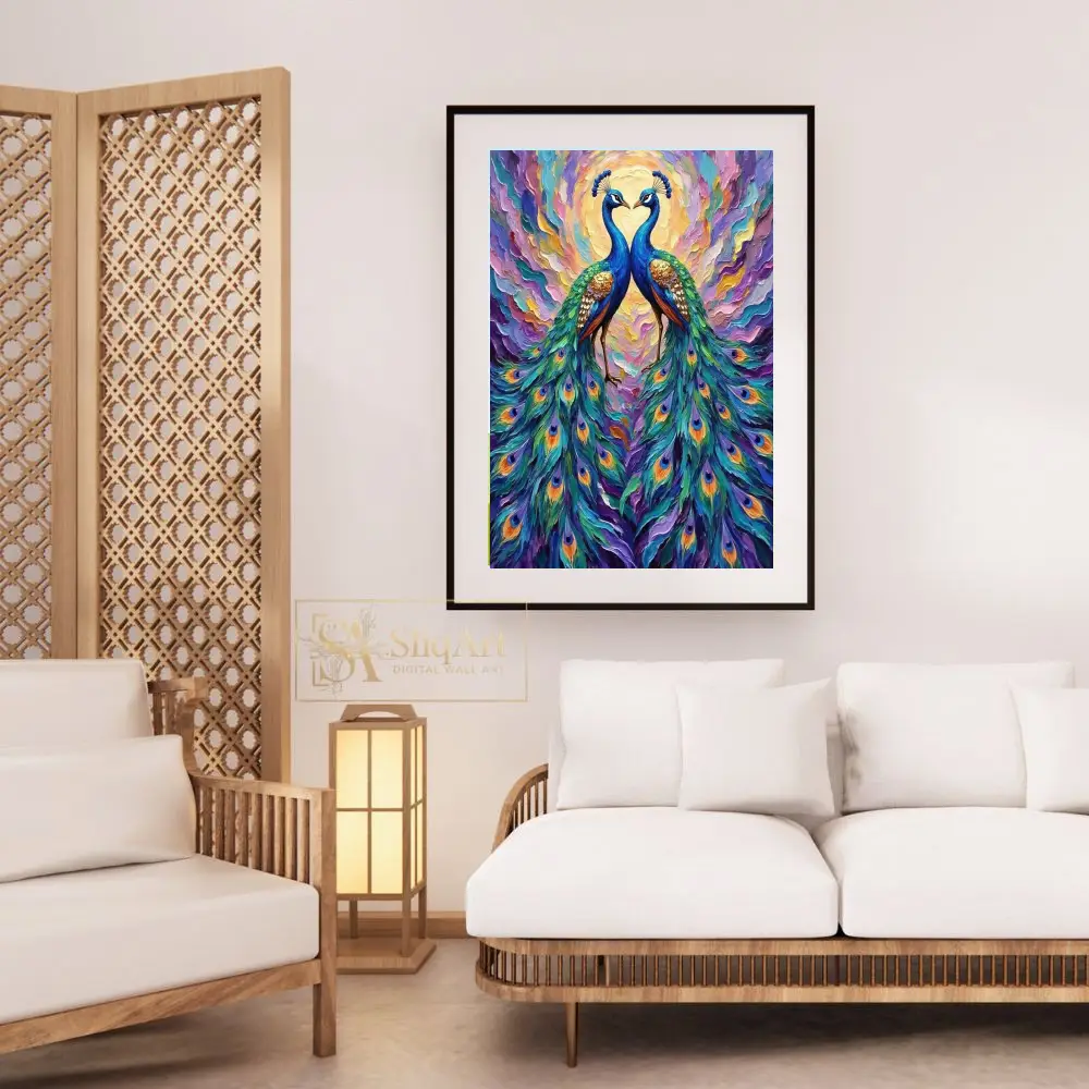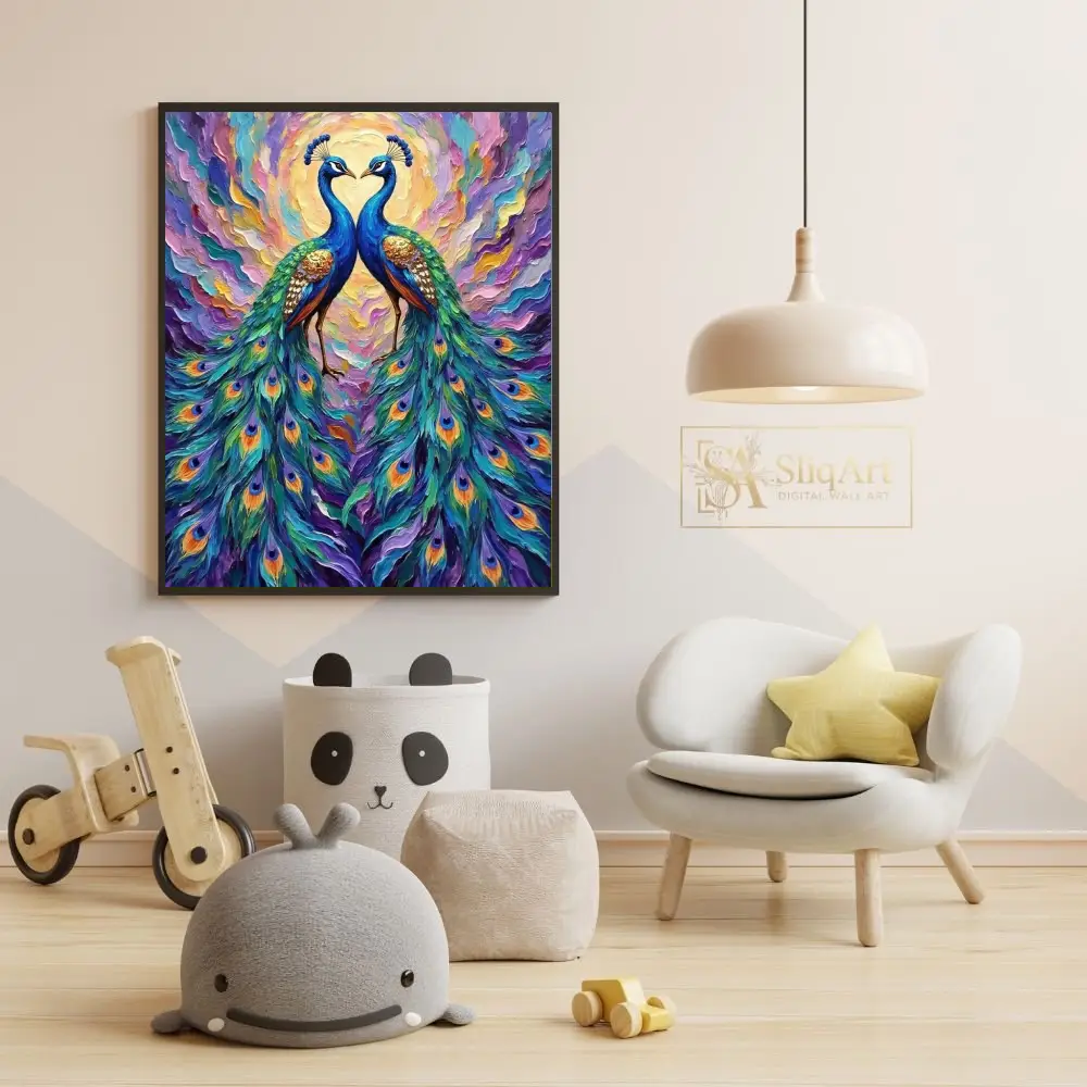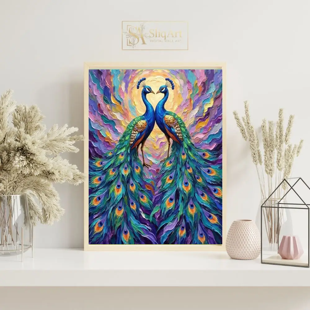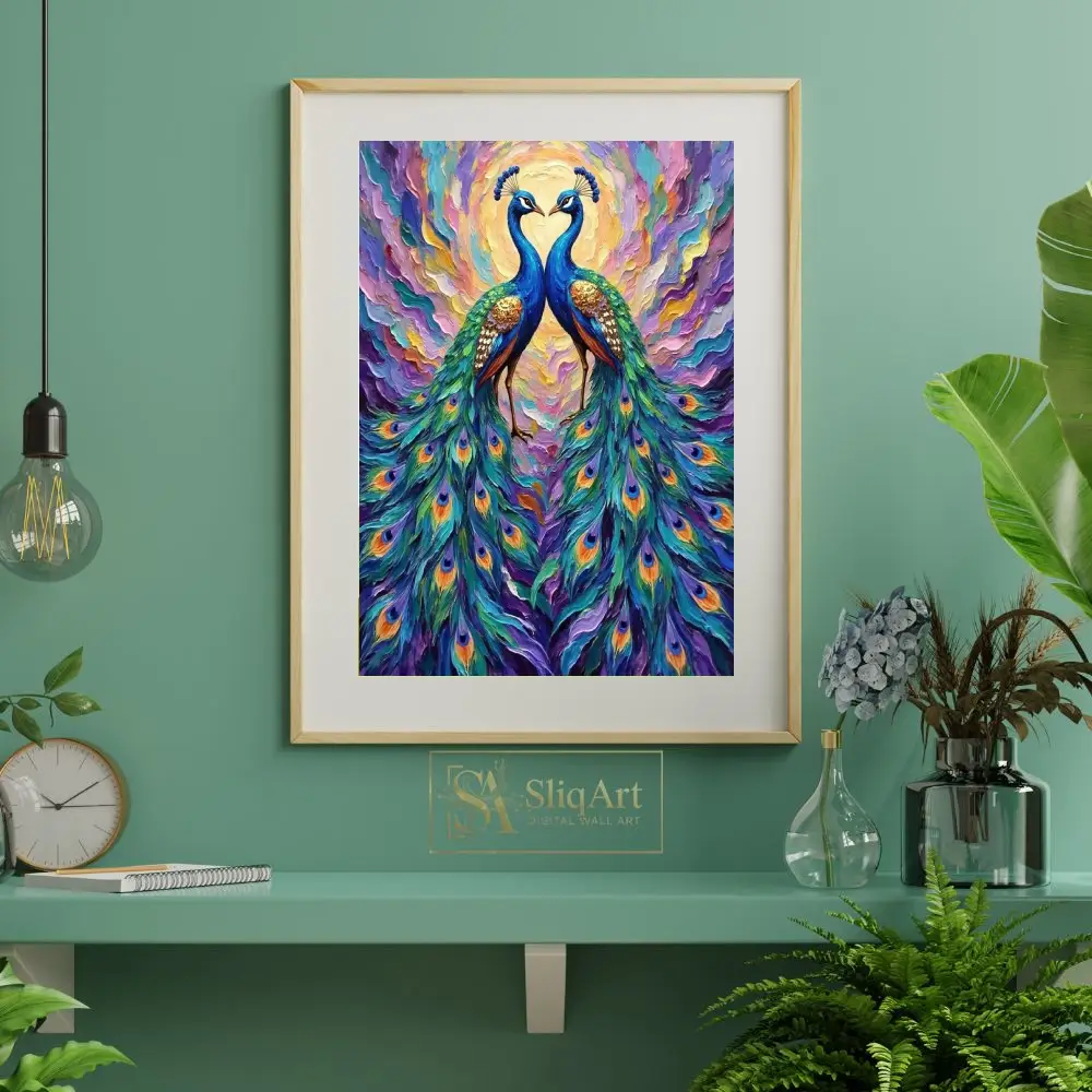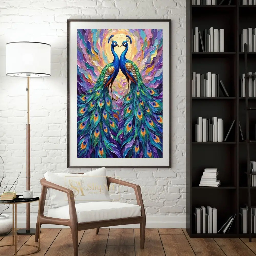 Be the first to review “Vibrant Peacock Pair Impasto Canvas Wall Art”