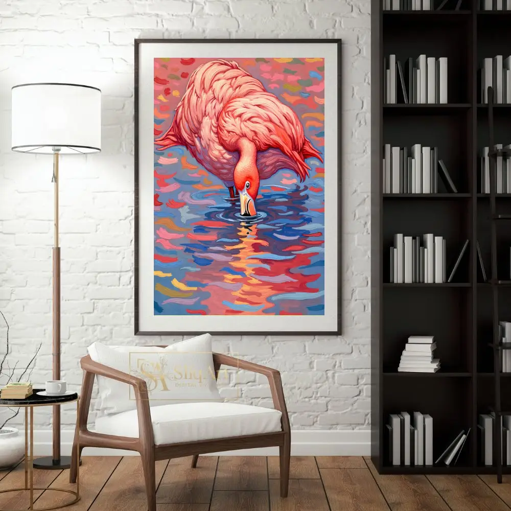 Be the first to review “Vibrant Impressionist Flamingo Canvas Print – Pink Bird Reflections Wall Art”