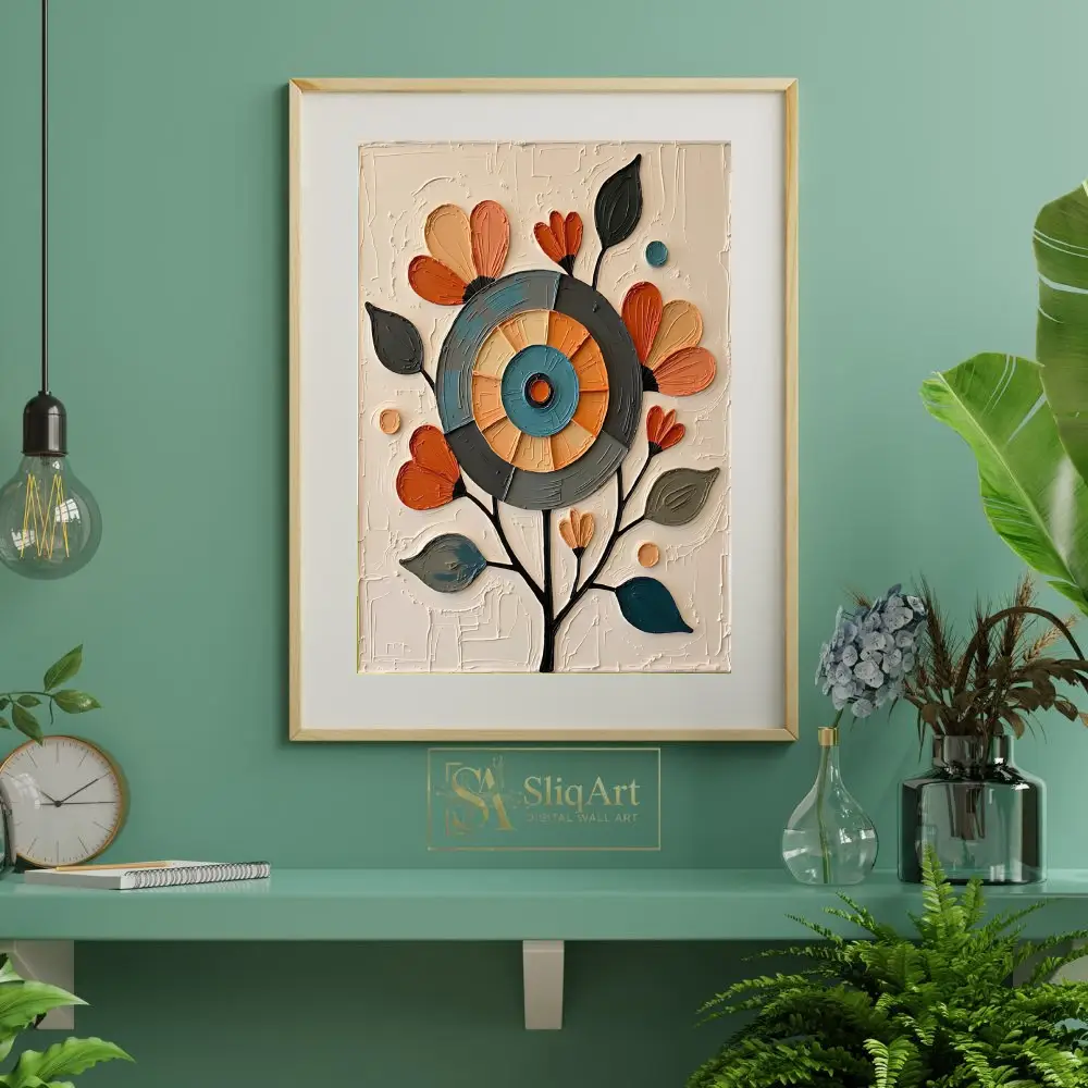 Be the first to review “Mid-Century Modern Textured Floral Wall Art – Abstract Orange & Teal Canvas”