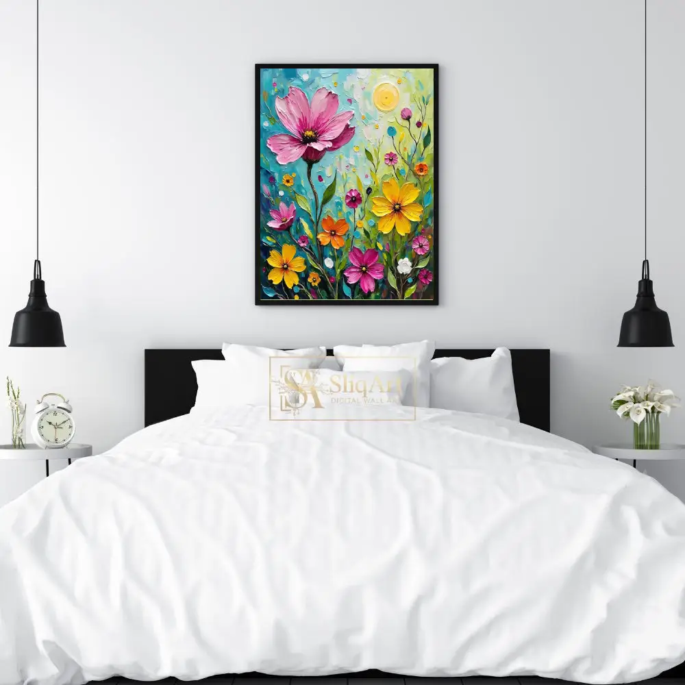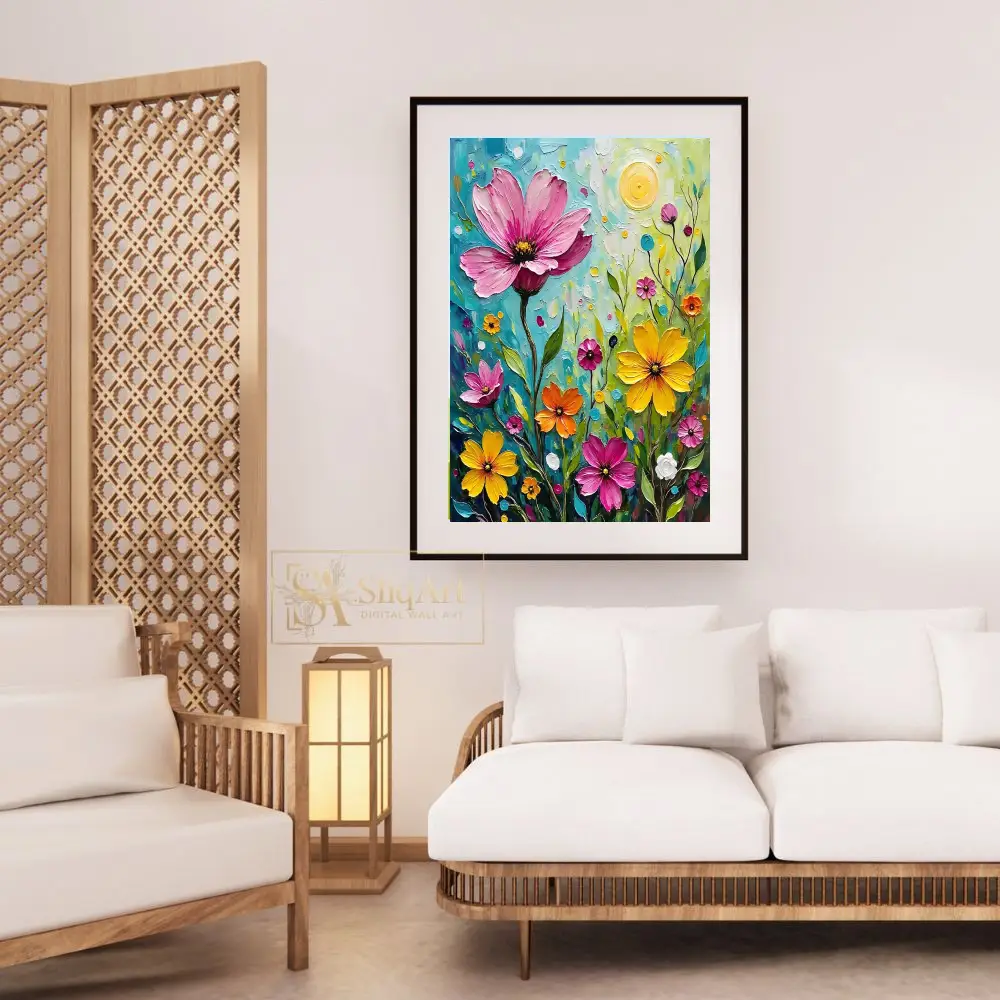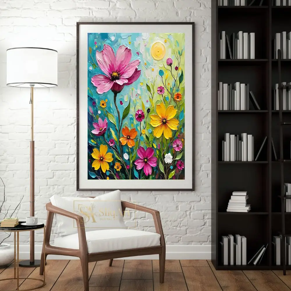 Utilizing a signature textured brushstroke technique reminiscent of Post-Impressionist masters, the piece vibrates with energy and depth. The background is a lush tapestry of swirling deep blues and forest greens, creating a dramatic backdrop that highlights the intricate details of the central subject.