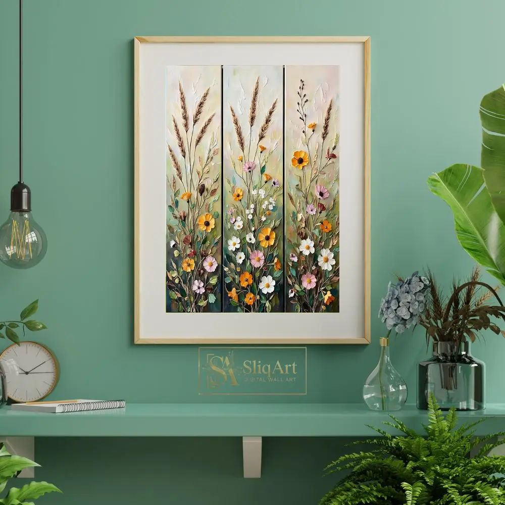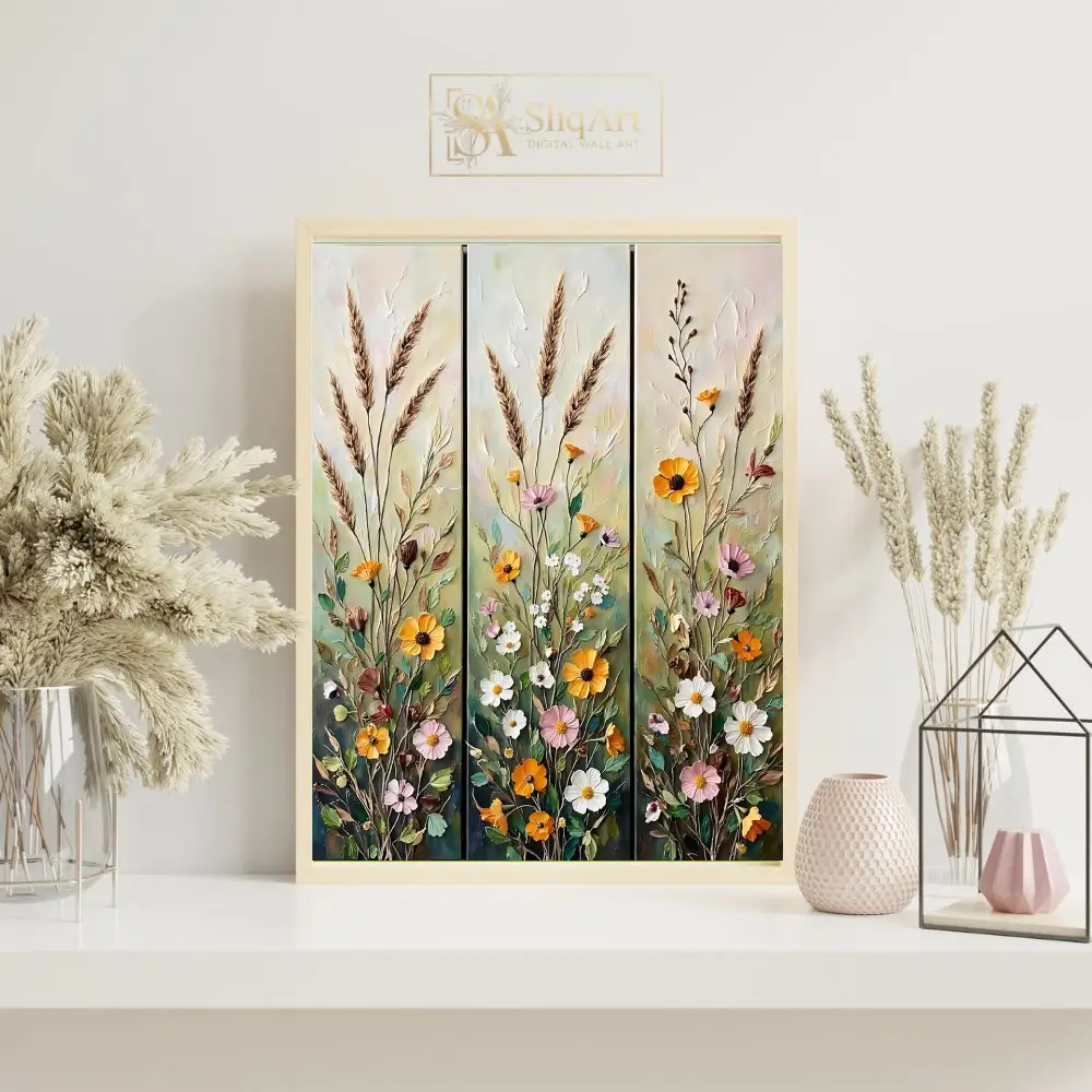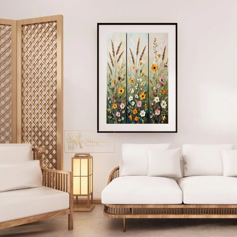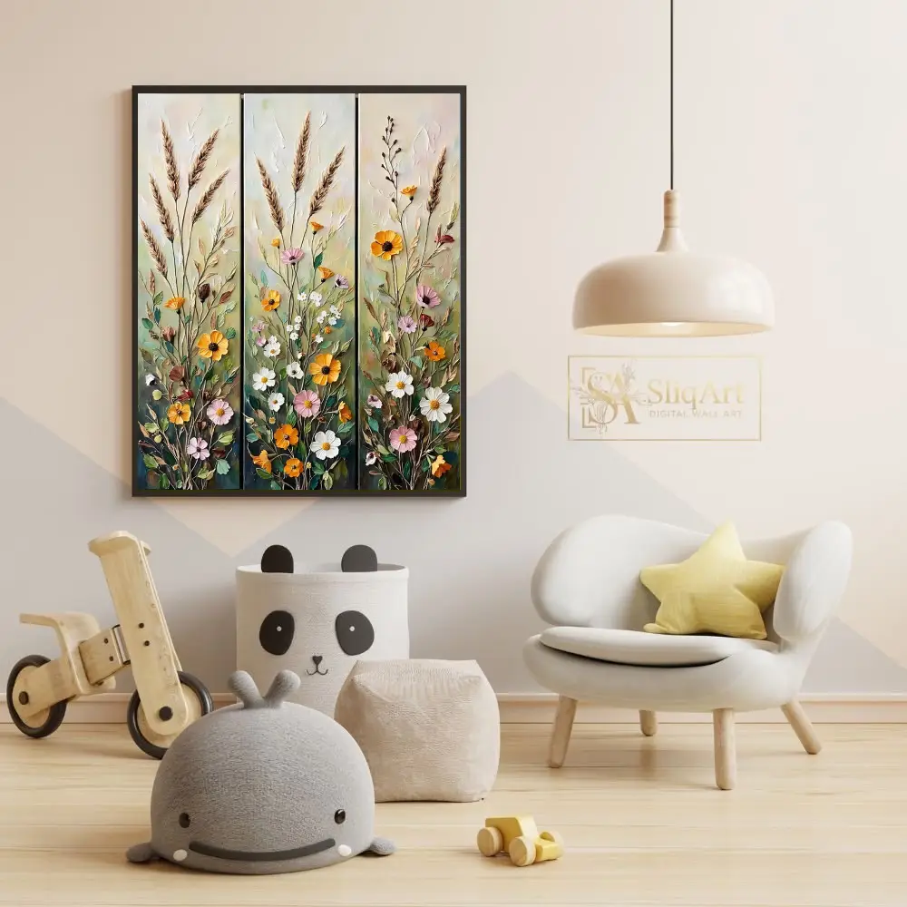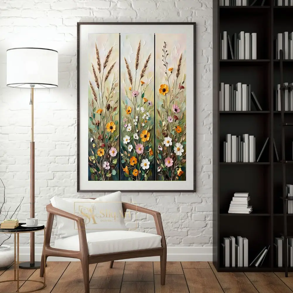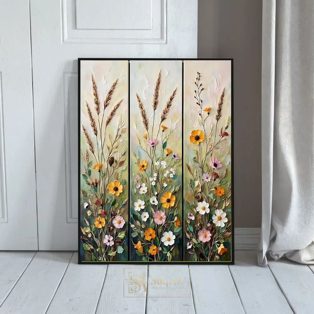 Transform your space with the ‘Rustic Wildflower Meadow’ triptych, a stunning three-panel ensemble that captures the vibrant energy of a blooming field.