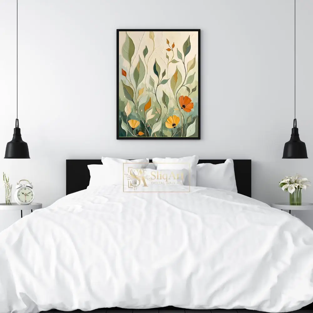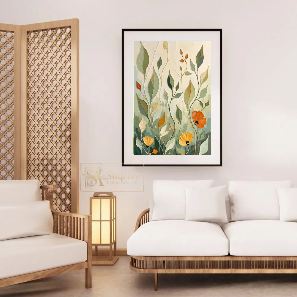 Bring the serene beauty of a meadow into your home with this stunning impasto-style botanical canvas. Featuring heavy-textured brushwork that adds depth and dimension, this piece showcases elegant, swirling stems adorned with delicate leaves in shades of sage and forest green.