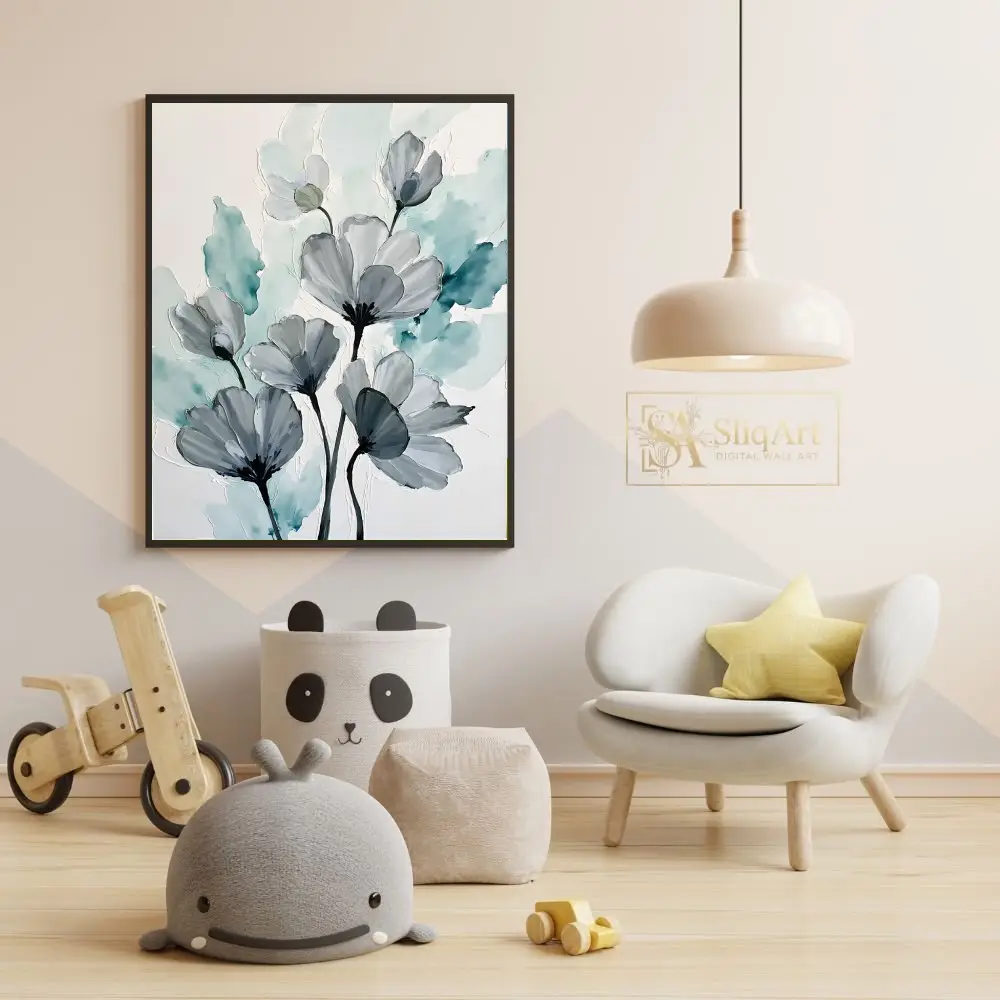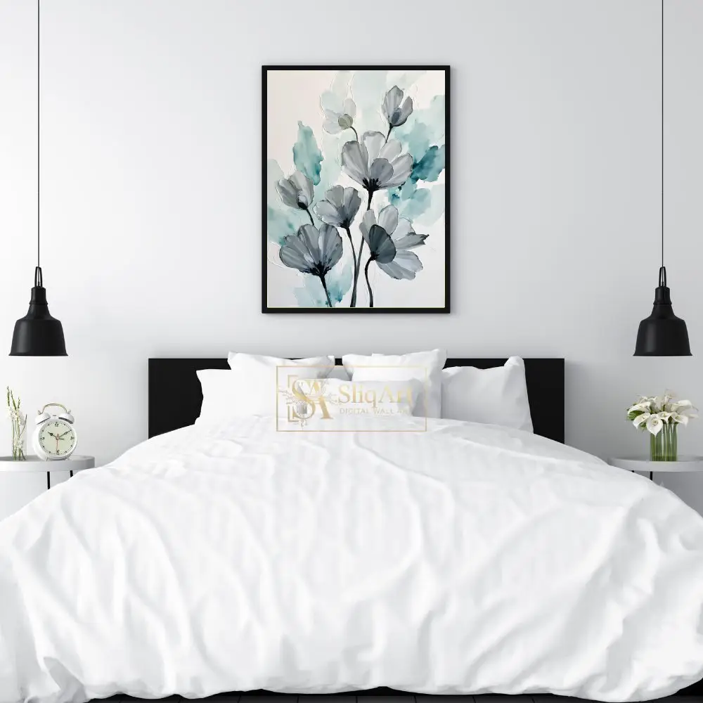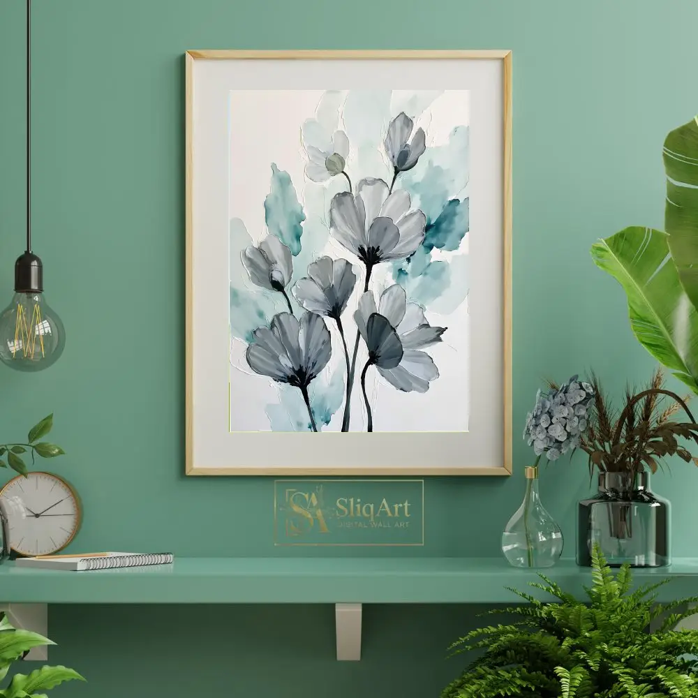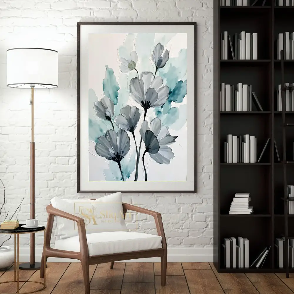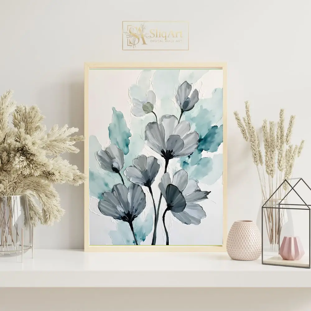 Be the first to review “Teal and Grey Abstract Floral Canvas Art – Modern Botanical Wall Decor”
