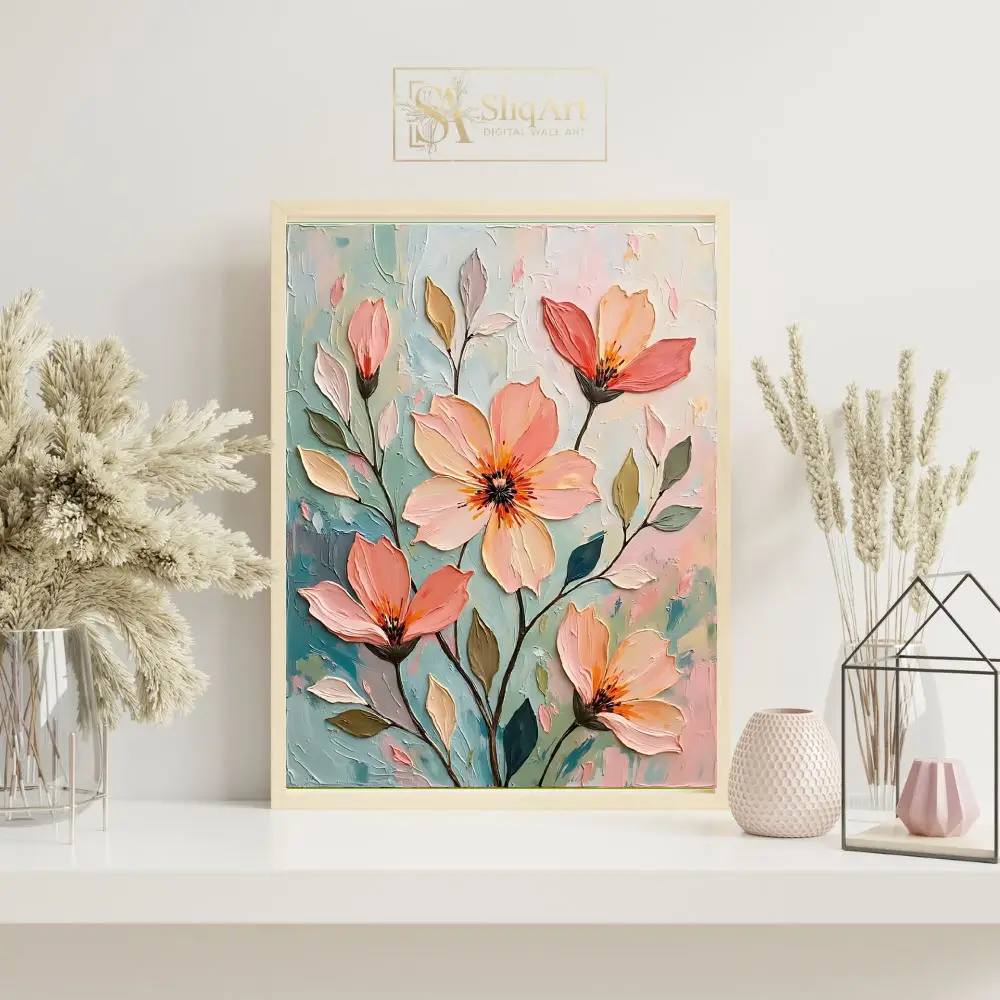 Be the first to review “Textured Peach Floral Impasto Canvas Art – Pastel Botanical Wall Decor”