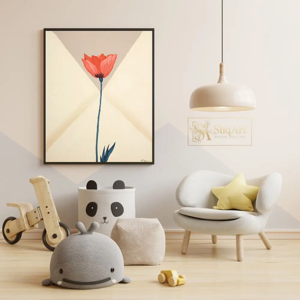 The soft textures and gentle expression of the fox evoke a sense of tranquility and natural beauty. Perfect for adding a touch of whimsical charm to your decor, this piece blends modern digital illustration with a classic woodland aesthetic, creating a cozy and inviting atmosphere in any room.